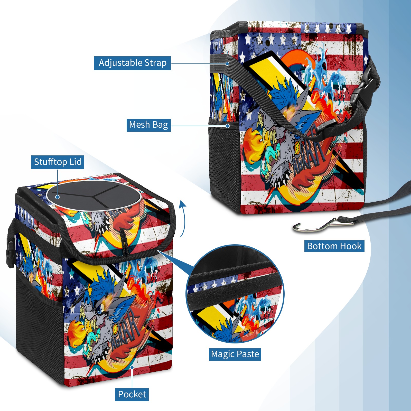 • <p>Keep your car neat with this practical car trash can—built for durability, versatility, and on-the-go convenience! Crafted from quality twill fabric with a waterproof lining, it prevents leaks, keeping seats/floors clean. Clean easily: empty directly or secure a disposable bag with side clips. Adjustable pull cord fits floor, seat, or headrest. 9.5x6.3x6.7 inches, ample space for daily trash, folds flat for storage. More than a trash can, it doubles as a storage bag for cups, toys, docs, and small gadgets—must-have car interior accessory. Installs in seconds on seats, console, or gear shift; adjustable straps keep it stable, no slipping on bumpy roads. Perfect gift for new car owners!</p>