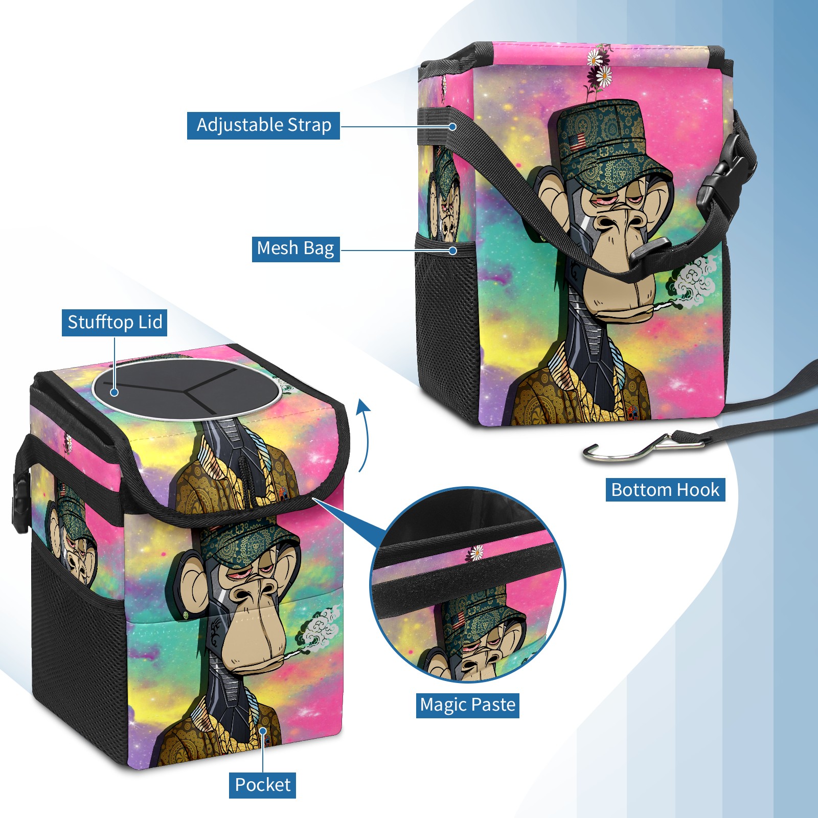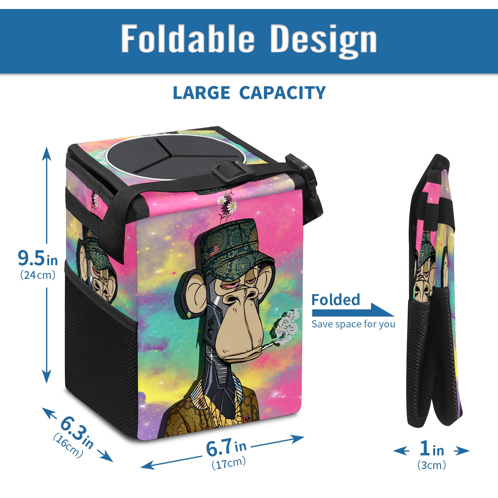Car Garbage Can — Multi-functional, Lightweight Portable, Reusable Vehicle Trash Can, Waterproof with Sufficient Storage Capacity 猴子04