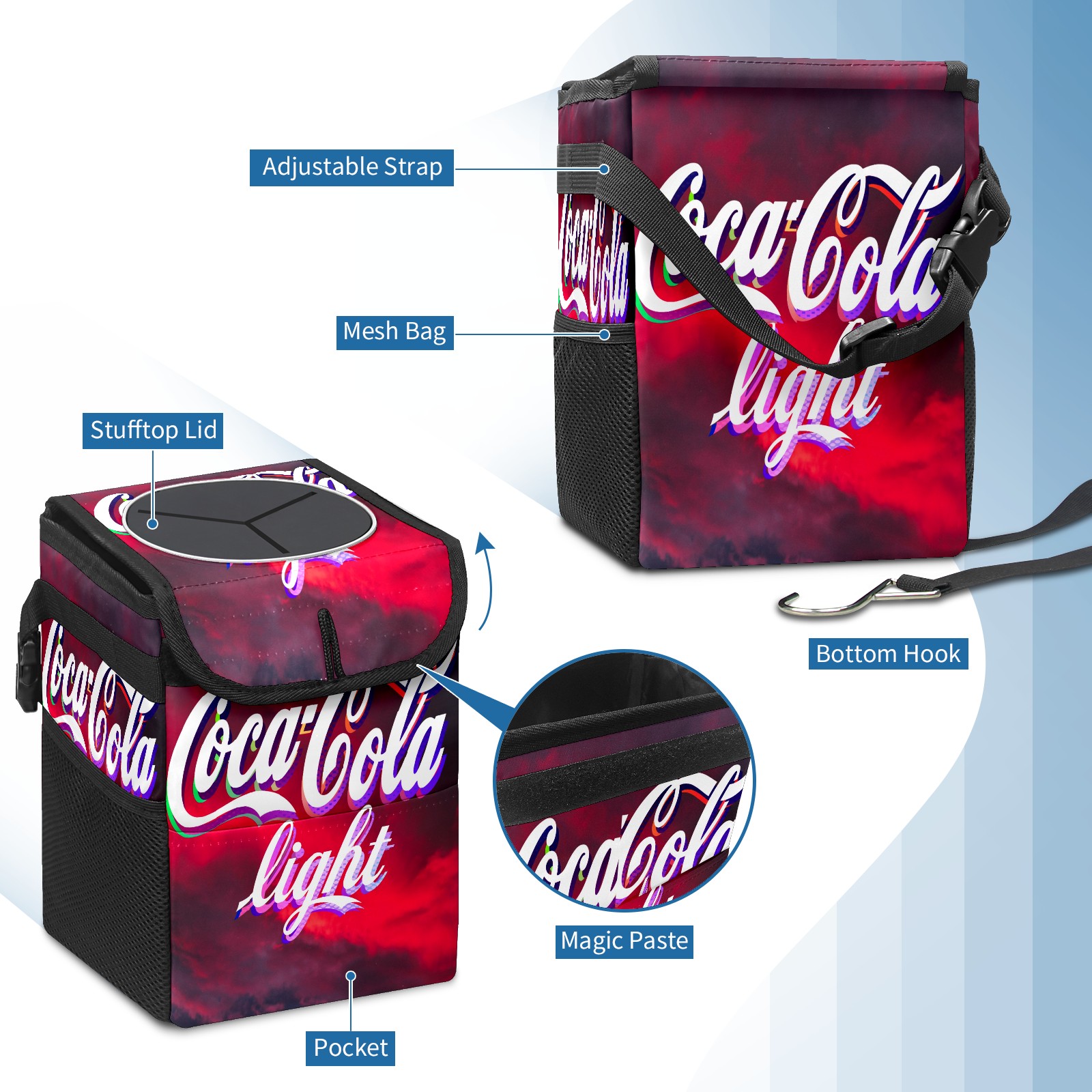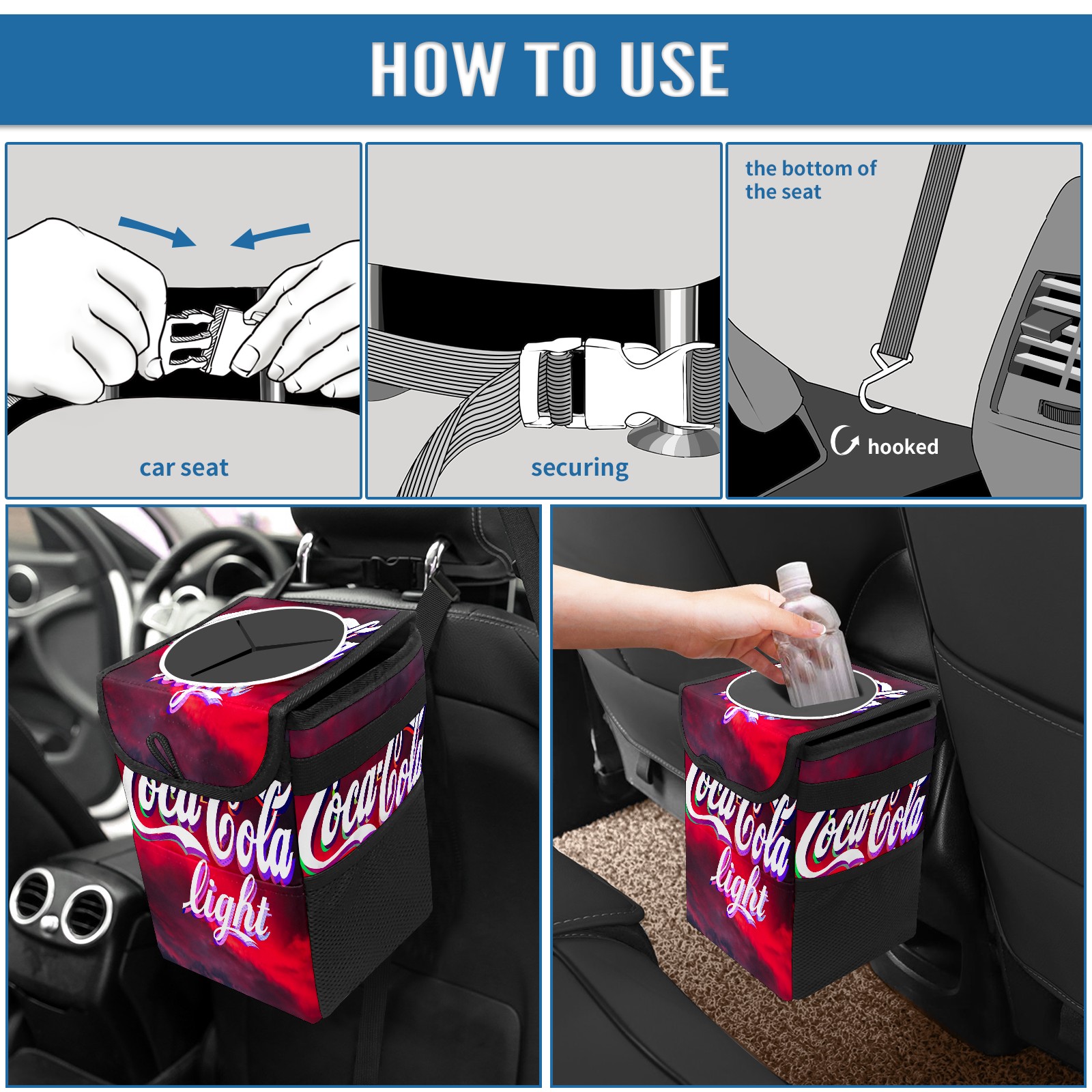 Car Garbage Can — Multi-functional, Lightweight Portable, Reusable Vehicle Trash Can, Waterproof with Sufficient Storage Capacity 可口可乐7