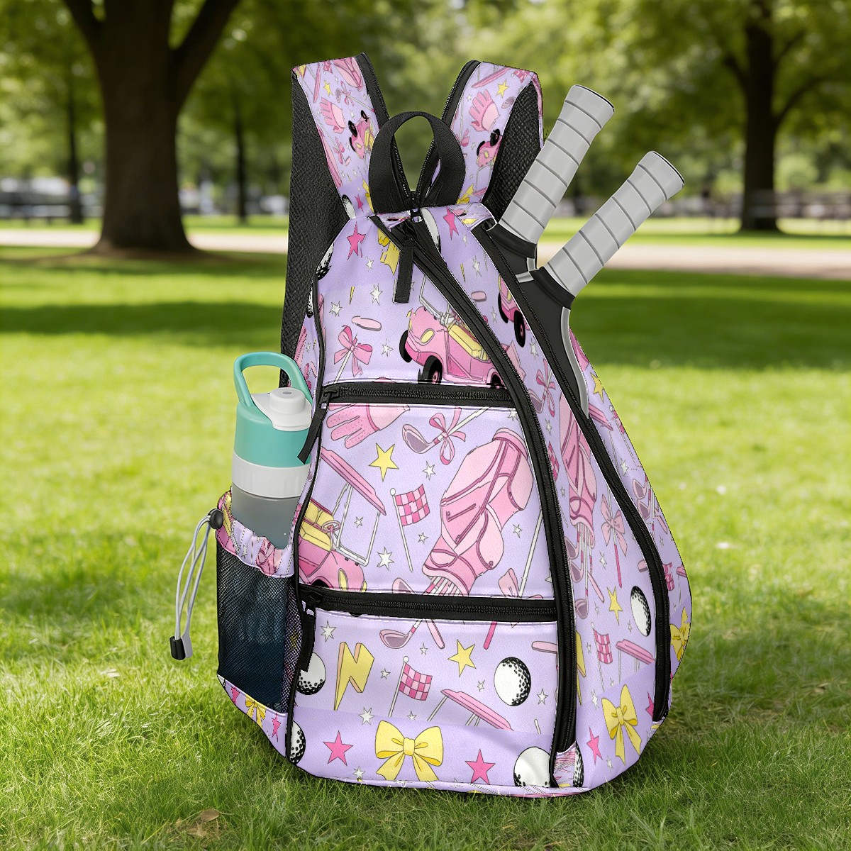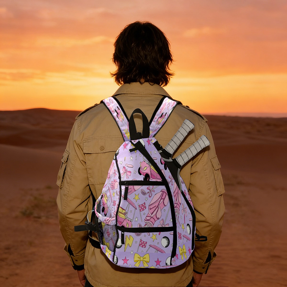 ✅ Прочный материал Изготовлена из нейлоновой ткани + плетеного ремня + сетчатой корзины: гладкая на ощупь, приятная текстура, долговечная в использовании. ✅ Большой объем + много карманов Размер 153545см/6x13.8x17.7 дюймов, продуманная конструкция с несколькими карманами позволяет удобно разложить аксессуары для пикебола, не беспокоясь о нехватке места. ✅ Максимальный комфорт ношения Подушенное спинное отделение + регулируемые сетчатые плечевые ремни эффективно предотвращают растяжение мышц и боль в плечах, даже при длительном ношении. ✅ Универсальное использование Ремни выполнены по технологии съемного молния — регулируемый способ ношения. Подходит как повседневная поясная сумка для поездок, прогулок и других мероприятий, также является идеальным подарком для друзей и близких!