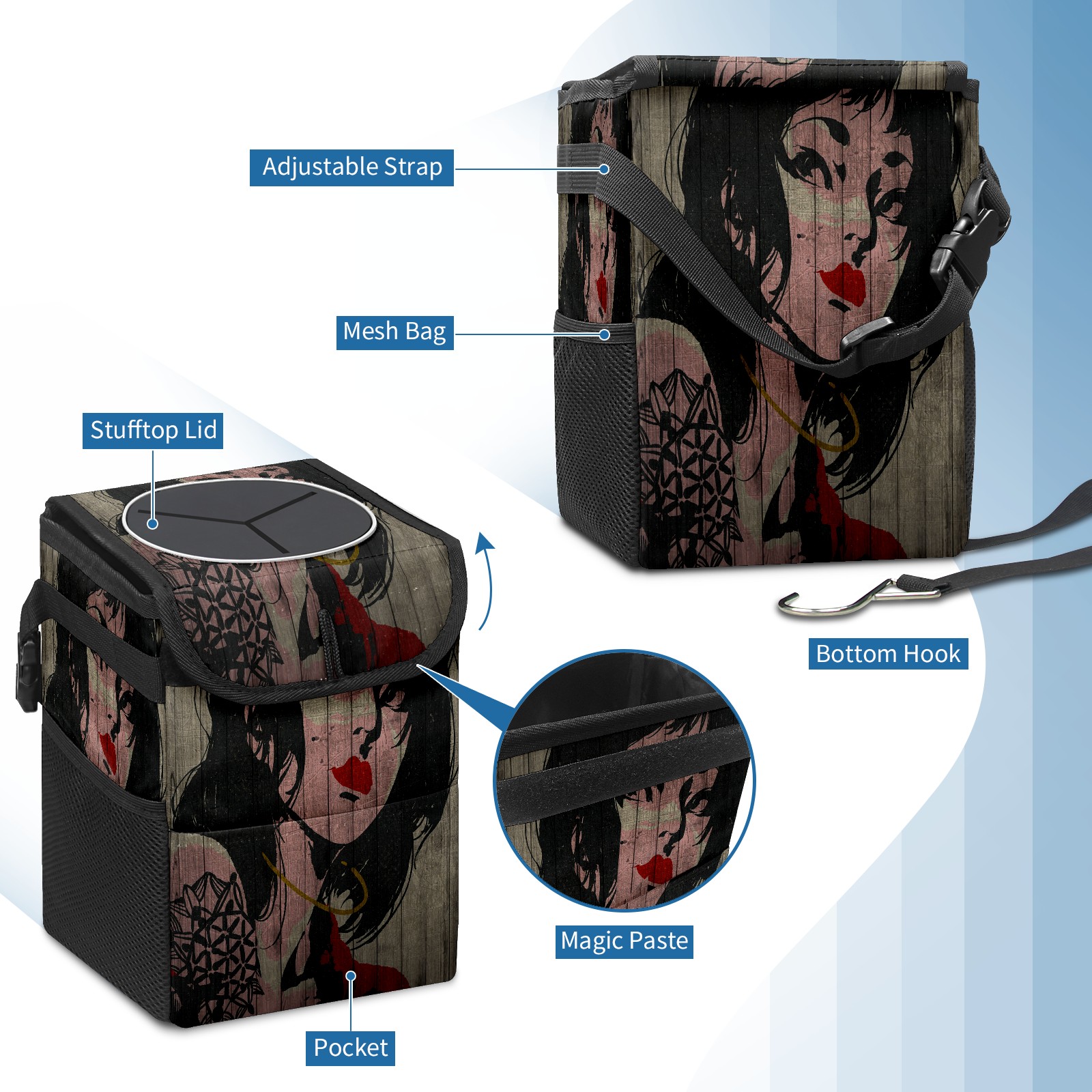 Car Garbage Can — Multi-functional, Lightweight Portable, Reusable Vehicle Trash Can, Waterproof with Sufficient Storage Capacity 涂鸦画稿3