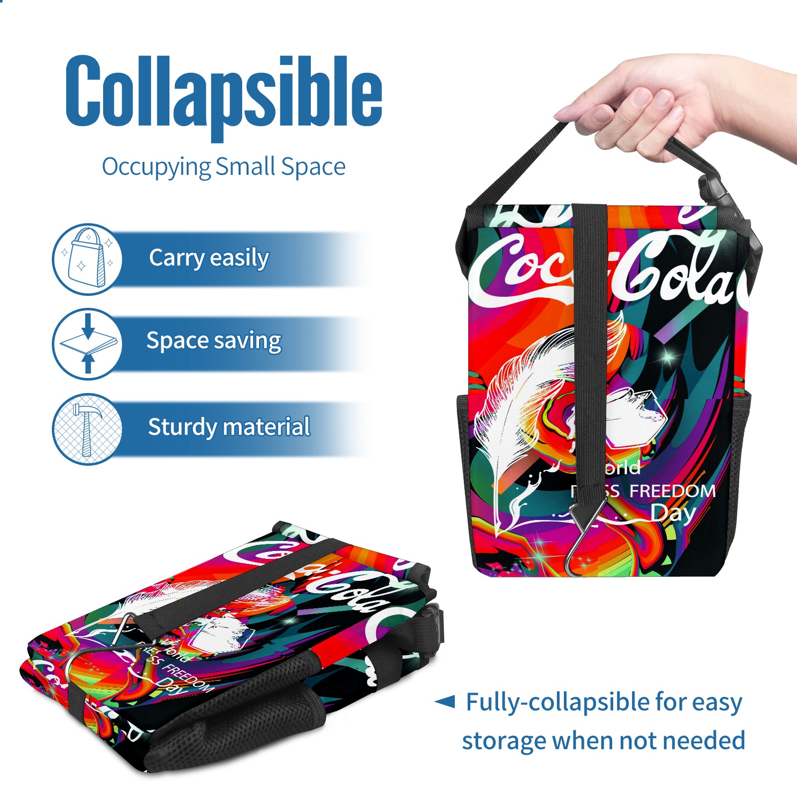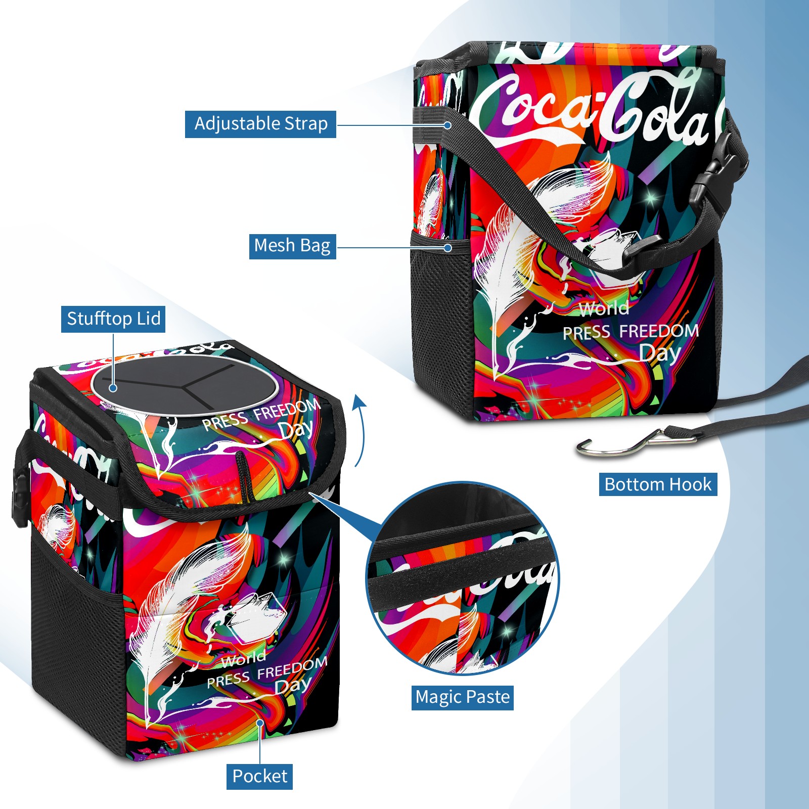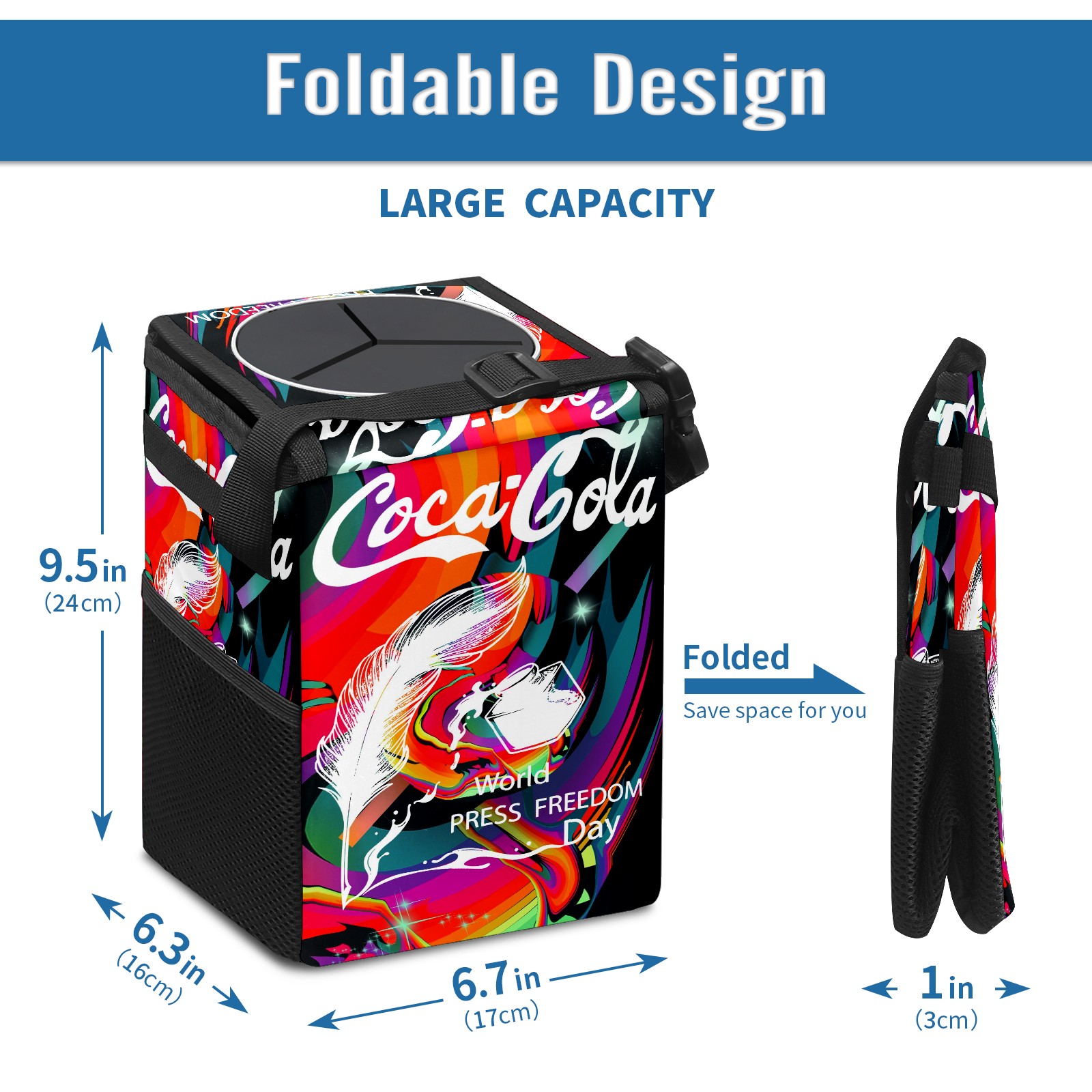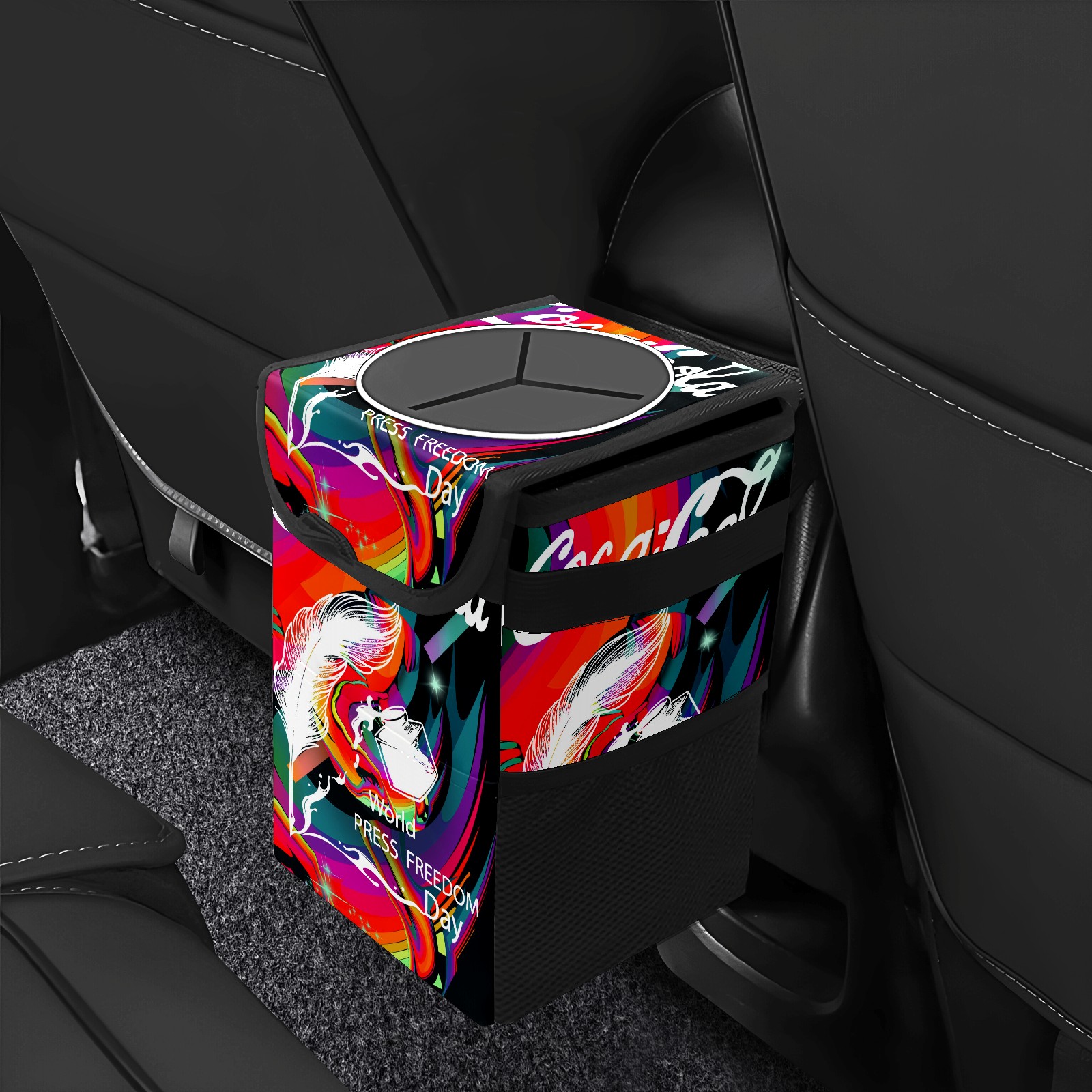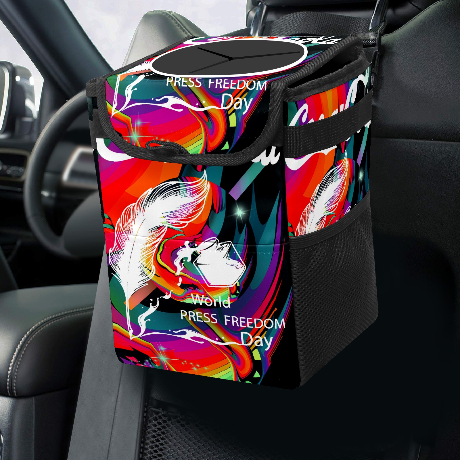 Car Garbage Can — Multi-functional, Lightweight Portable, Reusable Vehicle Trash Can, Waterproof with Sufficient Storage Capacity 涂鸦款花体字艺术
