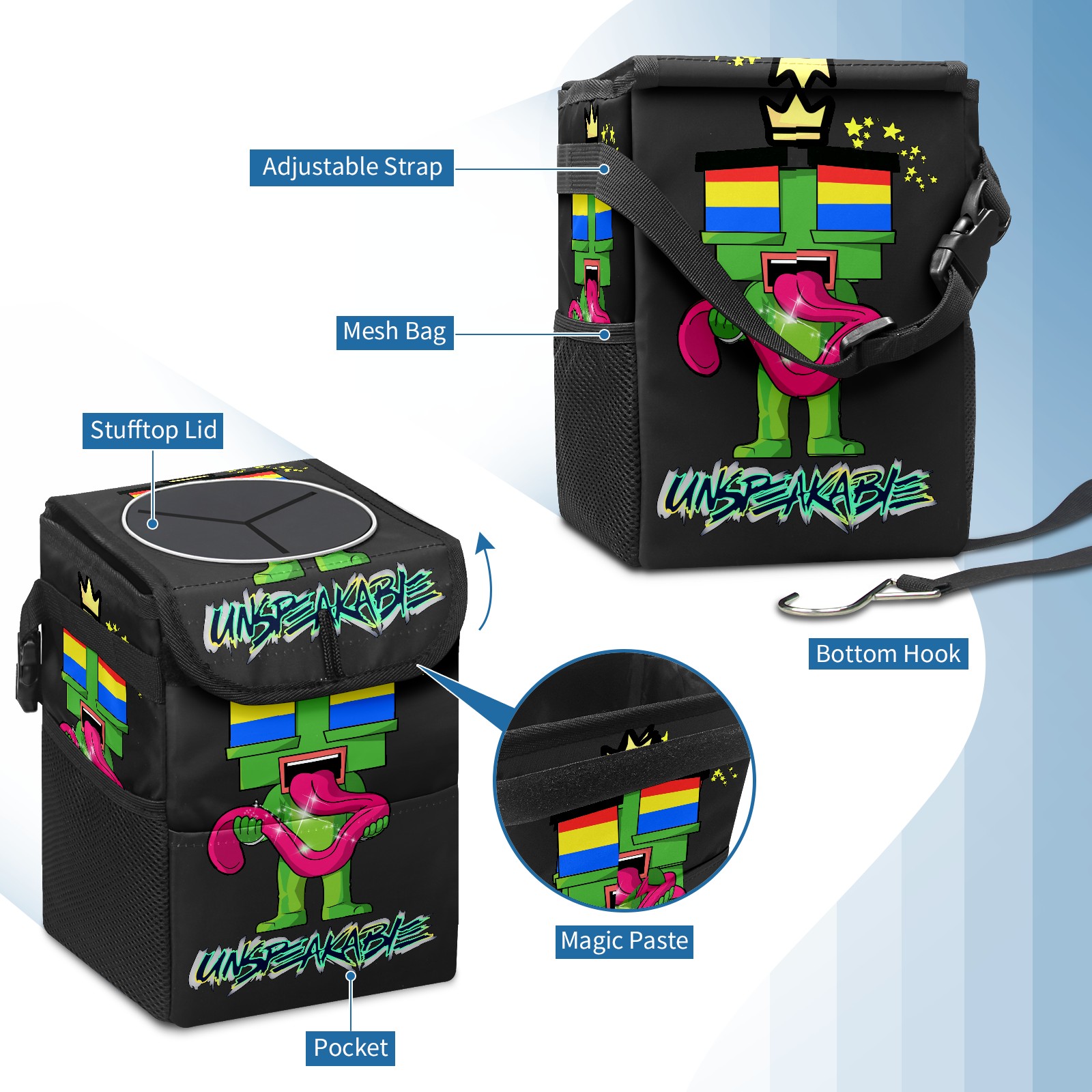 • <p>Keep your car neat with this practical car trash can—built for durability, versatility, and on-the-go convenience! Crafted from quality twill fabric with a waterproof lining, it prevents leaks, keeping seats/floors clean. Clean easily: empty directly or secure a disposable bag with side clips. Adjustable pull cord fits floor, seat, or headrest. 9.5x6.3x6.7 inches, ample space for daily trash, folds flat for storage. More than a trash can, it doubles as a storage bag for cups, toys, docs, and small gadgets—must-have car interior accessory. Installs in seconds on seats, console, or gear shift; adjustable straps keep it stable, no slipping on bumpy roads. Perfect gift for new car owners!</p>