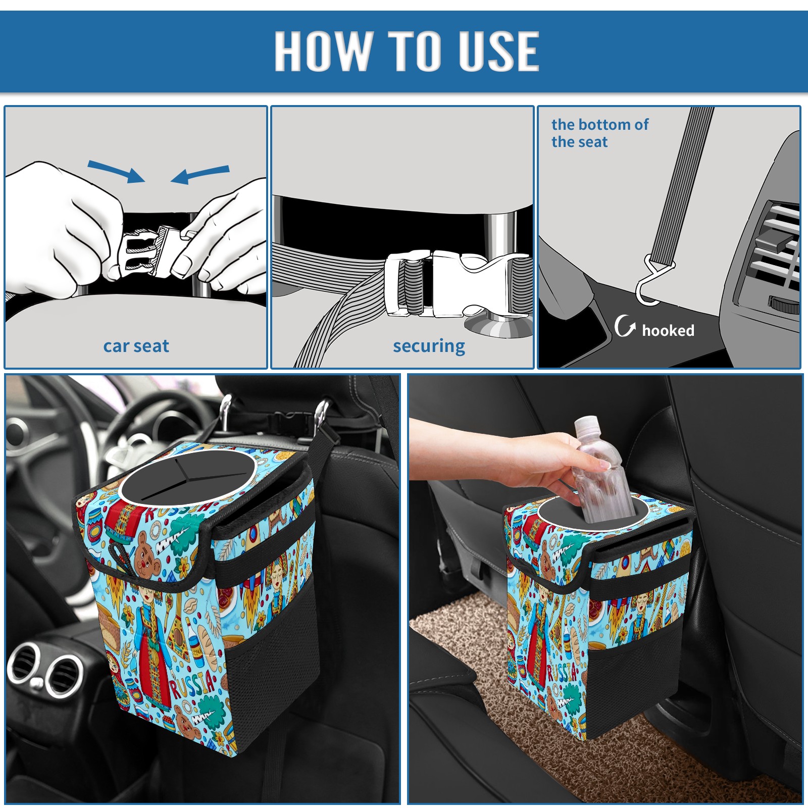 <p><strong> Keep Your Car Spotless!</strong></p><p>Our small, collapsible car trash can is the ultimate solution for a clutter-free ride. With a secure lid, multiple pockets, and stable hanging design, it's a must-have accessory.</p><p><strong>Key Features</strong></p><ul><li><strong>Odor Control:</strong> Rubber-sealed lid traps smells; works with standard trash bags.</li><li><strong>Extra Storage:</strong> Mesh pockets and front pouch keep essentials handy.</li><li><strong>Secure Fit:</strong> Strap and hooks ensure it stays in place on any surface.</li><li><strong>Space-Saving:</strong> Fold flat when not in use to maximize storage.</li><li><strong>Stylish &amp; Durable:</strong> Full-print twill fabric is built to last.</li></ul><p><strong>Specs</strong></p><p>Size: 24*17*16cm | Material: Twill Weave + Webbing | Care: Hand wash, avoid sun exposure.</p>