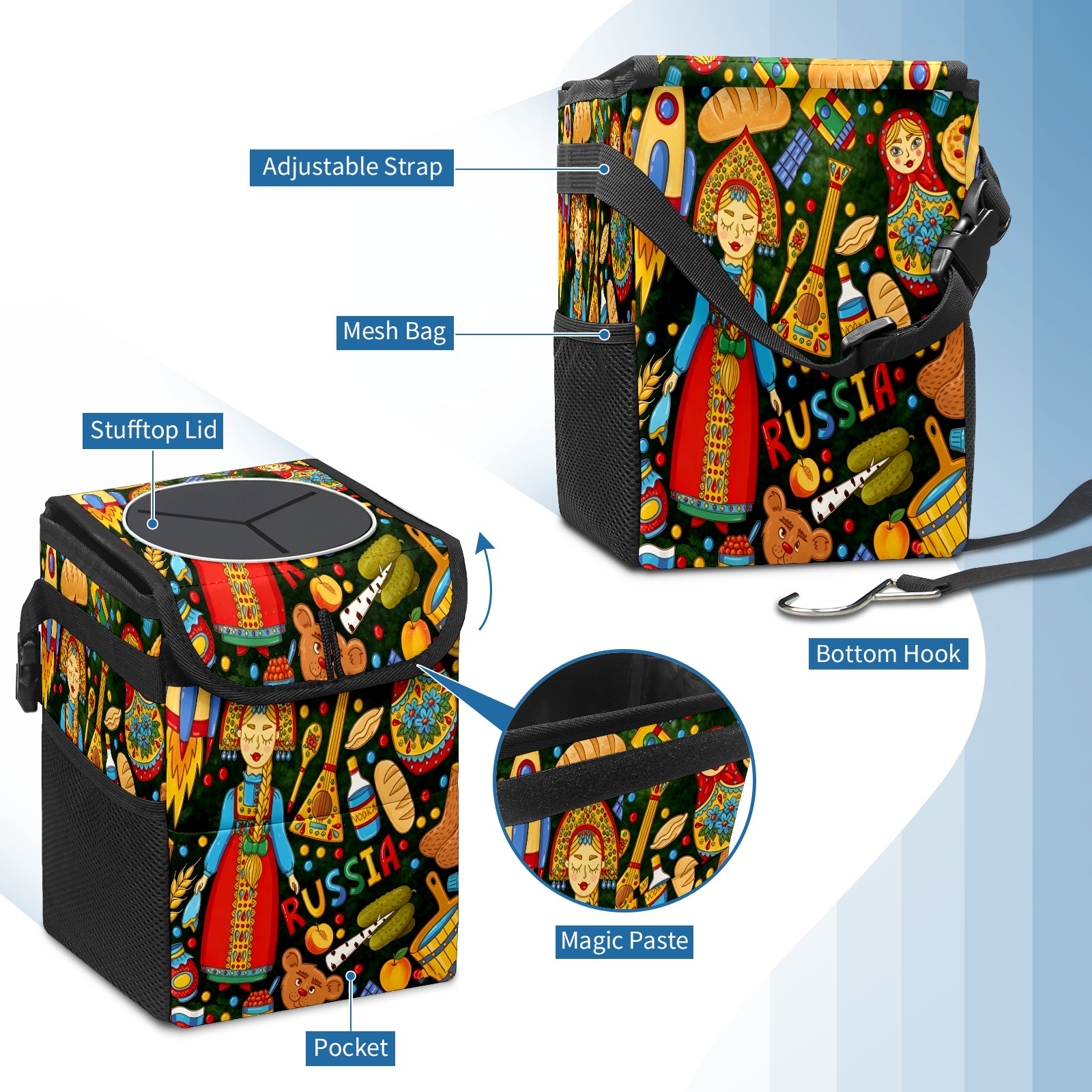 <p><strong> Keep Your Car Spotless!</strong></p><p>Our small, collapsible car trash can is the ultimate solution for a clutter-free ride. With a secure lid, multiple pockets, and stable hanging design, it's a must-have accessory.</p><p><strong>Key Features</strong></p><ul><li><strong>Odor Control:</strong> Rubber-sealed lid traps smells; works with standard trash bags.</li><li><strong>Extra Storage:</strong> Mesh pockets and front pouch keep essentials handy.</li><li><strong>Secure Fit:</strong> Strap and hooks ensure it stays in place on any surface.</li><li><strong>Space-Saving:</strong> Fold flat when not in use to maximize storage.</li><li><strong>Stylish &amp; Durable:</strong> Full-print twill fabric is built to last.</li></ul><p><strong>Specs</strong></p><p>Size: 24*17*16cm | Material: Twill Weave + Webbing | Care: Hand wash, avoid sun exposure.</p>