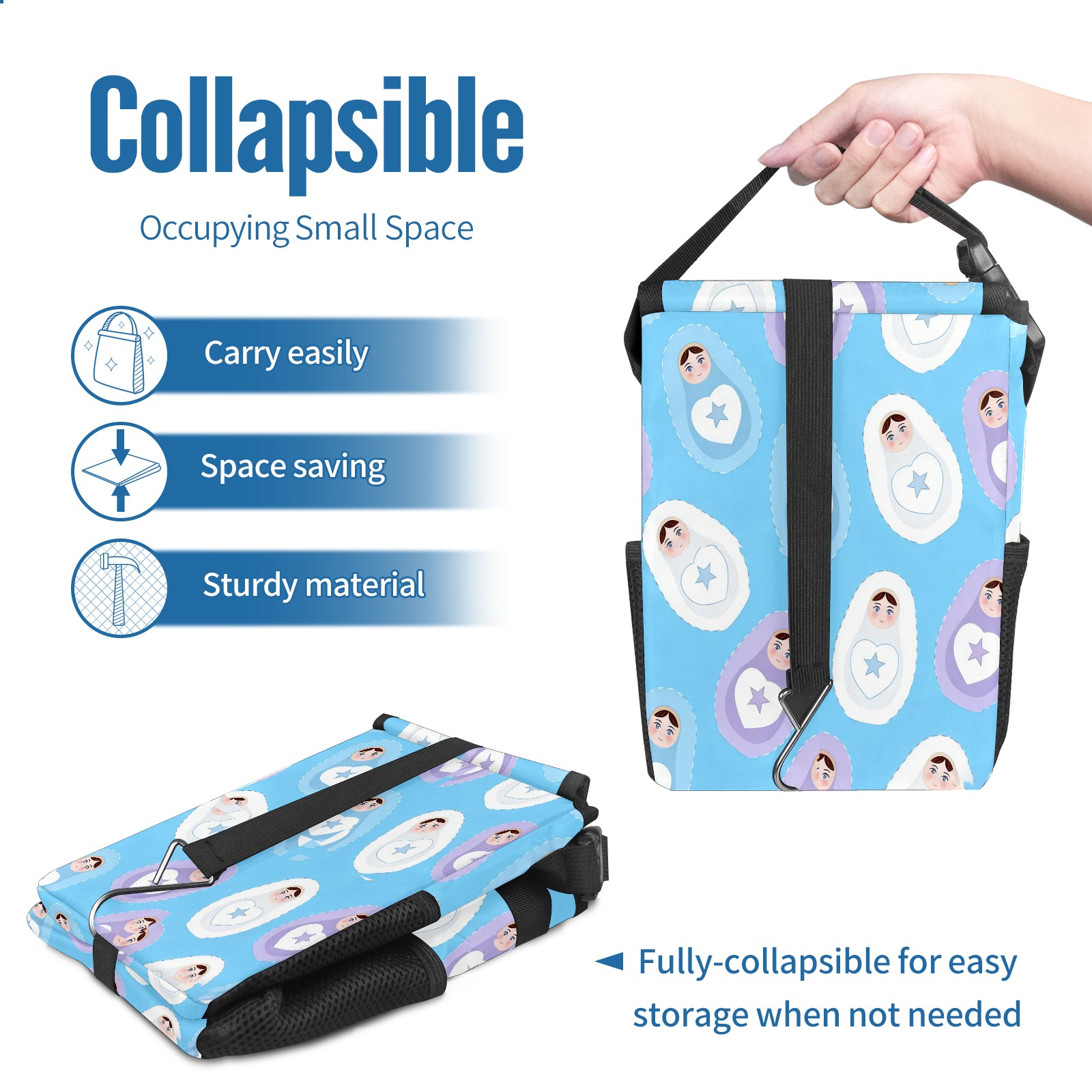 <p><strong> Keep Your Car Spotless!</strong></p><p>Our small, collapsible car trash can is the ultimate solution for a clutter-free ride. With a secure lid, multiple pockets, and stable hanging design, it's a must-have accessory.</p><p><strong>Key Features</strong></p><ul><li><strong>Odor Control:</strong> Rubber-sealed lid traps smells; works with standard trash bags.</li><li><strong>Extra Storage:</strong> Mesh pockets and front pouch keep essentials handy.</li><li><strong>Secure Fit:</strong> Strap and hooks ensure it stays in place on any surface.</li><li><strong>Space-Saving:</strong> Fold flat when not in use to maximize storage.</li><li><strong>Stylish &amp; Durable:</strong> Full-print twill fabric is built to last.</li></ul><p><strong>Specs</strong></p><p>Size: 24*17*16cm | Material: Twill Weave + Webbing | Care: Hand wash, avoid sun exposure.</p>