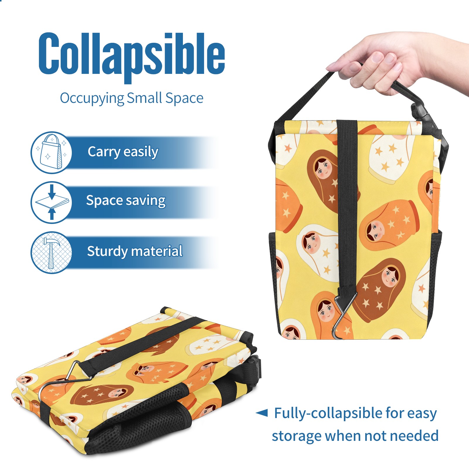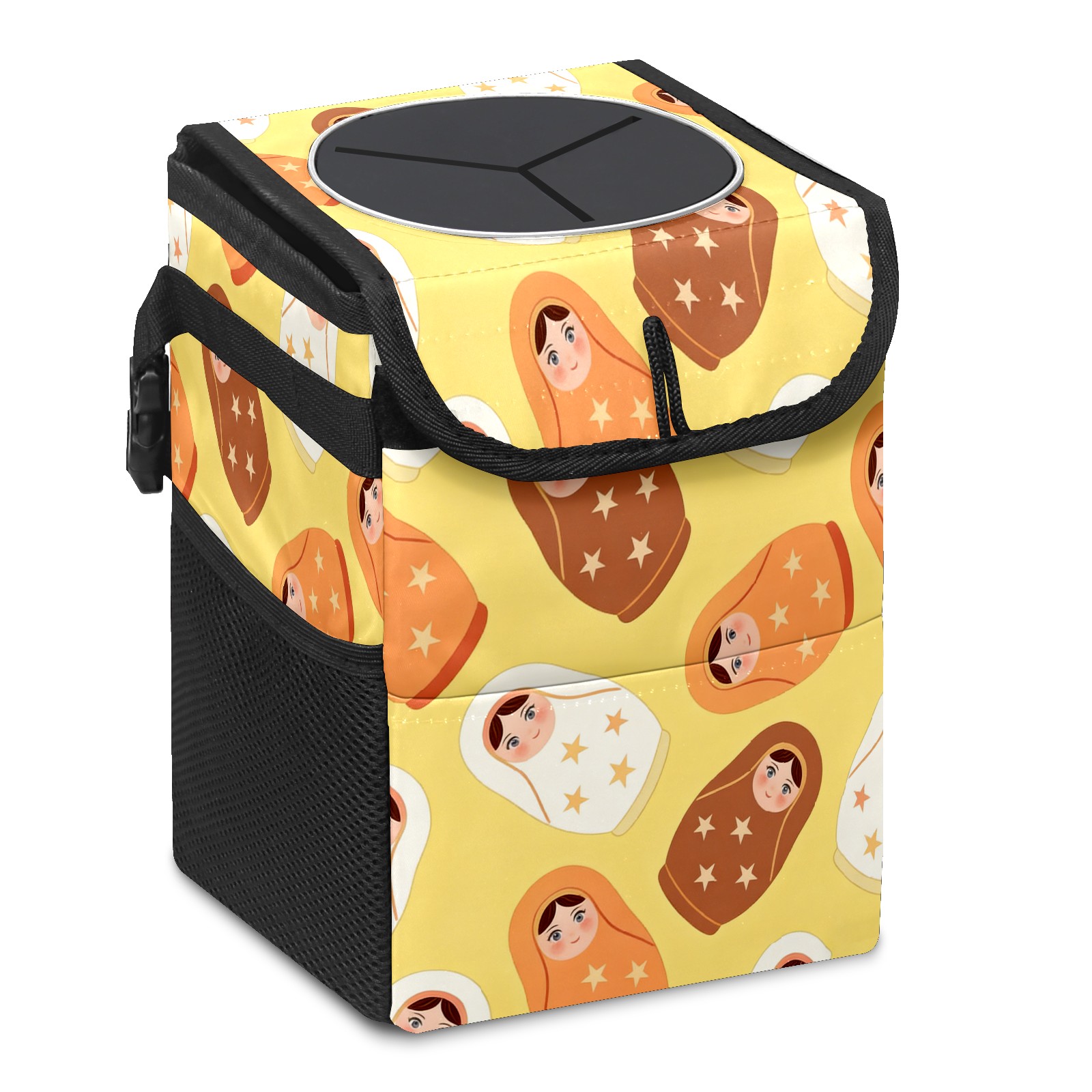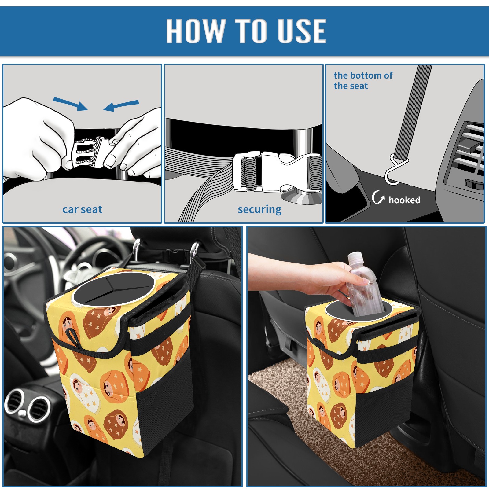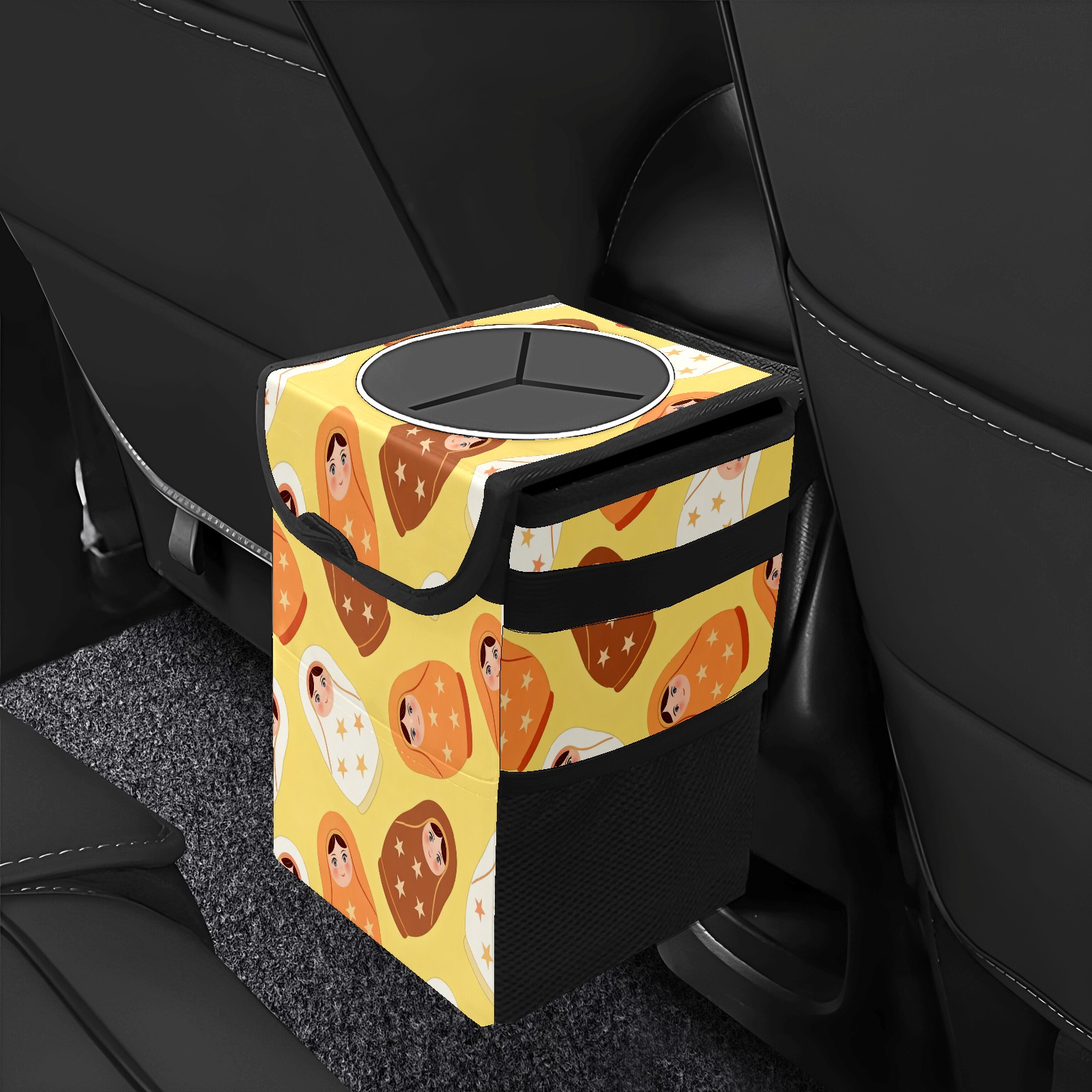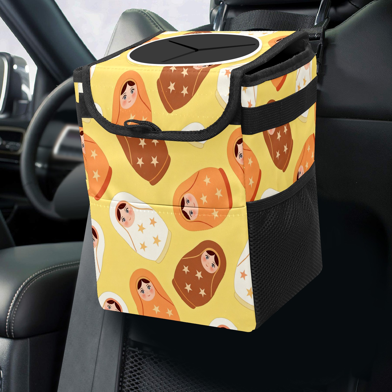 <p><strong> Keep Your Car Spotless!</strong></p><p>Our small, collapsible car trash can is the ultimate solution for a clutter-free ride. With a secure lid, multiple pockets, and stable hanging design, it's a must-have accessory.</p><p><strong>Key Features</strong></p><ul><li><strong>Odor Control:</strong> Rubber-sealed lid traps smells; works with standard trash bags.</li><li><strong>Extra Storage:</strong> Mesh pockets and front pouch keep essentials handy.</li><li><strong>Secure Fit:</strong> Strap and hooks ensure it stays in place on any surface.</li><li><strong>Space-Saving:</strong> Fold flat when not in use to maximize storage.</li><li><strong>Stylish &amp; Durable:</strong> Full-print twill fabric is built to last.</li></ul><p><strong>Specs</strong></p><p>Size: 24*17*16cm | Material: Twill Weave + Webbing | Care: Hand wash, avoid sun exposure.</p>