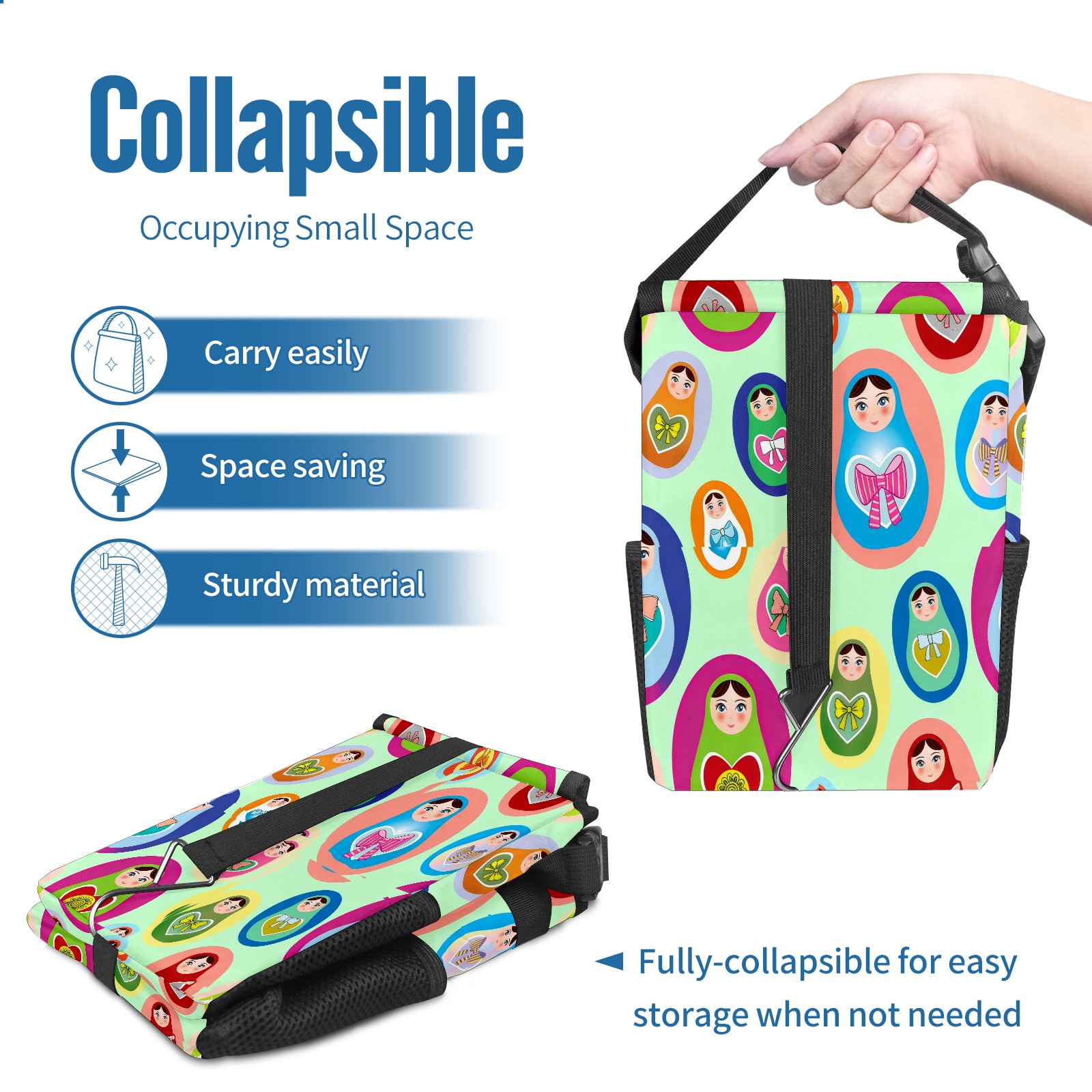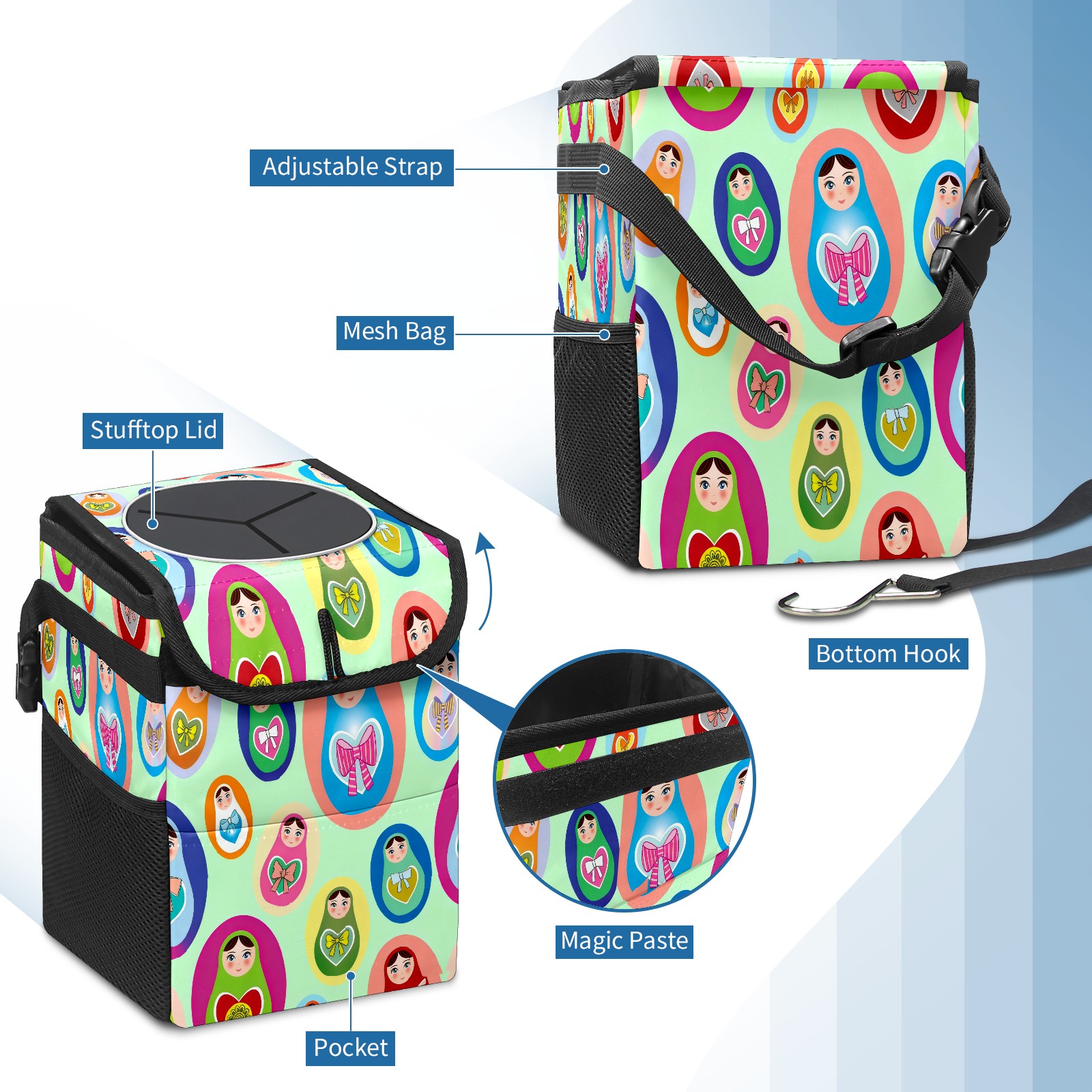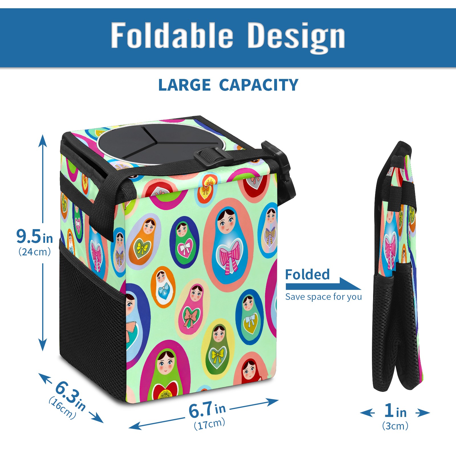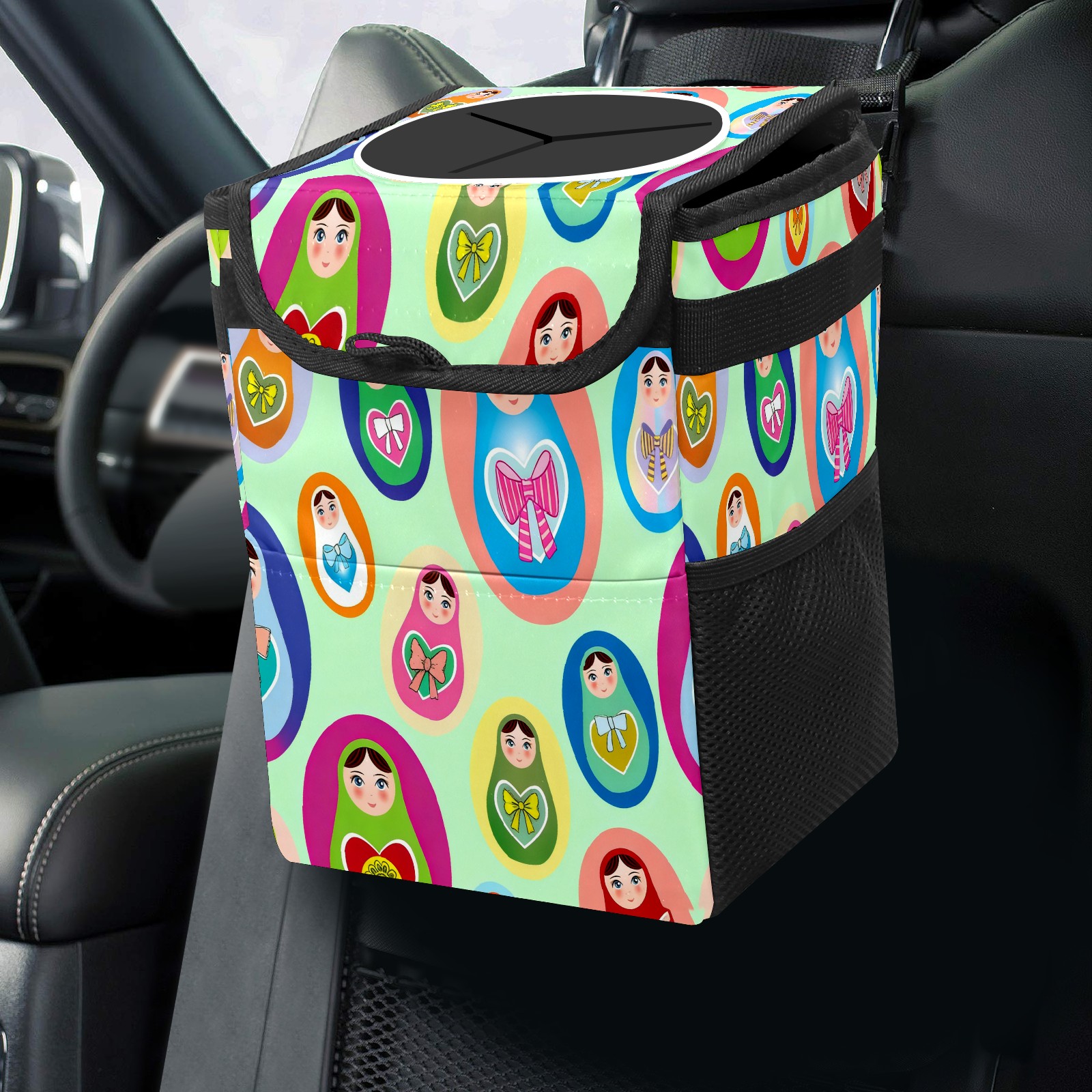 <p><strong> Keep Your Car Spotless!</strong></p><p>Our small, collapsible car trash can is the ultimate solution for a clutter-free ride. With a secure lid, multiple pockets, and stable hanging design, it's a must-have accessory.</p><p><strong>Key Features</strong></p><ul><li><strong>Odor Control:</strong> Rubber-sealed lid traps smells; works with standard trash bags.</li><li><strong>Extra Storage:</strong> Mesh pockets and front pouch keep essentials handy.</li><li><strong>Secure Fit:</strong> Strap and hooks ensure it stays in place on any surface.</li><li><strong>Space-Saving:</strong> Fold flat when not in use to maximize storage.</li><li><strong>Stylish &amp; Durable:</strong> Full-print twill fabric is built to last.</li></ul><p><strong>Specs</strong></p><p>Size: 24*17*16cm | Material: Twill Weave + Webbing | Care: Hand wash, avoid sun exposure.</p>