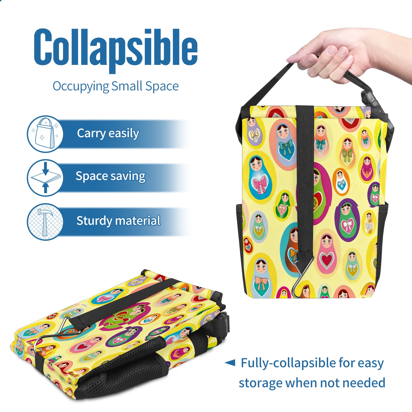 <p><strong> Keep Your Car Spotless!</strong></p><p>Our small, collapsible car trash can is the ultimate solution for a clutter-free ride. With a secure lid, multiple pockets, and stable hanging design, it's a must-have accessory.</p><p><strong>Key Features</strong></p><ul><li><strong>Odor Control:</strong> Rubber-sealed lid traps smells; works with standard trash bags.</li><li><strong>Extra Storage:</strong> Mesh pockets and front pouch keep essentials handy.</li><li><strong>Secure Fit:</strong> Strap and hooks ensure it stays in place on any surface.</li><li><strong>Space-Saving:</strong> Fold flat when not in use to maximize storage.</li><li><strong>Stylish &amp; Durable:</strong> Full-print twill fabric is built to last.</li></ul><p><strong>Specs</strong></p><p>Size: 24*17*16cm | Material: Twill Weave + Webbing | Care: Hand wash, avoid sun exposure.</p>