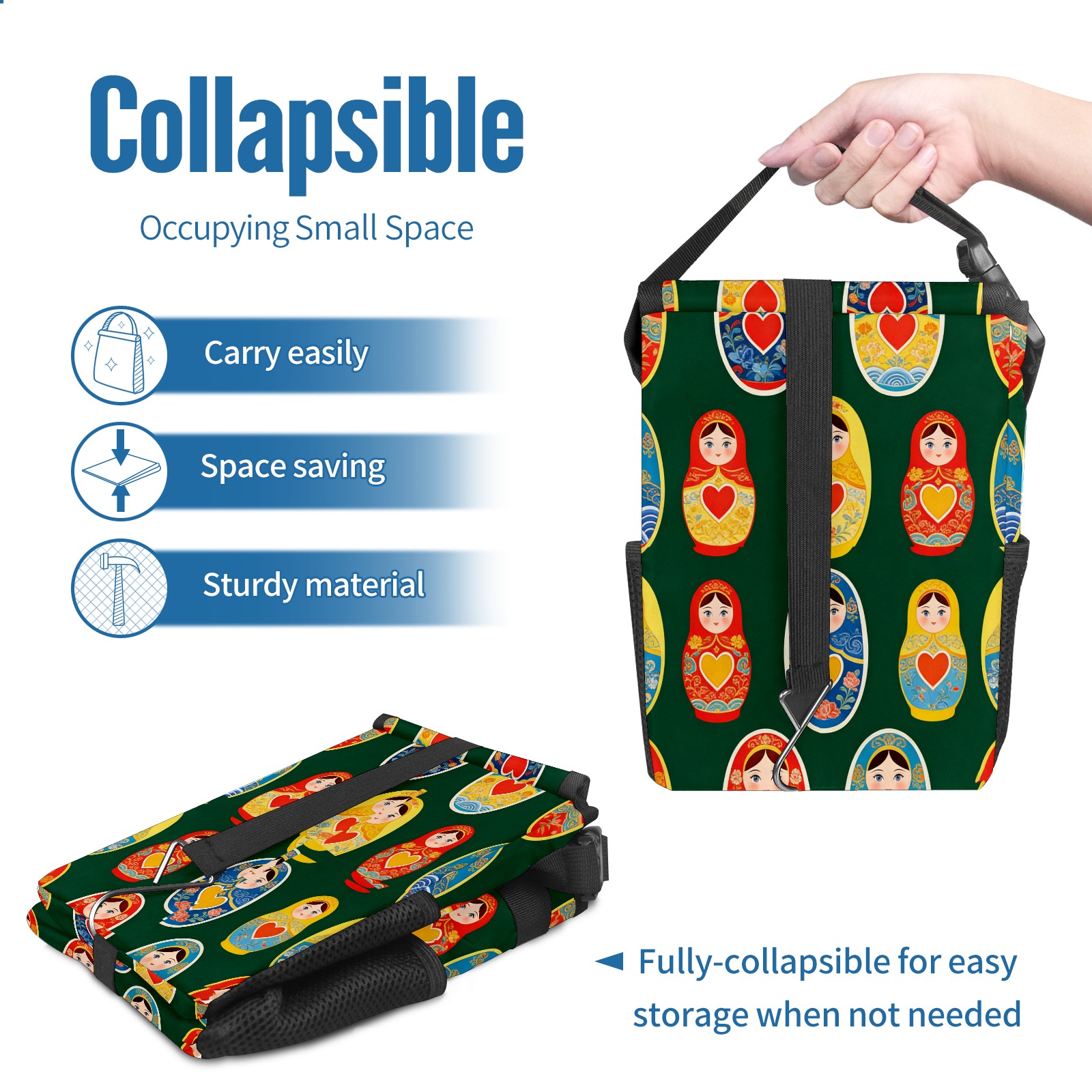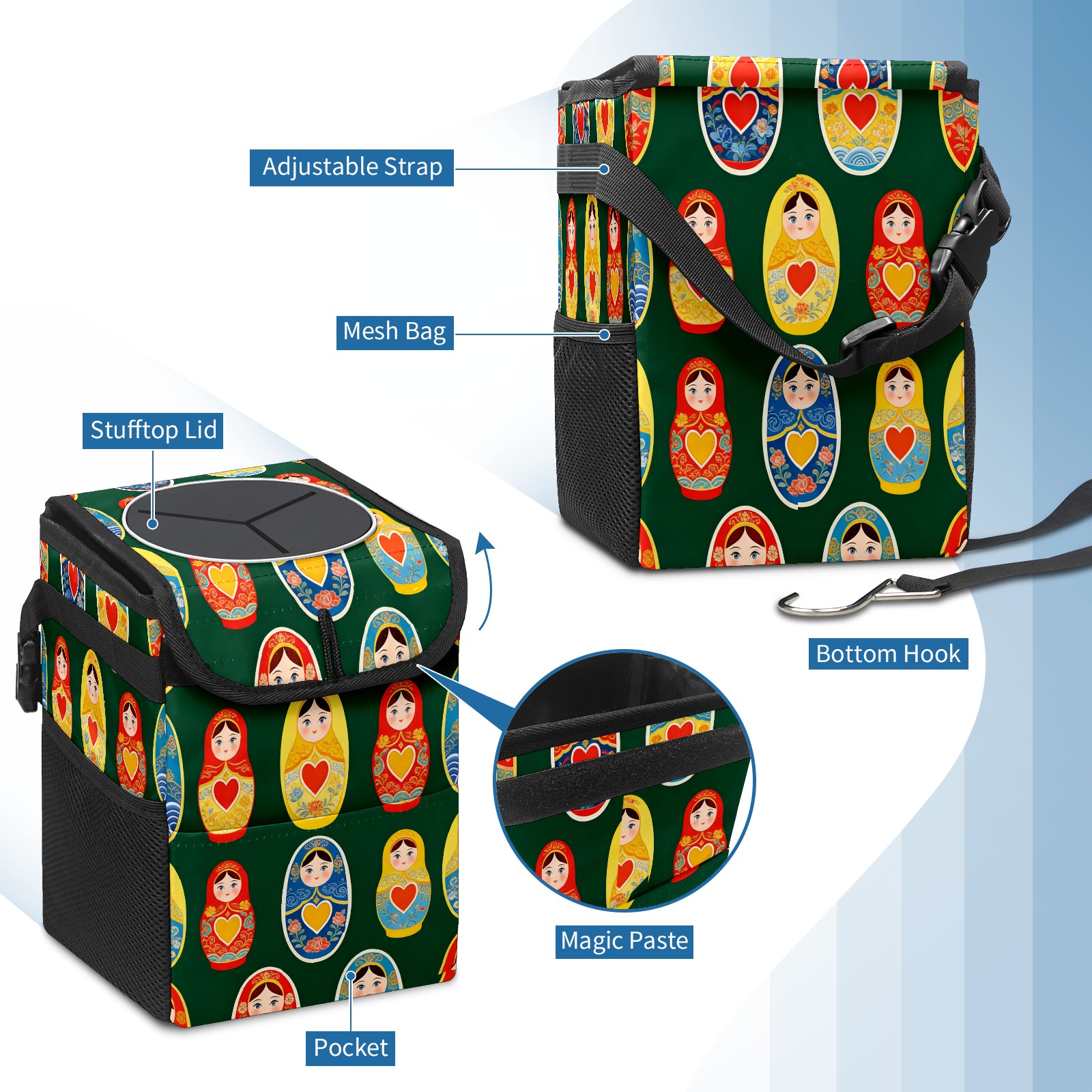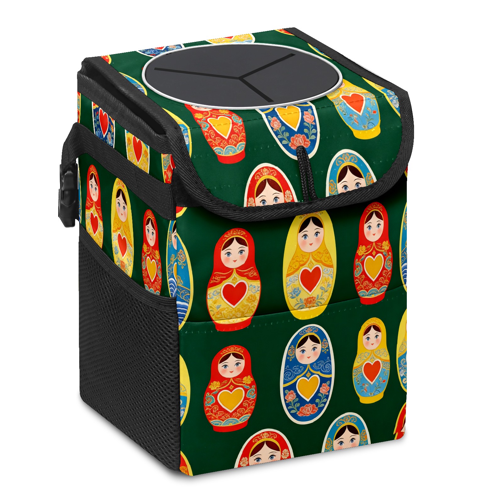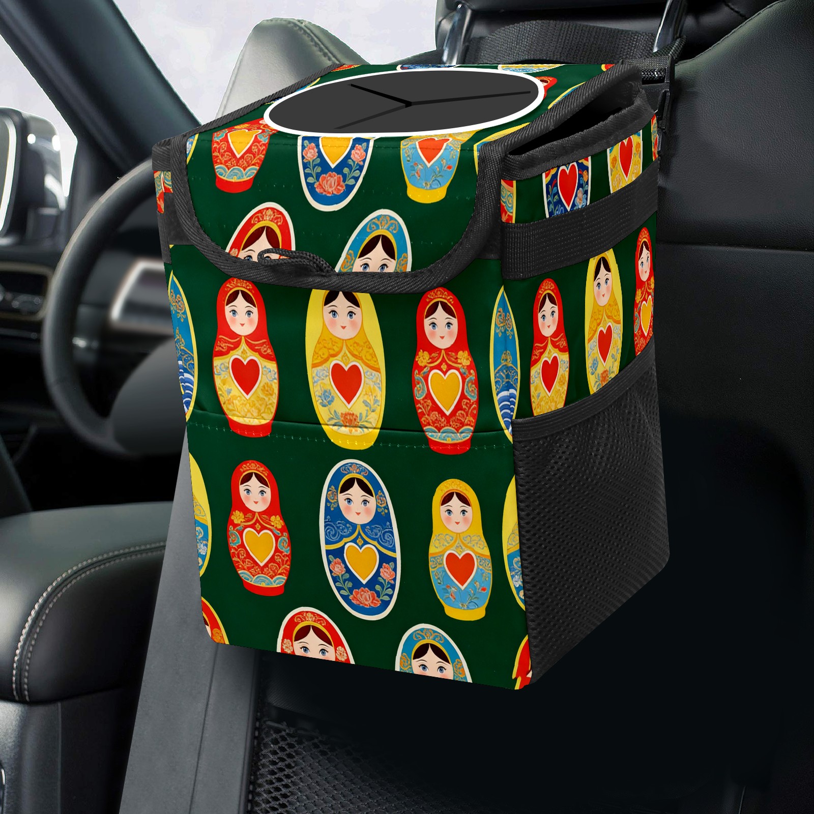 <p><strong> Keep Your Car Spotless!</strong></p><p>Our small, collapsible car trash can is the ultimate solution for a clutter-free ride. With a secure lid, multiple pockets, and stable hanging design, it's a must-have accessory.</p><p><strong>Key Features</strong></p><ul><li><strong>Odor Control:</strong> Rubber-sealed lid traps smells; works with standard trash bags.</li><li><strong>Extra Storage:</strong> Mesh pockets and front pouch keep essentials handy.</li><li><strong>Secure Fit:</strong> Strap and hooks ensure it stays in place on any surface.</li><li><strong>Space-Saving:</strong> Fold flat when not in use to maximize storage.</li><li><strong>Stylish &amp; Durable:</strong> Full-print twill fabric is built to last.</li></ul><p><strong>Specs</strong></p><p>Size: 24*17*16cm | Material: Twill Weave + Webbing | Care: Hand wash, avoid sun exposure.</p>