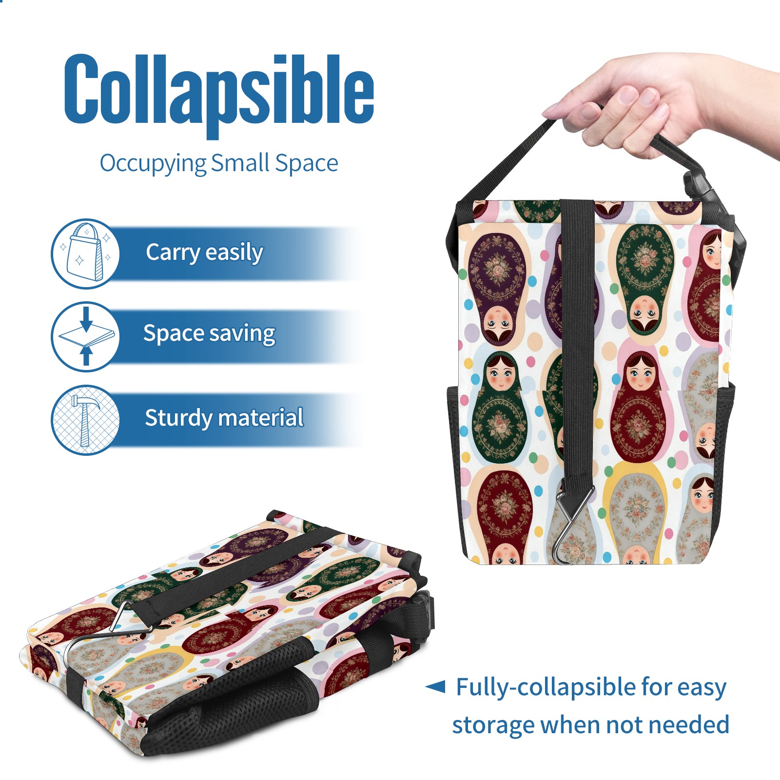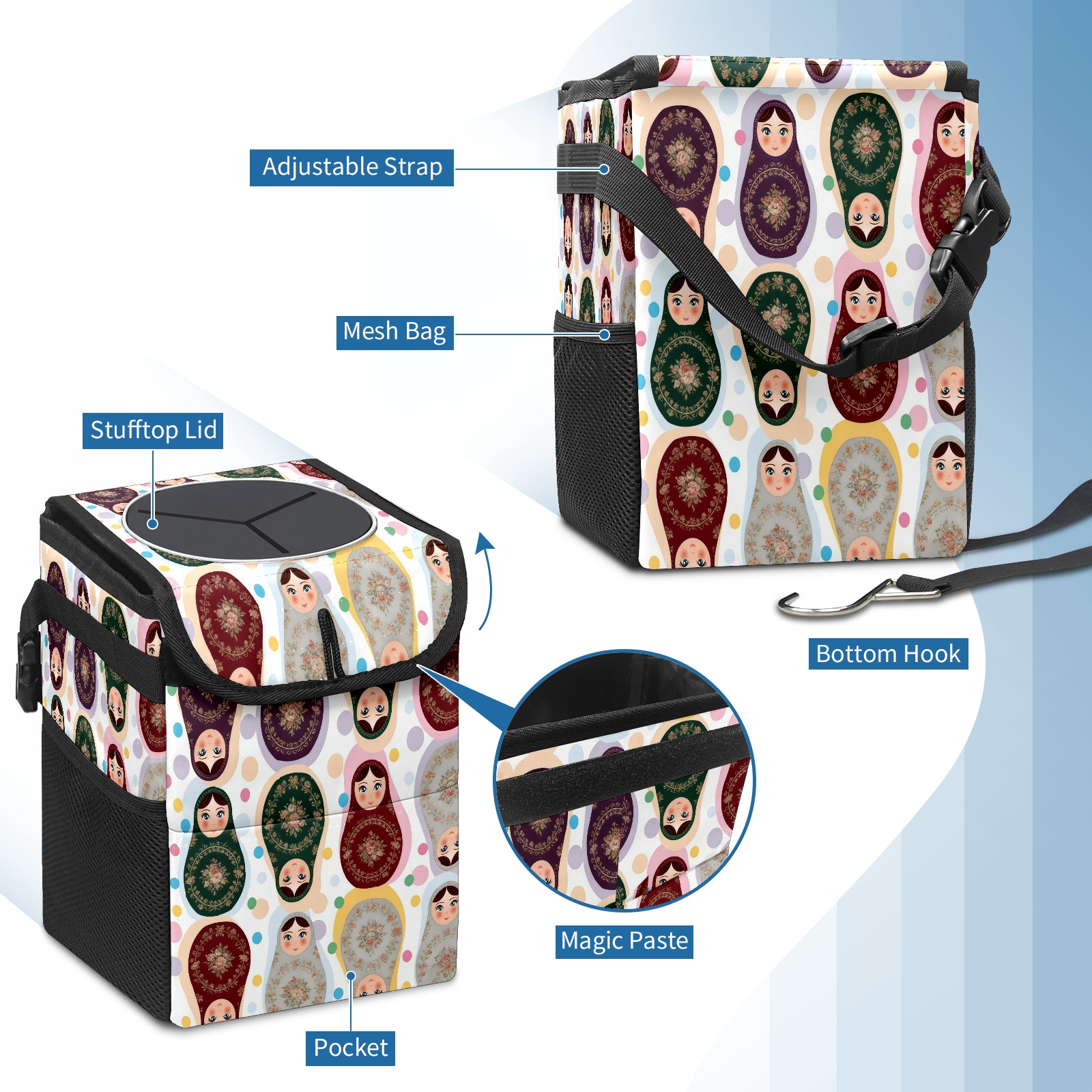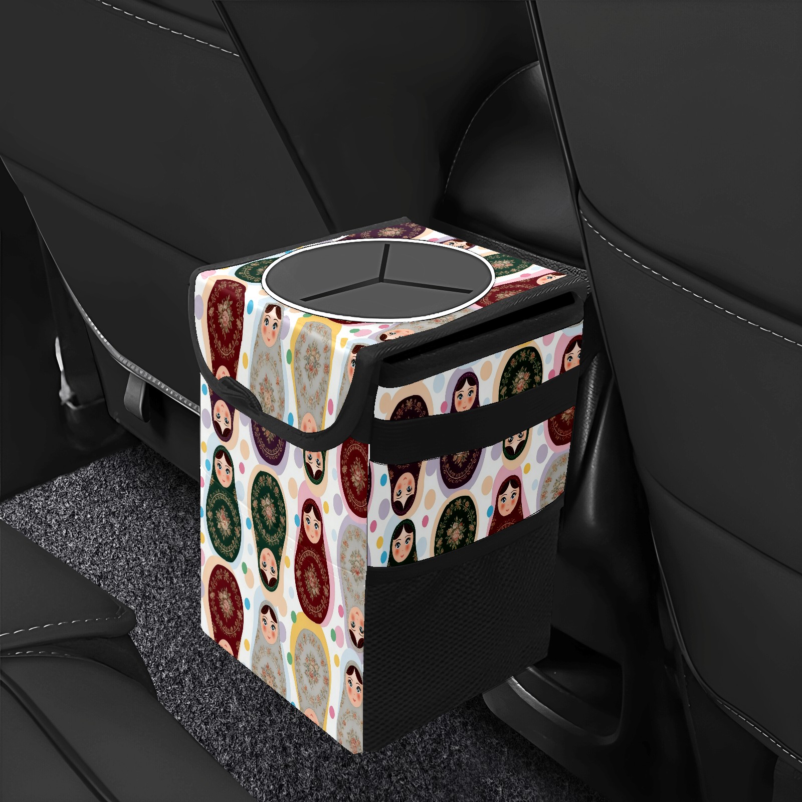<p><strong> Keep Your Car Spotless!</strong></p><p>Our small, collapsible car trash can is the ultimate solution for a clutter-free ride. With a secure lid, multiple pockets, and stable hanging design, it's a must-have accessory.</p><p><strong>Key Features</strong></p><ul><li><strong>Odor Control:</strong> Rubber-sealed lid traps smells; works with standard trash bags.</li><li><strong>Extra Storage:</strong> Mesh pockets and front pouch keep essentials handy.</li><li><strong>Secure Fit:</strong> Strap and hooks ensure it stays in place on any surface.</li><li><strong>Space-Saving:</strong> Fold flat when not in use to maximize storage.</li><li><strong>Stylish &amp; Durable:</strong> Full-print twill fabric is built to last.</li></ul><p><strong>Specs</strong></p><p>Size: 24*17*16cm | Material: Twill Weave + Webbing | Care: Hand wash, avoid sun exposure.</p>