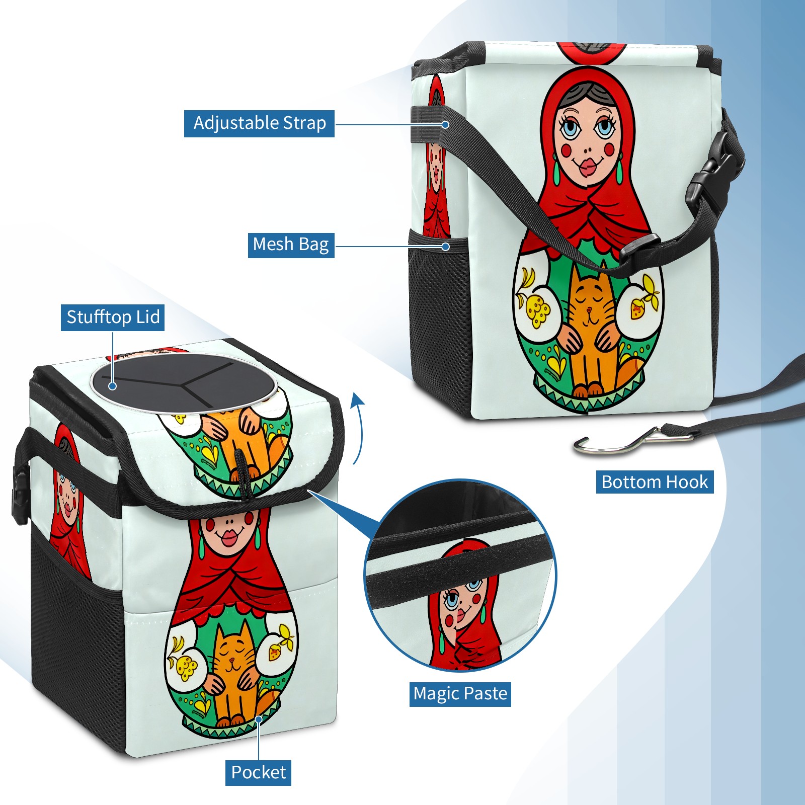 <p><strong> Keep Your Car Spotless!</strong></p><p>Our small, collapsible car trash can is the ultimate solution for a clutter-free ride. With a secure lid, multiple pockets, and stable hanging design, it's a must-have accessory.</p><p><strong>Key Features</strong></p><ul><li><strong>Odor Control:</strong> Rubber-sealed lid traps smells; works with standard trash bags.</li><li><strong>Extra Storage:</strong> Mesh pockets and front pouch keep essentials handy.</li><li><strong>Secure Fit:</strong> Strap and hooks ensure it stays in place on any surface.</li><li><strong>Space-Saving:</strong> Fold flat when not in use to maximize storage.</li><li><strong>Stylish &amp; Durable:</strong> Full-print twill fabric is built to last.</li></ul><p><strong>Specs</strong></p><p>Size: 24*17*16cm | Material: Twill Weave + Webbing | Care: Hand wash, avoid sun exposure.</p>
