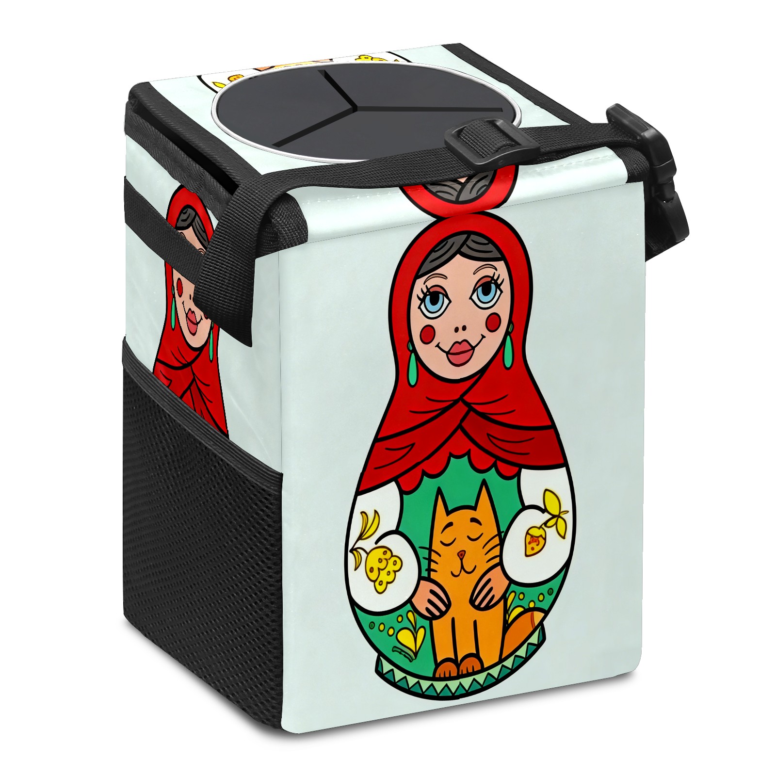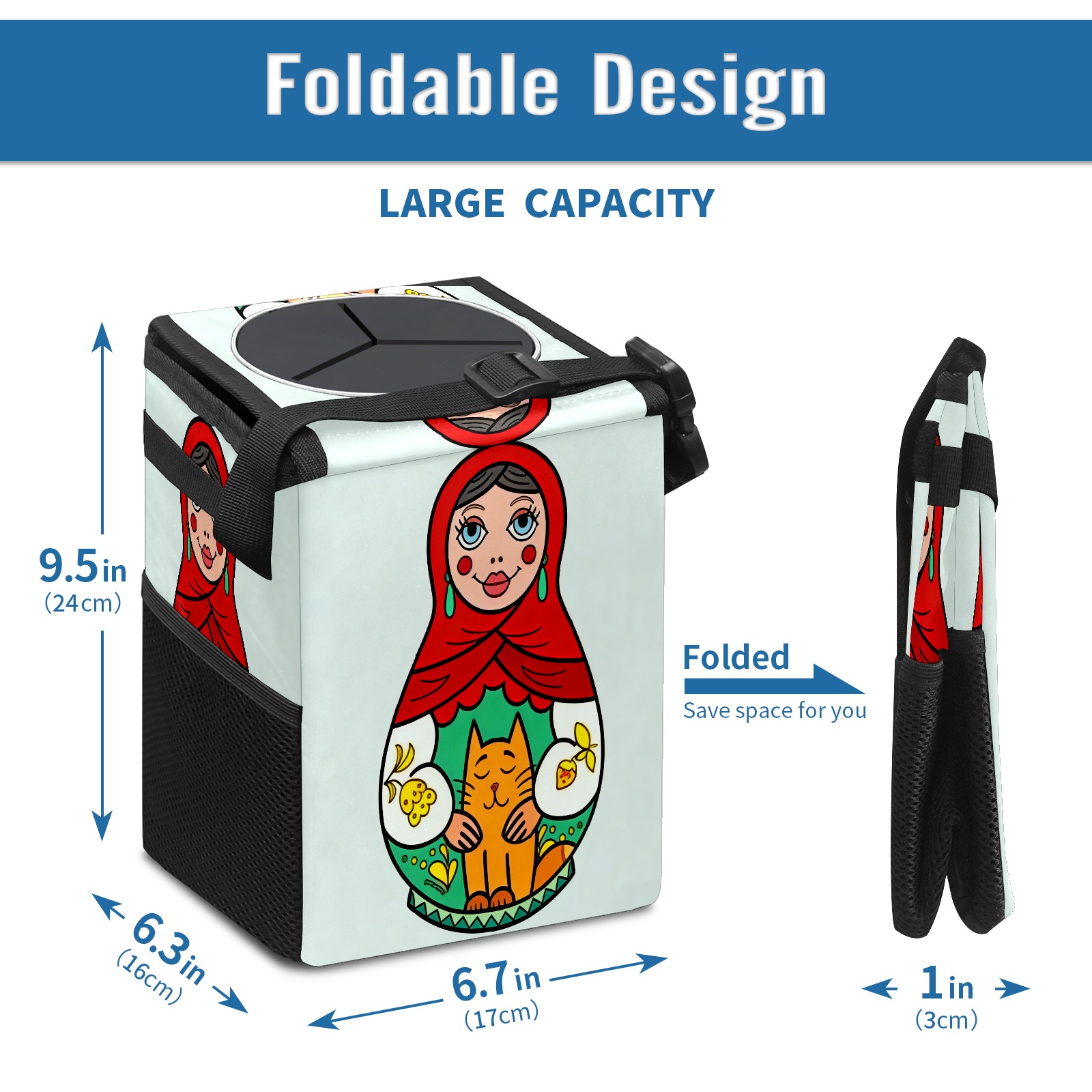 Small Collapsible Car Trash Can with Lid, Hanging Garbage Bin with Storage Pockets, Fiery Dolls Red for Front/Back Seat, Car Interior Organizer Accessory