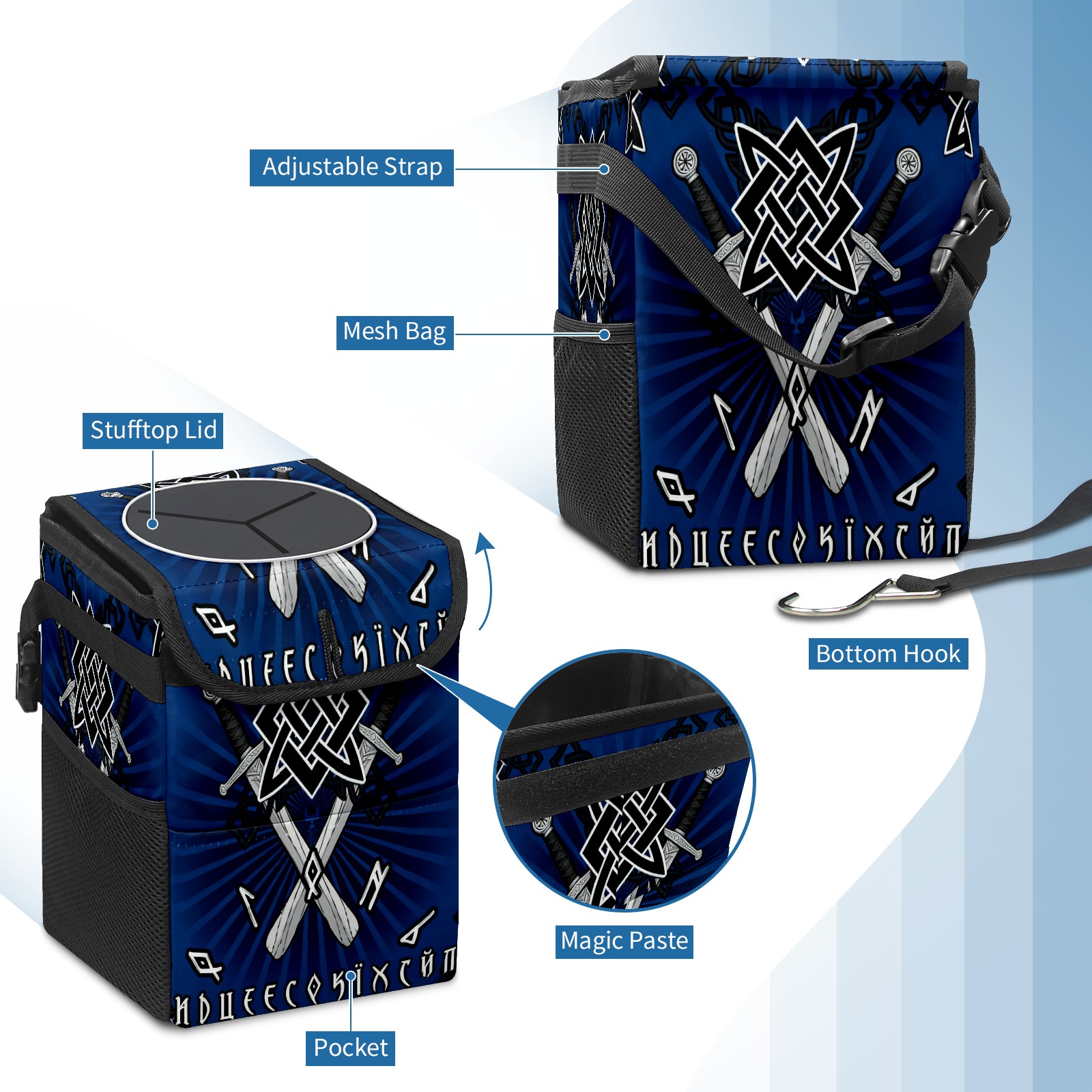 <p><strong> Keep Your Car Spotless!</strong></p><p>Our small, collapsible car trash can is the ultimate solution for a clutter-free ride. With a secure lid, multiple pockets, and stable hanging design, it's a must-have accessory.</p><p><strong>Key Features</strong></p><ul><li><strong>Odor Control:</strong> Rubber-sealed lid traps smells; works with standard trash bags.</li><li><strong>Extra Storage:</strong> Mesh pockets and front pouch keep essentials handy.</li><li><strong>Secure Fit:</strong> Strap and hooks ensure it stays in place on any surface.</li><li><strong>Space-Saving:</strong> Fold flat when not in use to maximize storage.</li><li><strong>Stylish &amp; Durable:</strong> Full-print twill fabric is built to last.</li></ul><p><strong>Specs</strong></p><p>Size: 24*17*16cm | Material: Twill Weave + Webbing | Care: Hand wash, avoid sun exposure.</p>