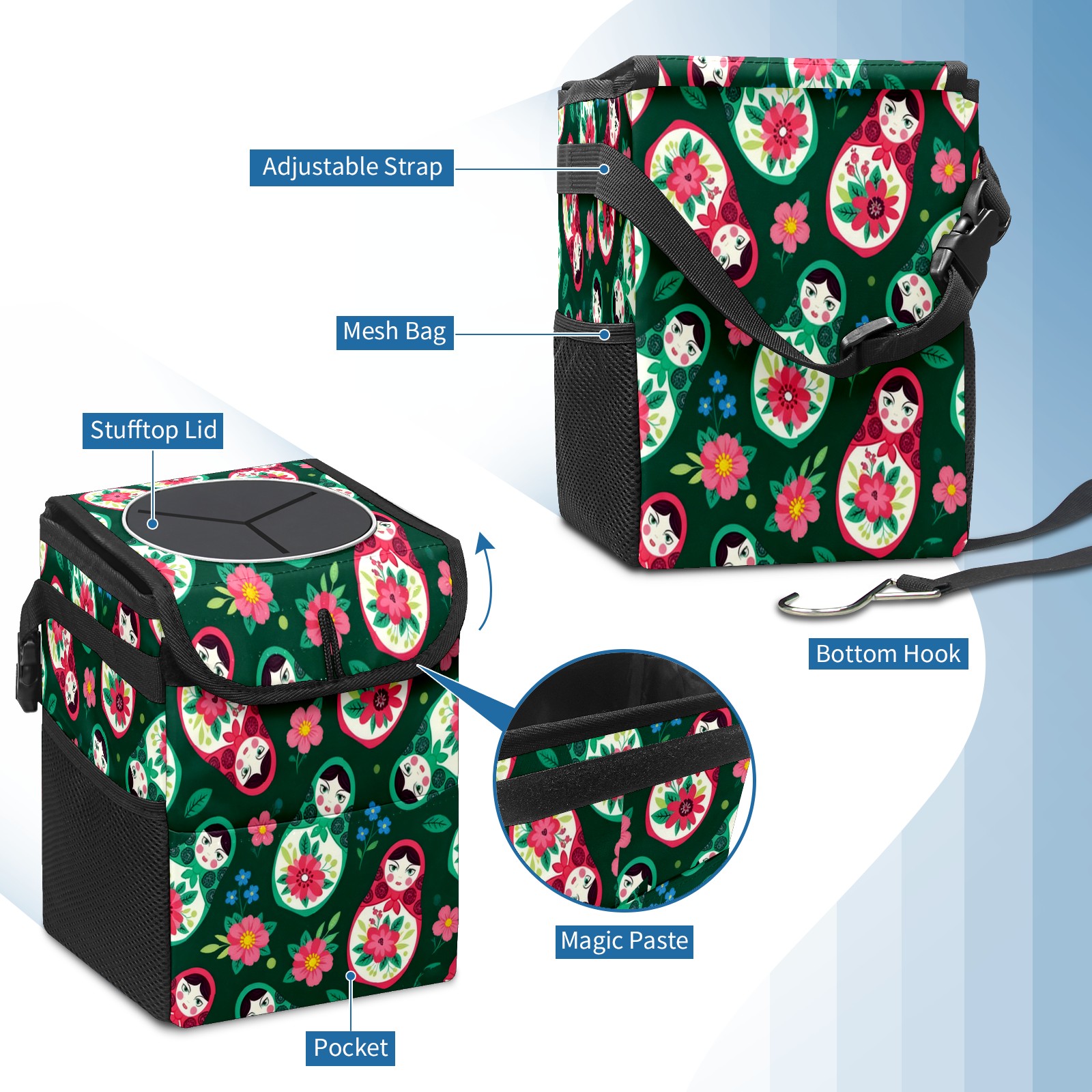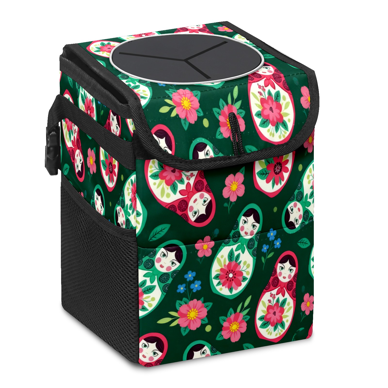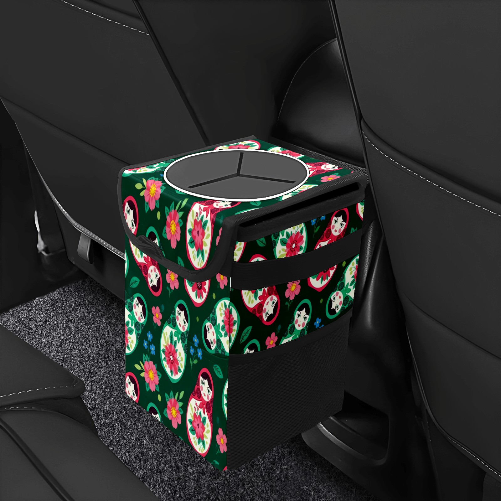 • <p><strong> Keep Your Car Spotless!</strong></p><p>Our small, collapsible car trash can is the ultimate solution for a clutter-free ride. With a secure lid, multiple pockets, and stable hanging design, it's a must-have accessory.</p><p><strong>Key Features</strong></p><ul><li><strong>Odor Control:</strong> Rubber-sealed lid traps smells; works with standard trash bags.</li><li><strong>Extra Storage:</strong> Mesh pockets and front pouch keep essentials handy.</li><li><strong>Secure Fit:</strong> Strap and hooks ensure it stays in place on any surface.</li><li><strong>Space-Saving:</strong> Fold flat when not in use to maximize storage.</li><li><strong>Stylish &amp; Durable:</strong> Full-print twill fabric is built to last.</li></ul><p><strong>Specs</strong></p><p>Size: 24*17*16cm | Material: Twill Weave + Webbing | Care: Hand wash, avoid sun exposure.</p>