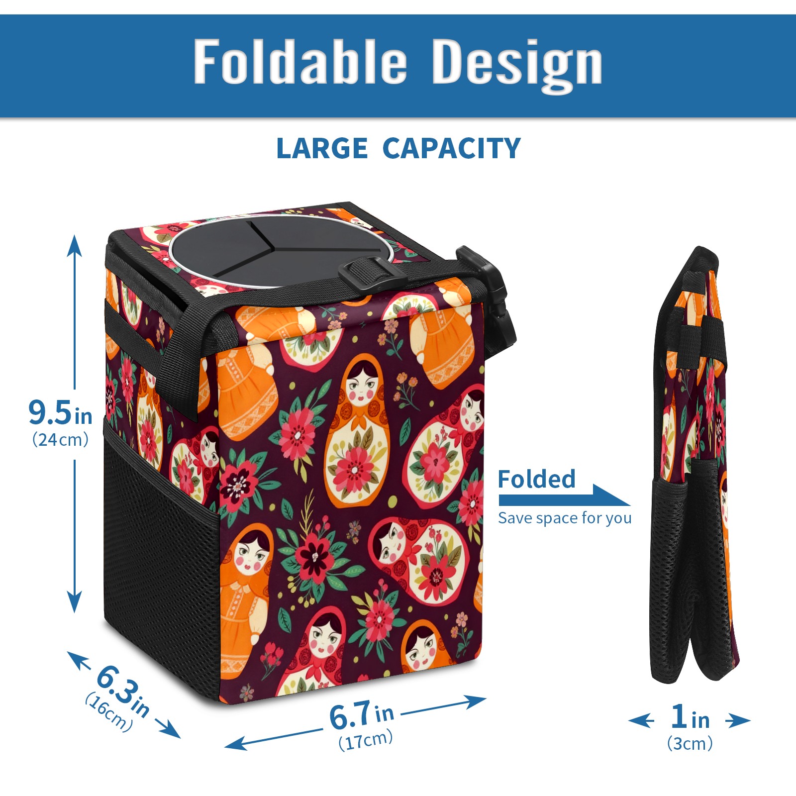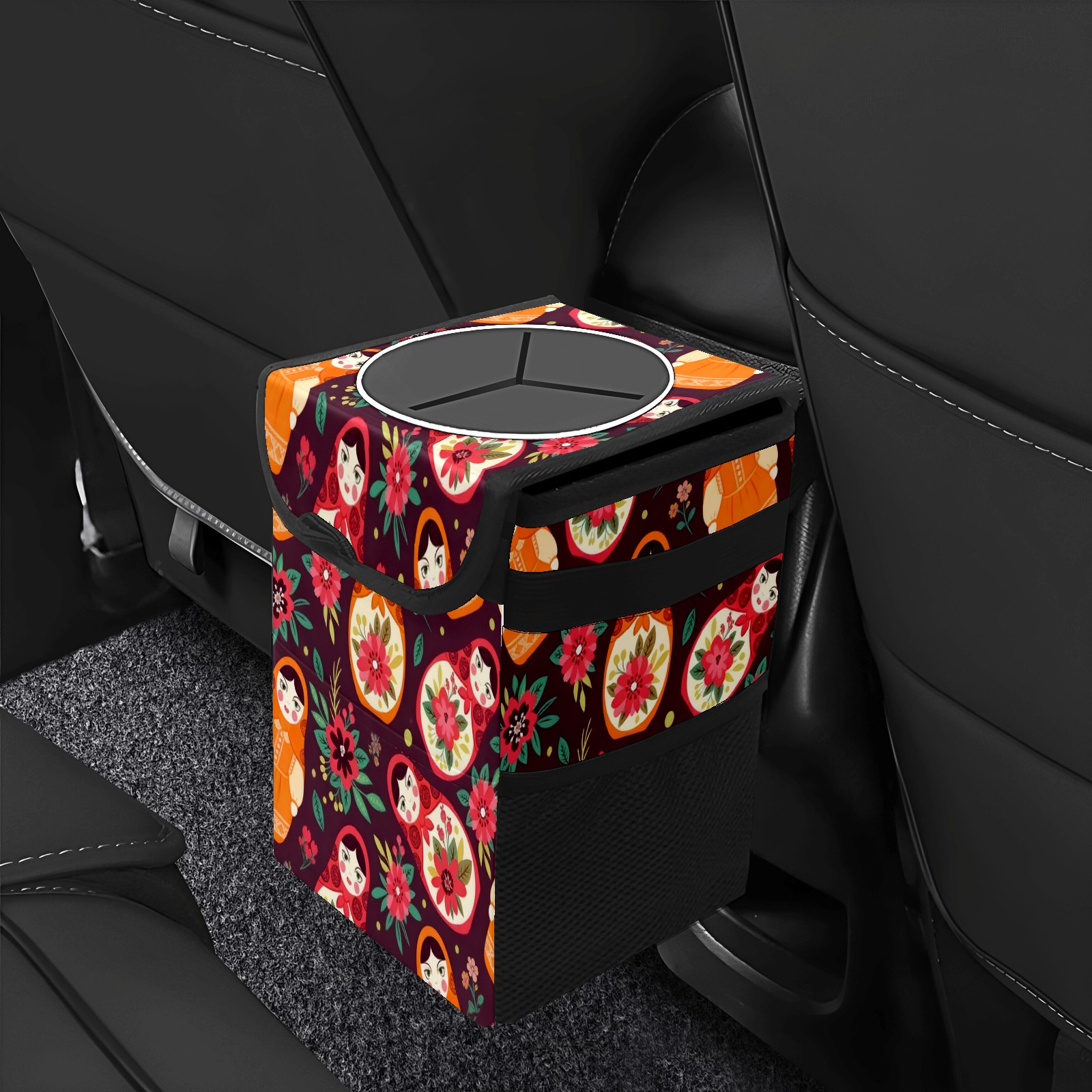 <p><strong> Keep Your Car Spotless!</strong></p><p>Our small, collapsible car trash can is the ultimate solution for a clutter-free ride. With a secure lid, multiple pockets, and stable hanging design, it's a must-have accessory.</p><p><strong>Key Features</strong></p><ul><li><strong>Odor Control:</strong> Rubber-sealed lid traps smells; works with standard trash bags.</li><li><strong>Extra Storage:</strong> Mesh pockets and front pouch keep essentials handy.</li><li><strong>Secure Fit:</strong> Strap and hooks ensure it stays in place on any surface.</li><li><strong>Space-Saving:</strong> Fold flat when not in use to maximize storage.</li><li><strong>Stylish &amp; Durable:</strong> Full-print twill fabric is built to last.</li></ul><p><strong>Specs</strong></p><p>Size: 24*17*16cm | Material: Twill Weave + Webbing | Care: Hand wash, avoid sun exposure.</p>