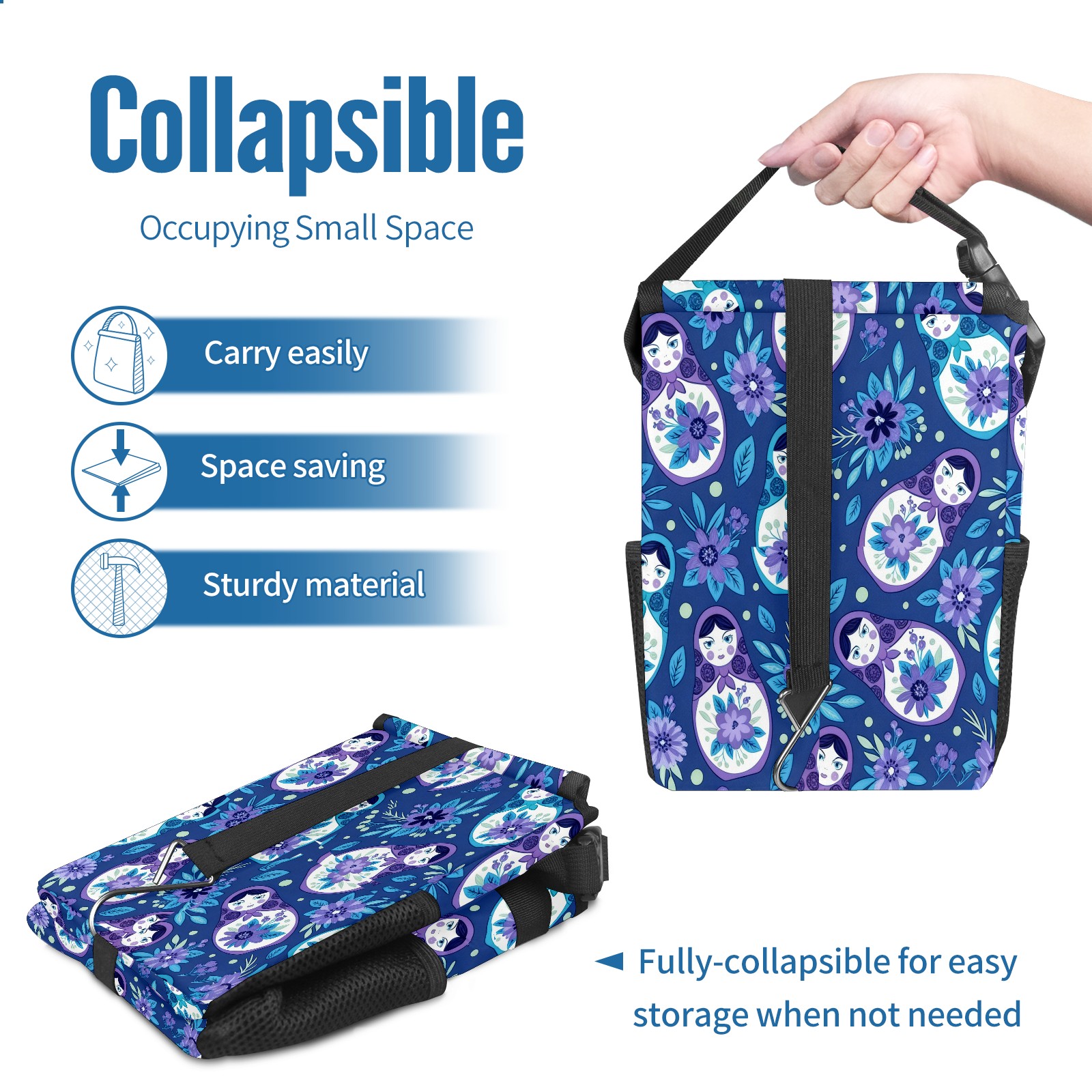 <p><strong> Keep Your Car Spotless!</strong></p><p>Our small, collapsible car trash can is the ultimate solution for a clutter-free ride. With a secure lid, multiple pockets, and stable hanging design, it's a must-have accessory.</p><p><strong>Key Features</strong></p><ul><li><strong>Odor Control:</strong> Rubber-sealed lid traps smells; works with standard trash bags.</li><li><strong>Extra Storage:</strong> Mesh pockets and front pouch keep essentials handy.</li><li><strong>Secure Fit:</strong> Strap and hooks ensure it stays in place on any surface.</li><li><strong>Space-Saving:</strong> Fold flat when not in use to maximize storage.</li><li><strong>Stylish &amp; Durable:</strong> Full-print twill fabric is built to last.</li></ul><p><strong>Specs</strong></p><p>Size: 24*17*16cm | Material: Twill Weave + Webbing | Care: Hand wash, avoid sun exposure.</p>