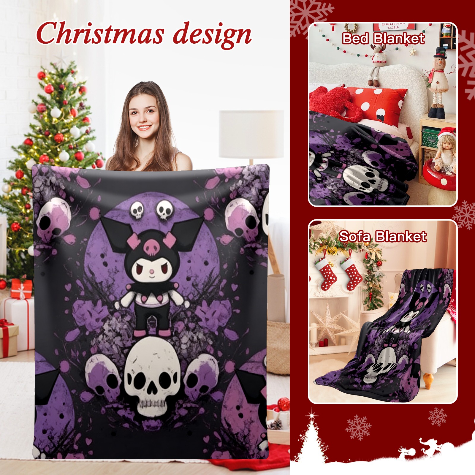 Премиальная фланелевая одеяло Dark Kuromi Purple