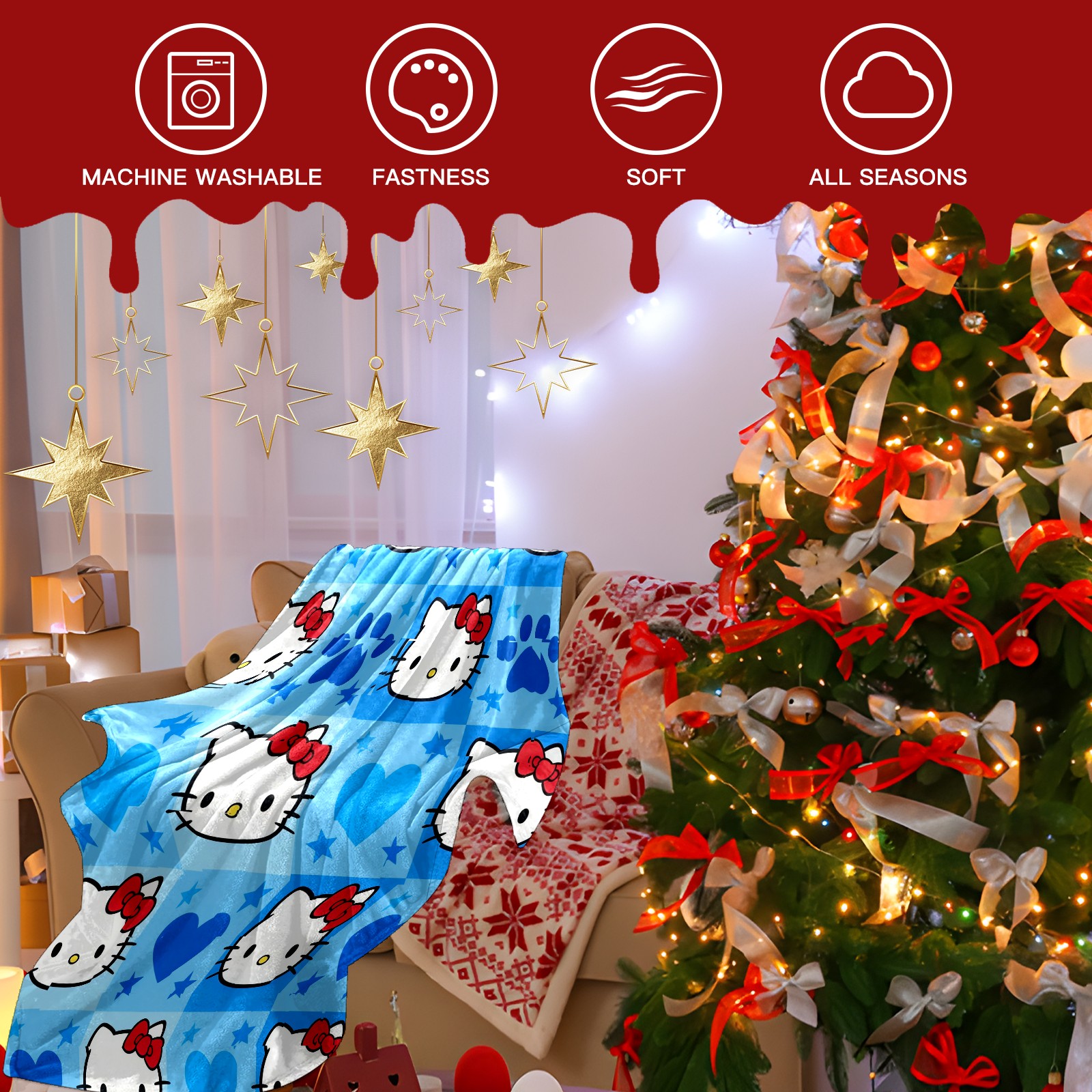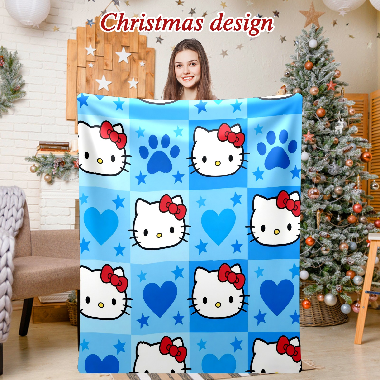 Премиальная фланелевая одеяло Dynamic Hello Kitty Blue