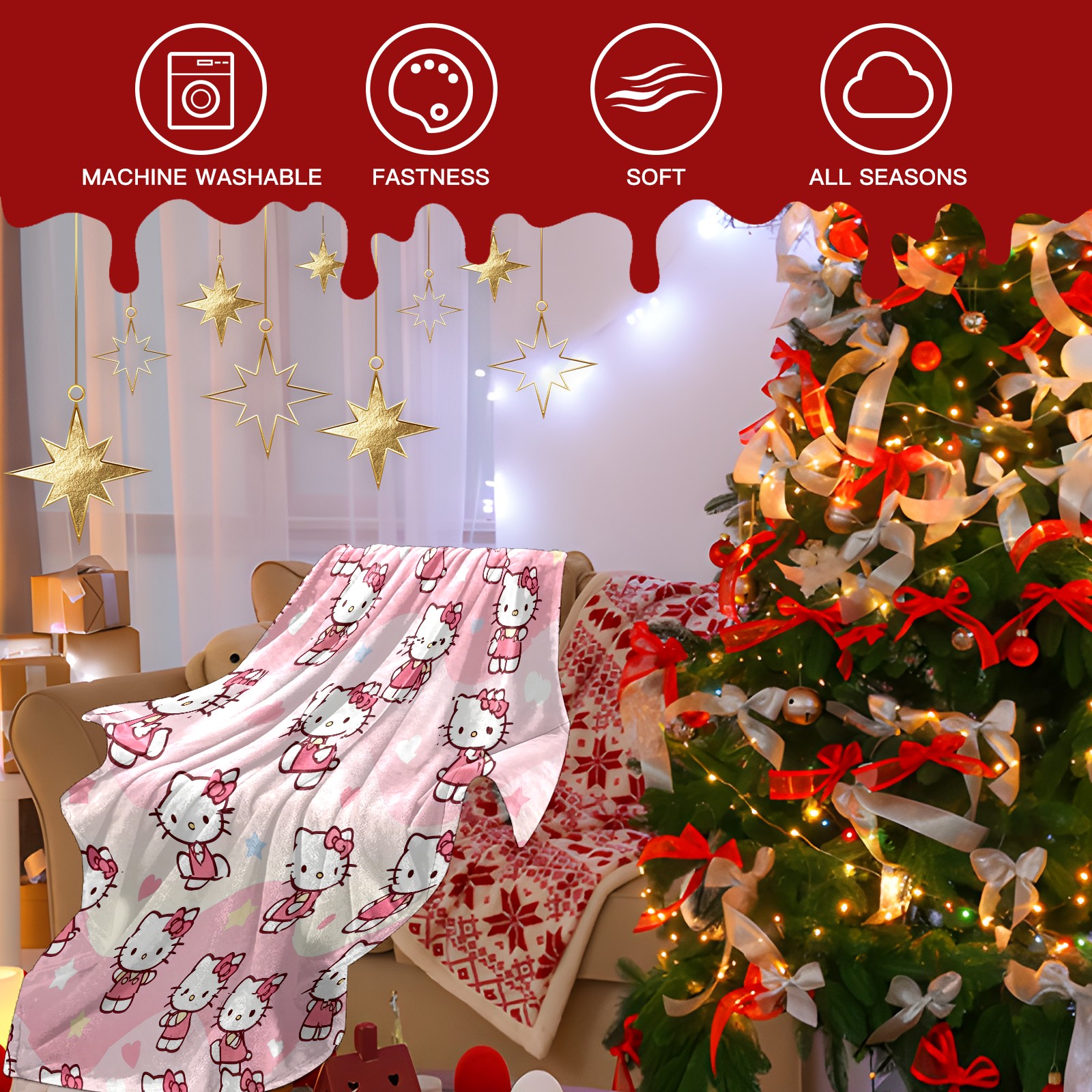 Премиальная фланелевая одеяло Soft Hello Kitty Pink