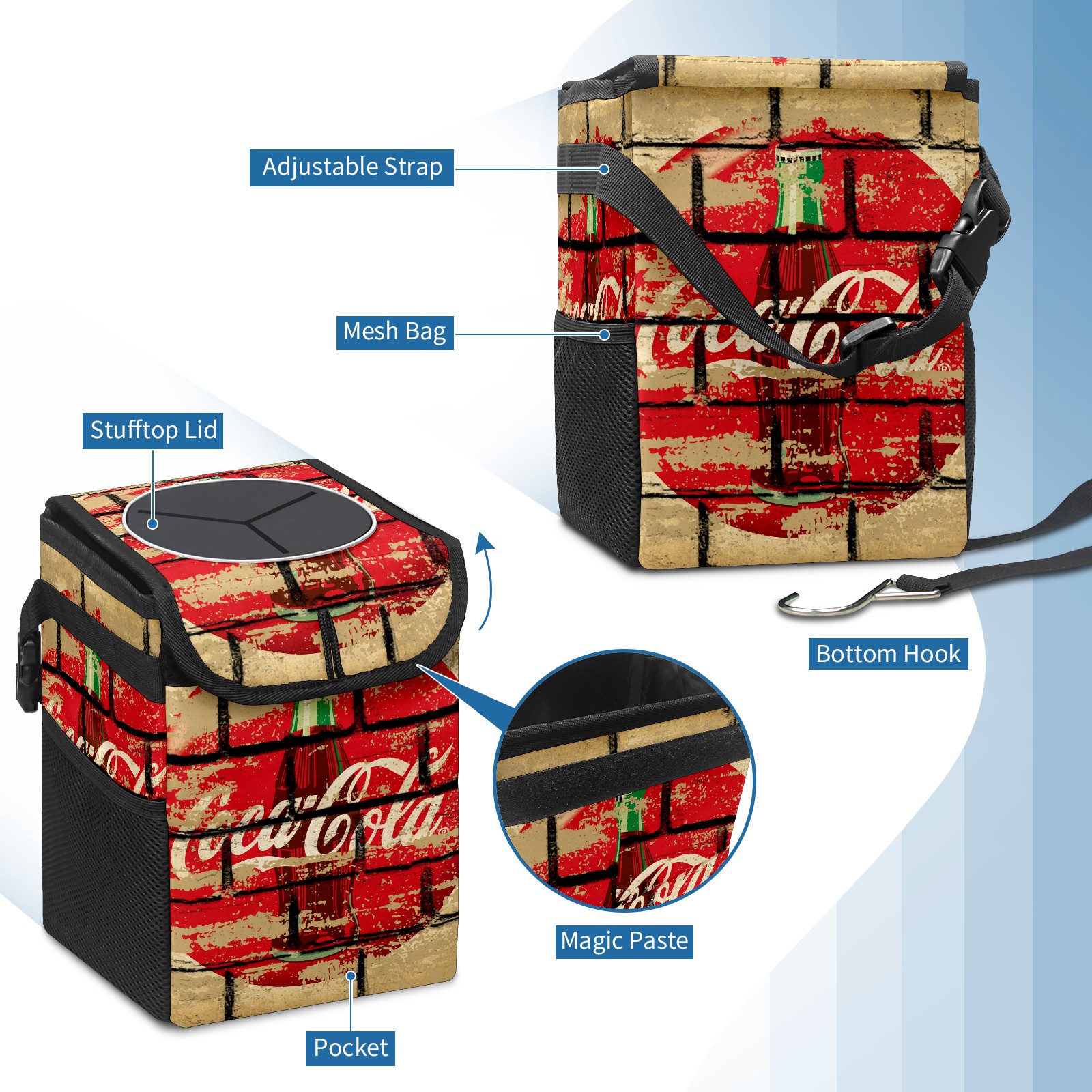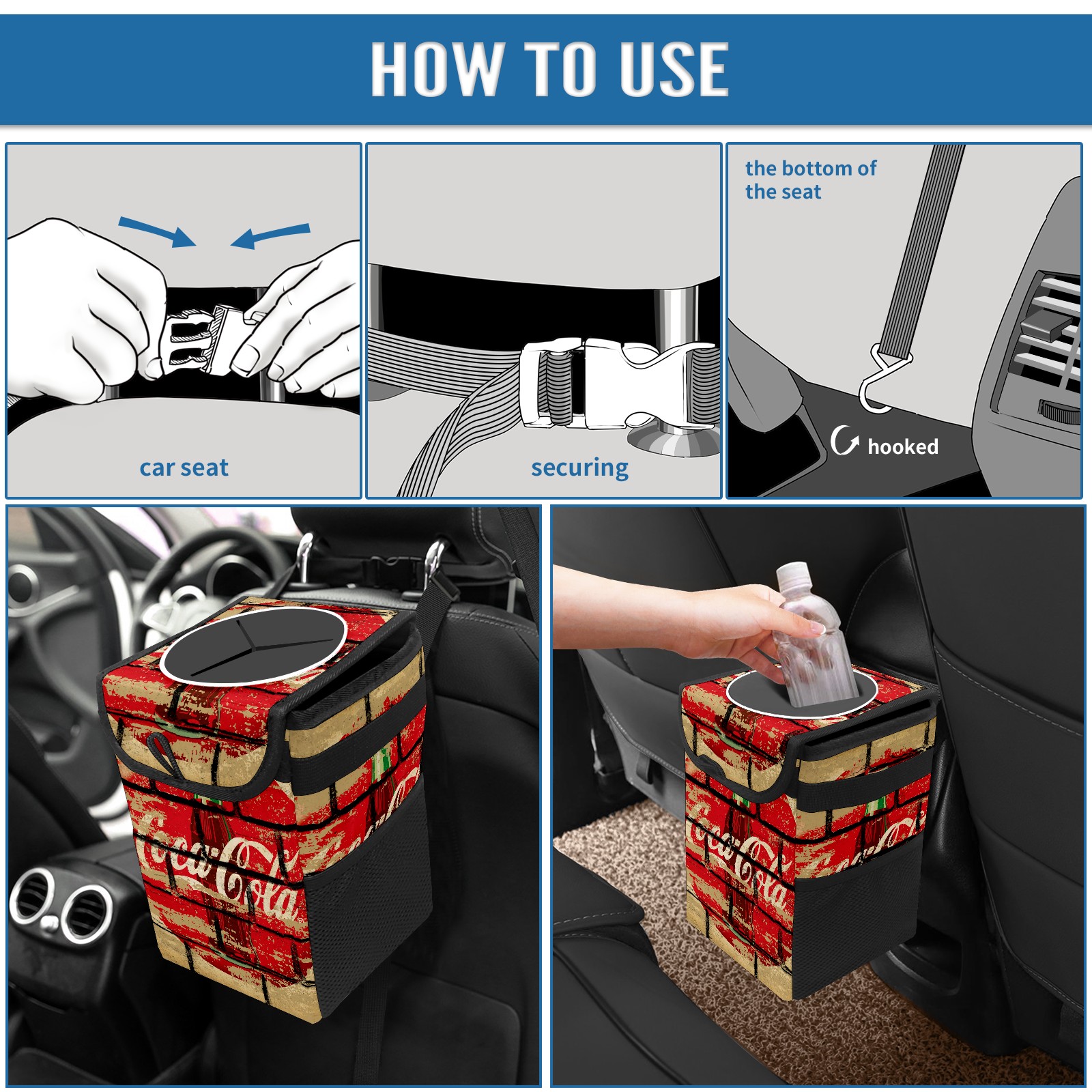 Car Garbage Can — Multi-functional, Lightweight Portable, Reusable Vehicle Trash Can, Waterproof with Sufficient Storage Capacity 可口可乐14
