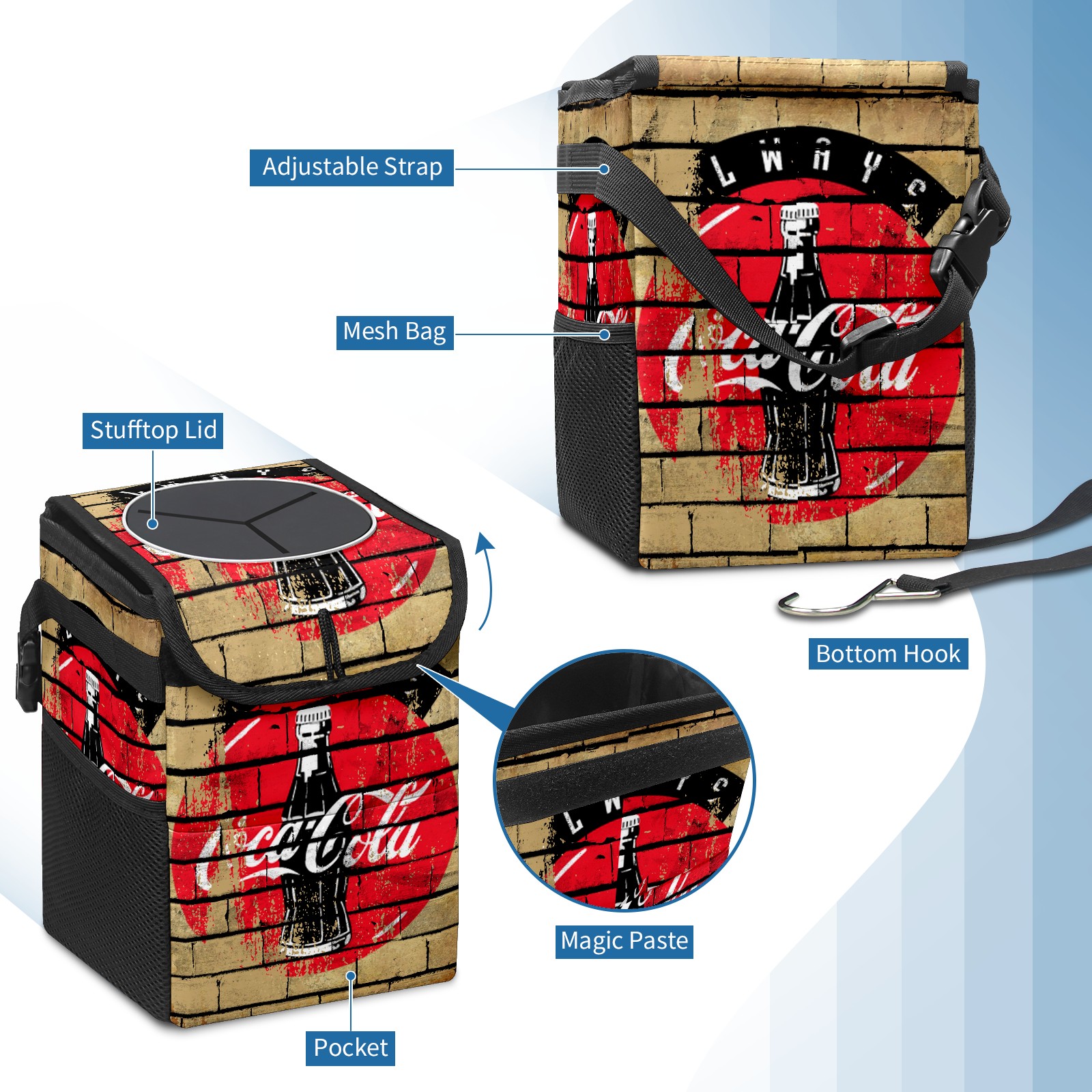 Car Garbage Can — Multi-functional, Lightweight Portable, Reusable Vehicle Trash Can, Waterproof with Sufficient Storage Capacity 可口可乐10