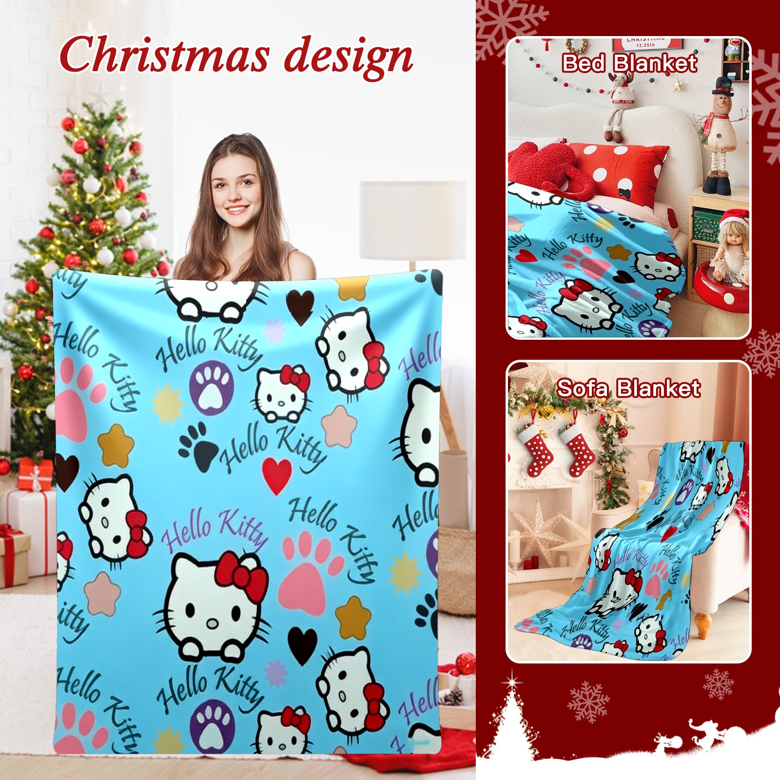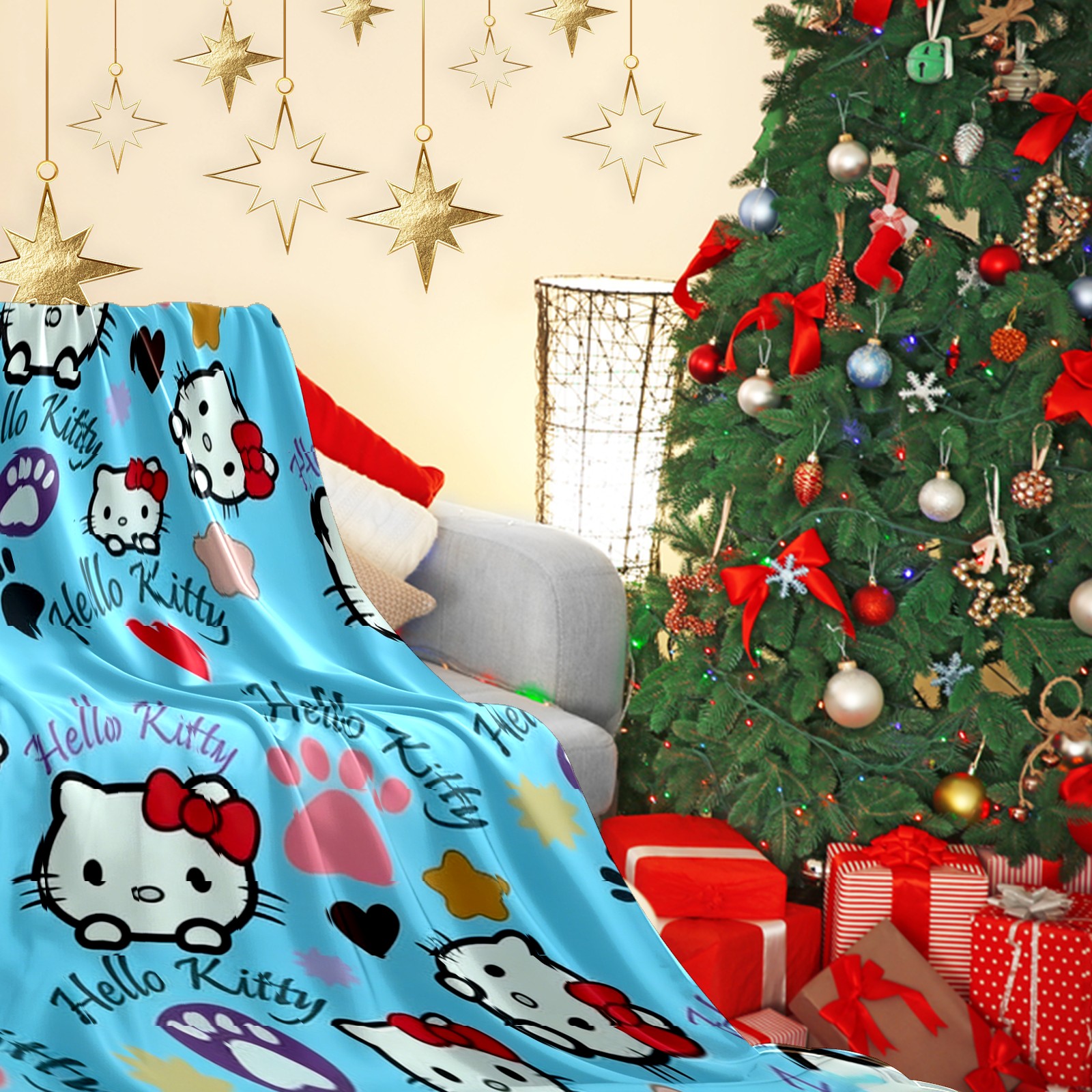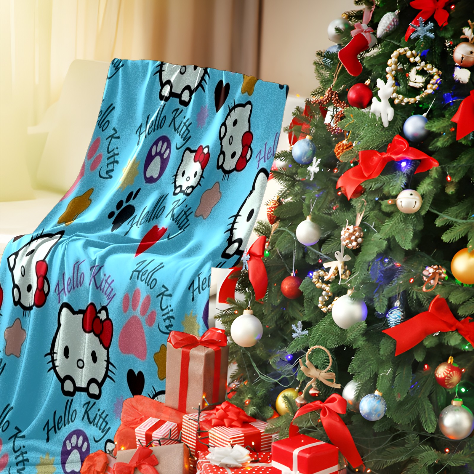 Премиальная фланелевая одеяло Bright Hello Kitty Blue
