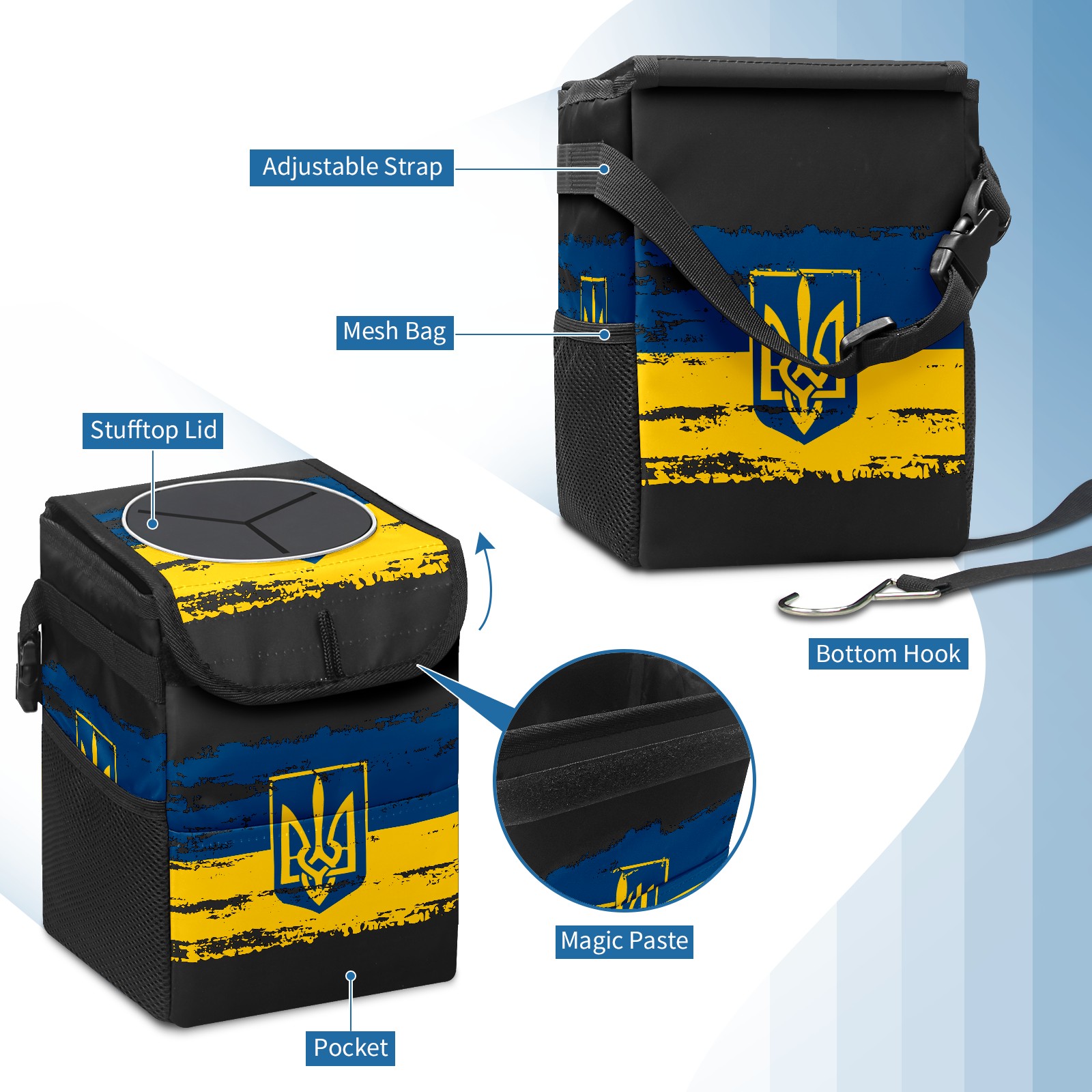 Car Garbage Can — Multi-functional, Lightweight Portable, Reusable Vehicle Trash Can, Waterproof with Sufficient Storage Capacity 仿版乌克兰款式图案9