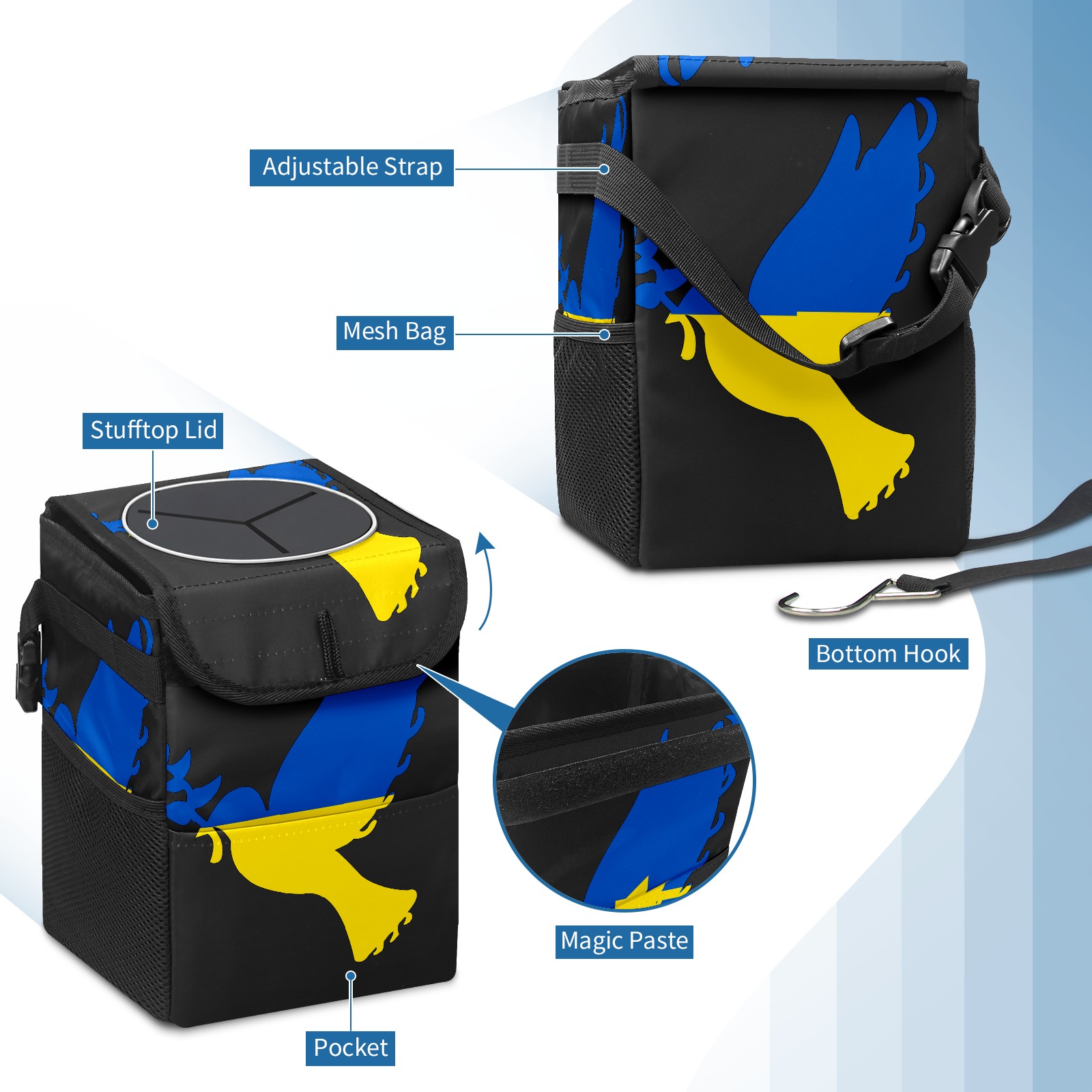 Car Garbage Can — Multi-functional, Lightweight Portable, Reusable Vehicle Trash Can, Waterproof with Sufficient Storage Capacity 仿版乌克兰款式图案