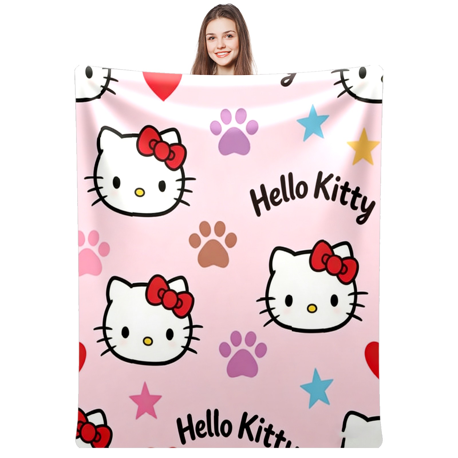Премиальная фланелевая одеяло Fiery Hello Kitty Pink