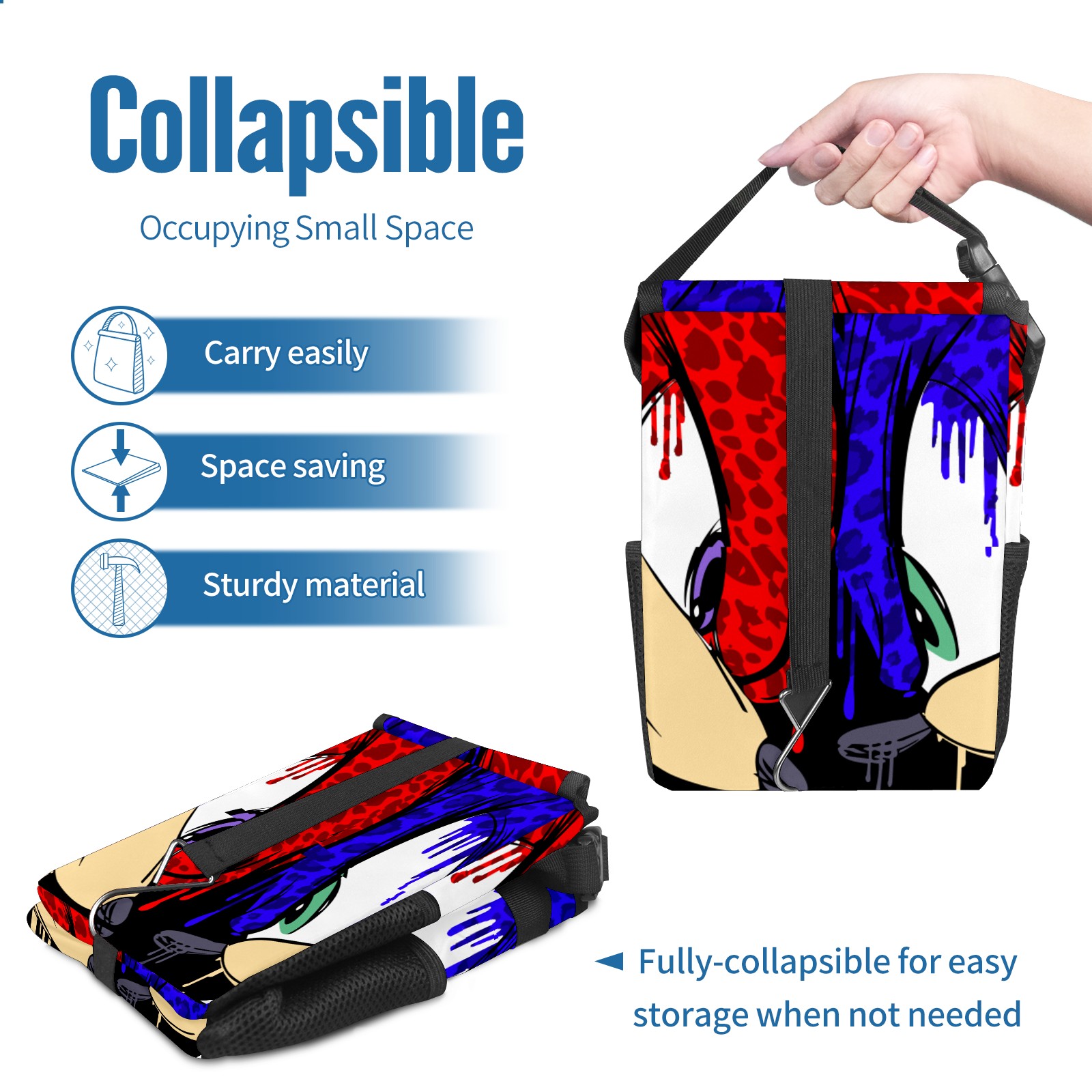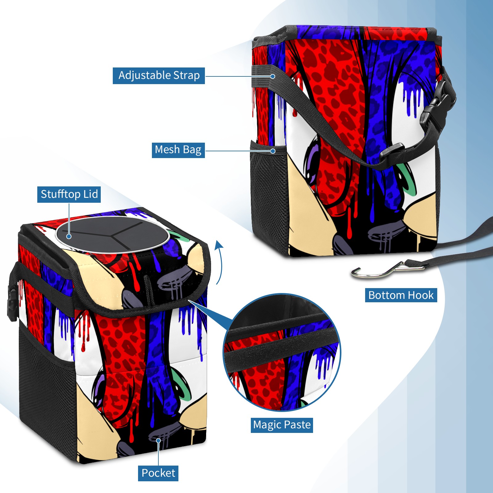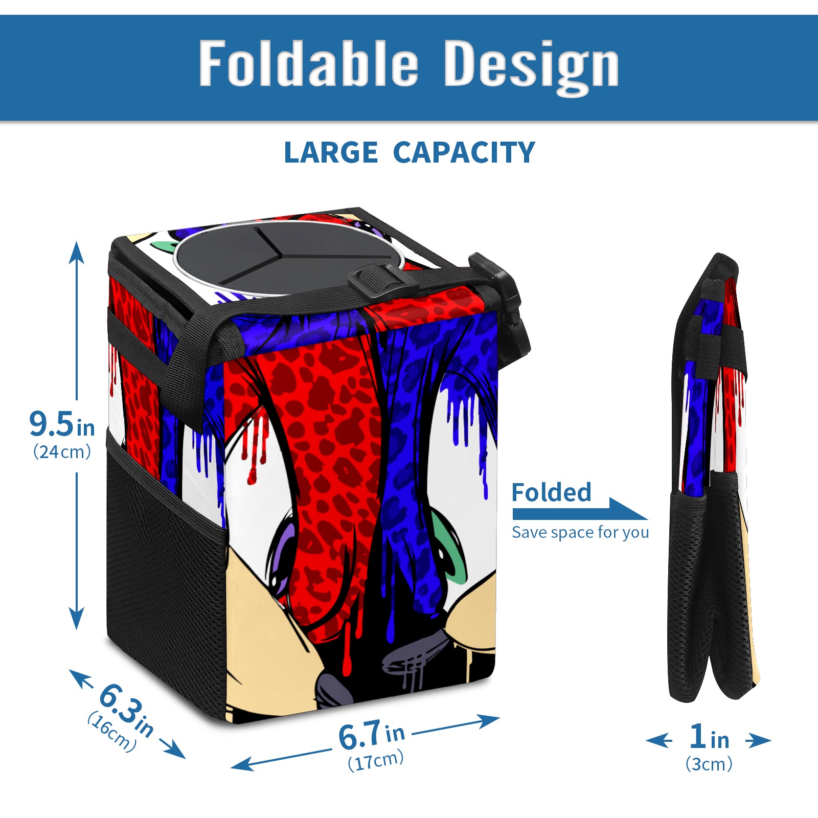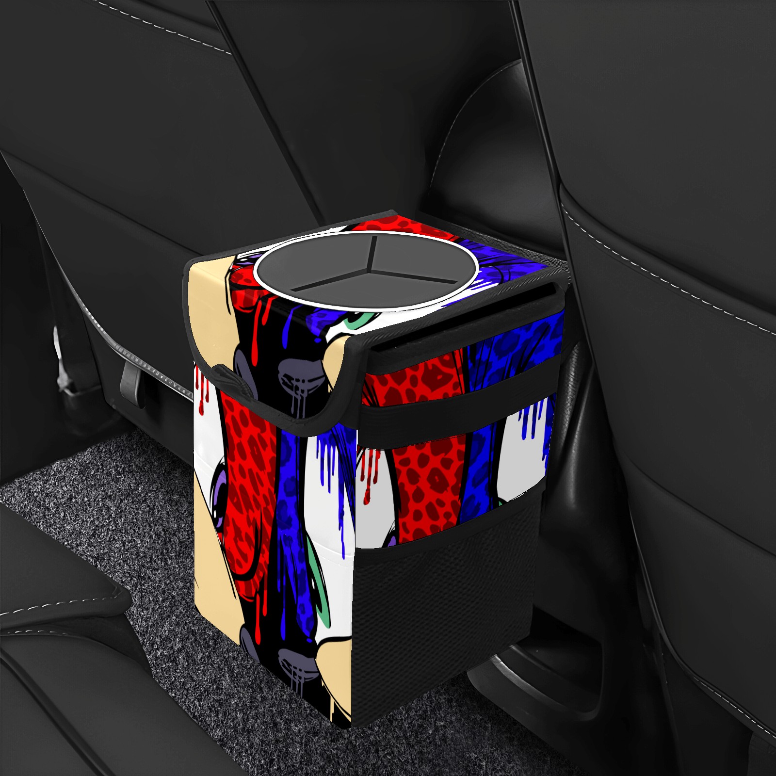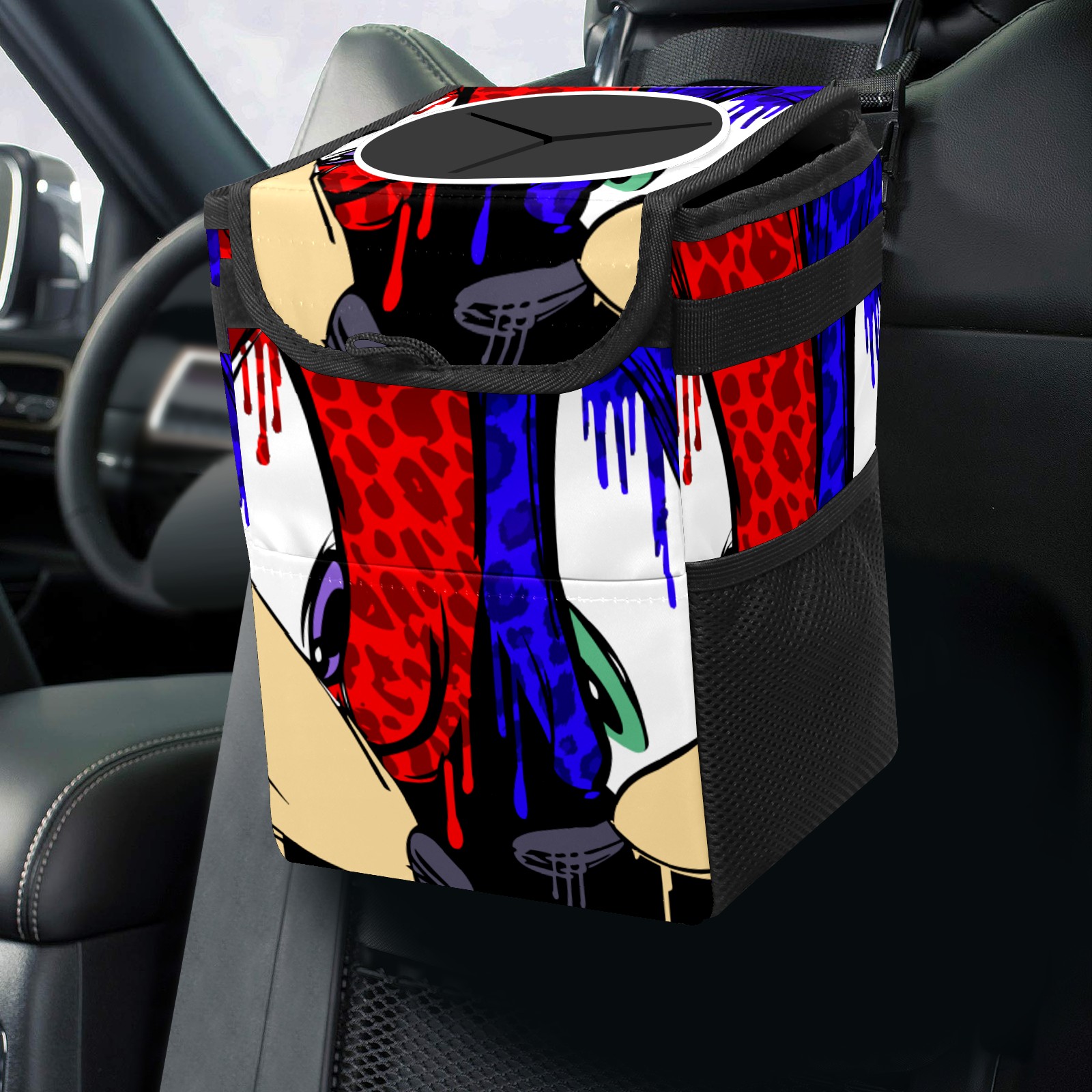 Car Garbage Can — Multi-functional, Lightweight Portable, Reusable Vehicle Trash Can, Waterproof with Sufficient Storage Capacity 花斑豹纹款索尼克