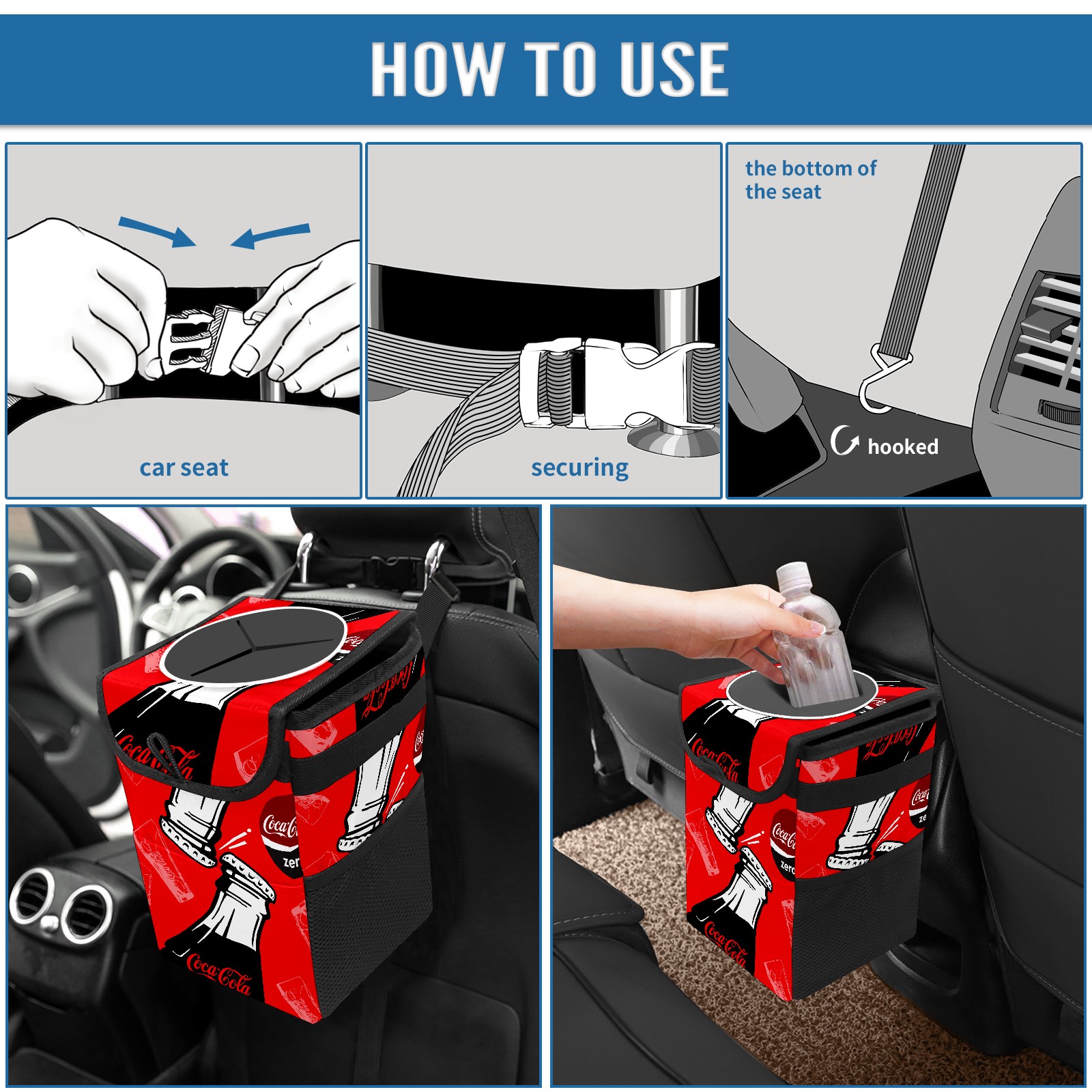Car Garbage Can — Multi-functional, Lightweight Portable, Reusable Vehicle Trash Can, Waterproof with Sufficient Storage Capacity 可口可乐