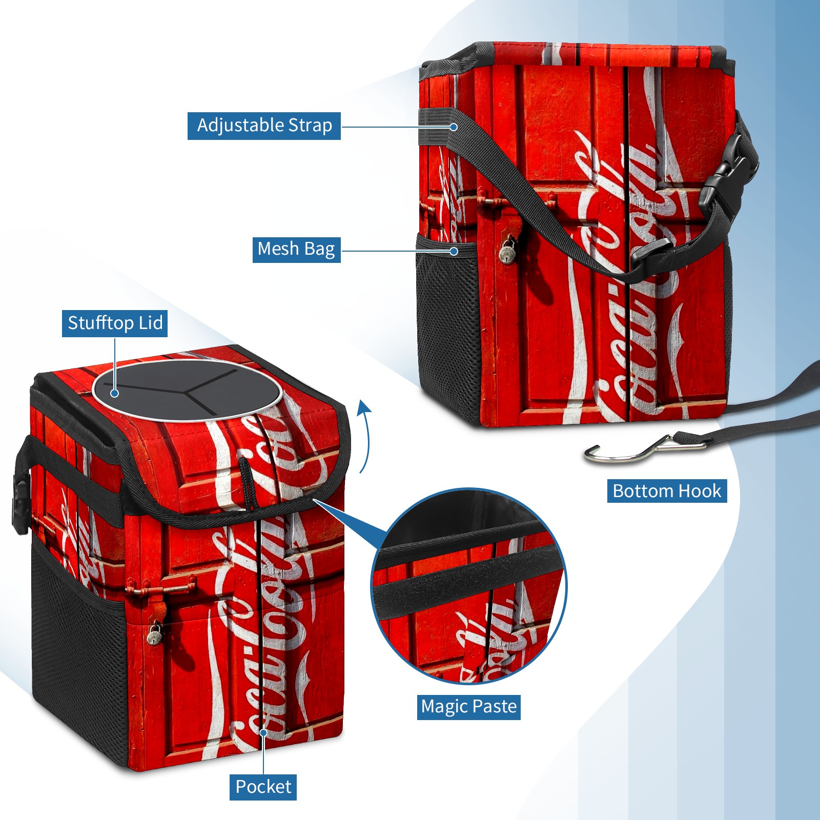 • <p>Keep your car neat with this practical car trash can—built for durability, versatility, and on-the-go convenience! Crafted from quality twill fabric with a waterproof lining, it prevents leaks, keeping seats/floors clean. Clean easily: empty directly or secure a disposable bag with side clips. Adjustable pull cord fits floor, seat, or headrest. 9.5x6.3x6.7 inches, ample space for daily trash, folds flat for storage. More than a trash can, it doubles as a storage bag for cups, toys, docs, and small gadgets—must-have car interior accessory. Installs in seconds on seats, console, or gear shift; adjustable straps keep it stable, no slipping on bumpy roads. Perfect gift for new car owners!</p>
