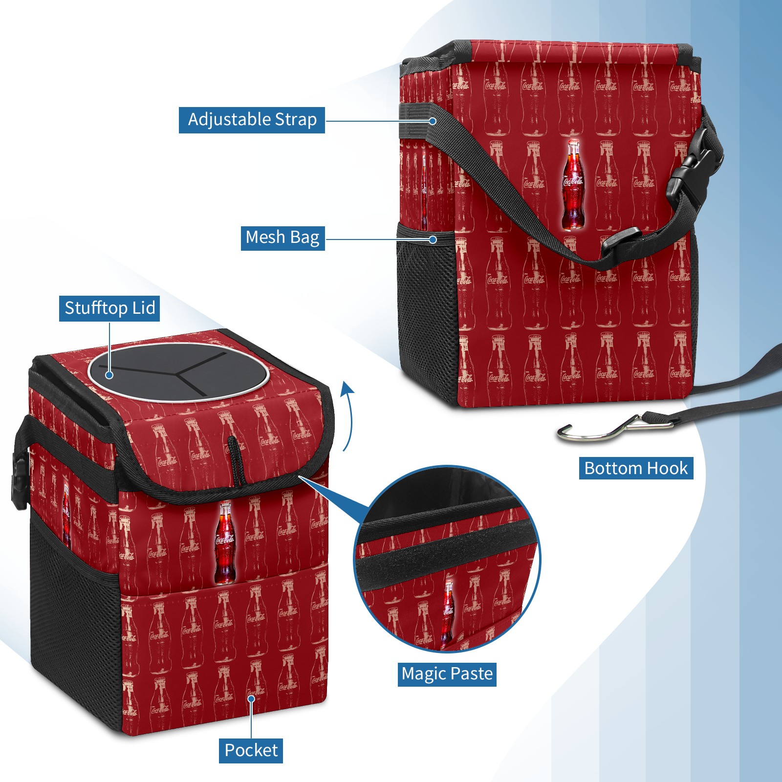 • <p>Keep your car neat with this practical car trash can—built for durability, versatility, and on-the-go convenience! Crafted from quality twill fabric with a waterproof lining, it prevents leaks, keeping seats/floors clean. Clean easily: empty directly or secure a disposable bag with side clips. Adjustable pull cord fits floor, seat, or headrest. 9.5x6.3x6.7 inches, ample space for daily trash, folds flat for storage. More than a trash can, it doubles as a storage bag for cups, toys, docs, and small gadgets—must-have car interior accessory. Installs in seconds on seats, console, or gear shift; adjustable straps keep it stable, no slipping on bumpy roads. Perfect gift for new car owners!</p>