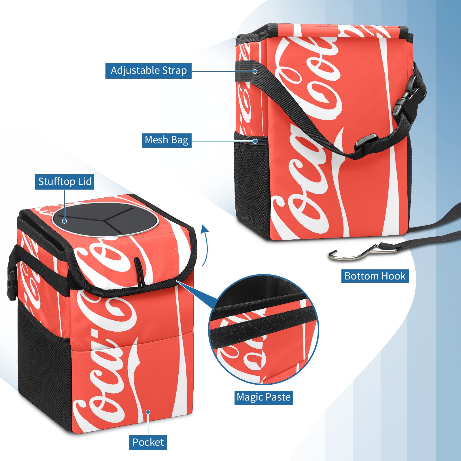 • <p>Keep your car neat with this practical car trash can—built for durability, versatility, and on-the-go convenience! Crafted from quality twill fabric with a waterproof lining, it prevents leaks, keeping seats/floors clean. Clean easily: empty directly or secure a disposable bag with side clips. Adjustable pull cord fits floor, seat, or headrest. 9.5x6.3x6.7 inches, ample space for daily trash, folds flat for storage. More than a trash can, it doubles as a storage bag for cups, toys, docs, and small gadgets—must-have car interior accessory. Installs in seconds on seats, console, or gear shift; adjustable straps keep it stable, no slipping on bumpy roads. Perfect gift for new car owners!</p>