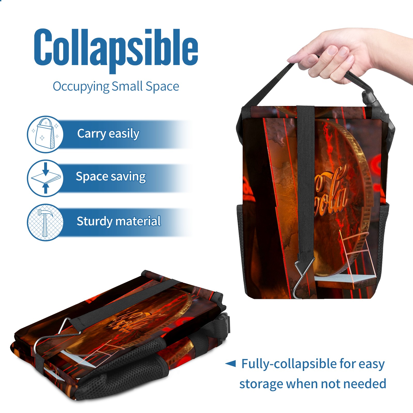 • <p>Keep your car neat with this practical car trash can—built for durability, versatility, and on-the-go convenience! Crafted from quality twill fabric with a waterproof lining, it prevents leaks, keeping seats/floors clean. Clean easily: empty directly or secure a disposable bag with side clips. Adjustable pull cord fits floor, seat, or headrest. 9.5x6.3x6.7 inches, ample space for daily trash, folds flat for storage. More than a trash can, it doubles as a storage bag for cups, toys, docs, and small gadgets—must-have car interior accessory. Installs in seconds on seats, console, or gear shift; adjustable straps keep it stable, no slipping on bumpy roads. Perfect gift for new car owners!</p>