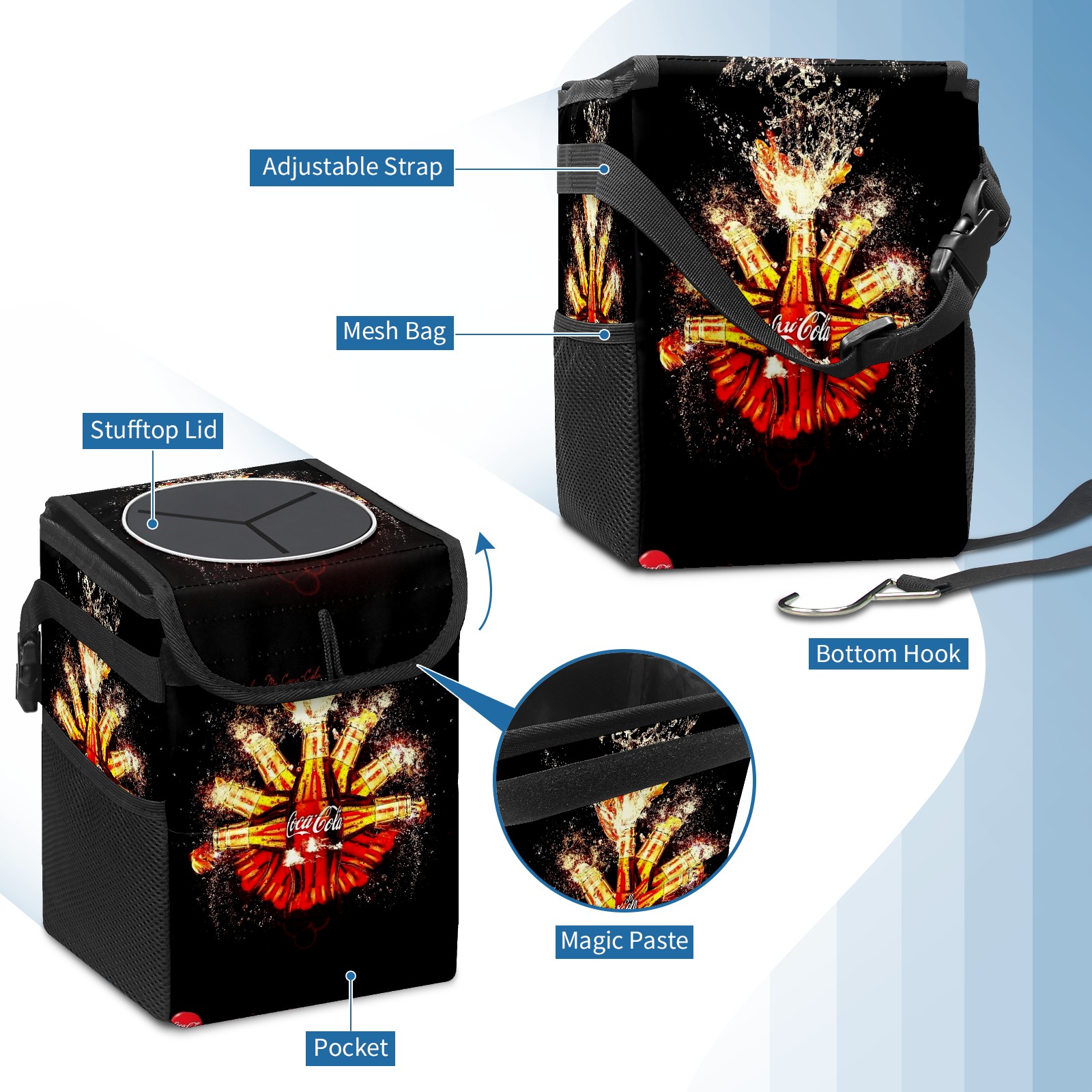 • <p>Keep your car neat with this practical car trash can—built for durability, versatility, and on-the-go convenience! Crafted from quality twill fabric with a waterproof lining, it prevents leaks, keeping seats/floors clean. Clean easily: empty directly or secure a disposable bag with side clips. Adjustable pull cord fits floor, seat, or headrest. 9.5x6.3x6.7 inches, ample space for daily trash, folds flat for storage. More than a trash can, it doubles as a storage bag for cups, toys, docs, and small gadgets—must-have car interior accessory. Installs in seconds on seats, console, or gear shift; adjustable straps keep it stable, no slipping on bumpy roads. Perfect gift for new car owners!</p>