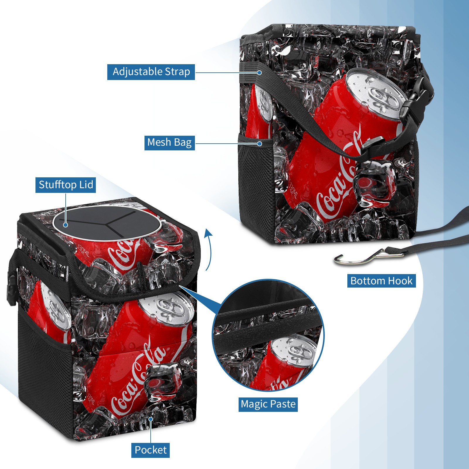 • <p>Keep your car neat with this practical car trash can—built for durability, versatility, and on-the-go convenience! Crafted from quality twill fabric with a waterproof lining, it prevents leaks, keeping seats/floors clean. Clean easily: empty directly or secure a disposable bag with side clips. Adjustable pull cord fits floor, seat, or headrest. 9.5x6.3x6.7 inches, ample space for daily trash, folds flat for storage. More than a trash can, it doubles as a storage bag for cups, toys, docs, and small gadgets—must-have car interior accessory. Installs in seconds on seats, console, or gear shift; adjustable straps keep it stable, no slipping on bumpy roads. Perfect gift for new car owners!</p>