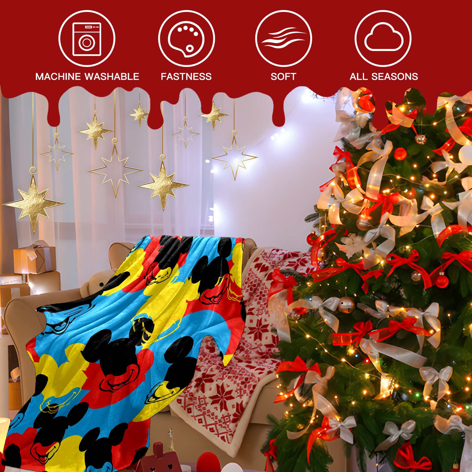 Премиальная фланелевая одеяло Mouse Head Multi