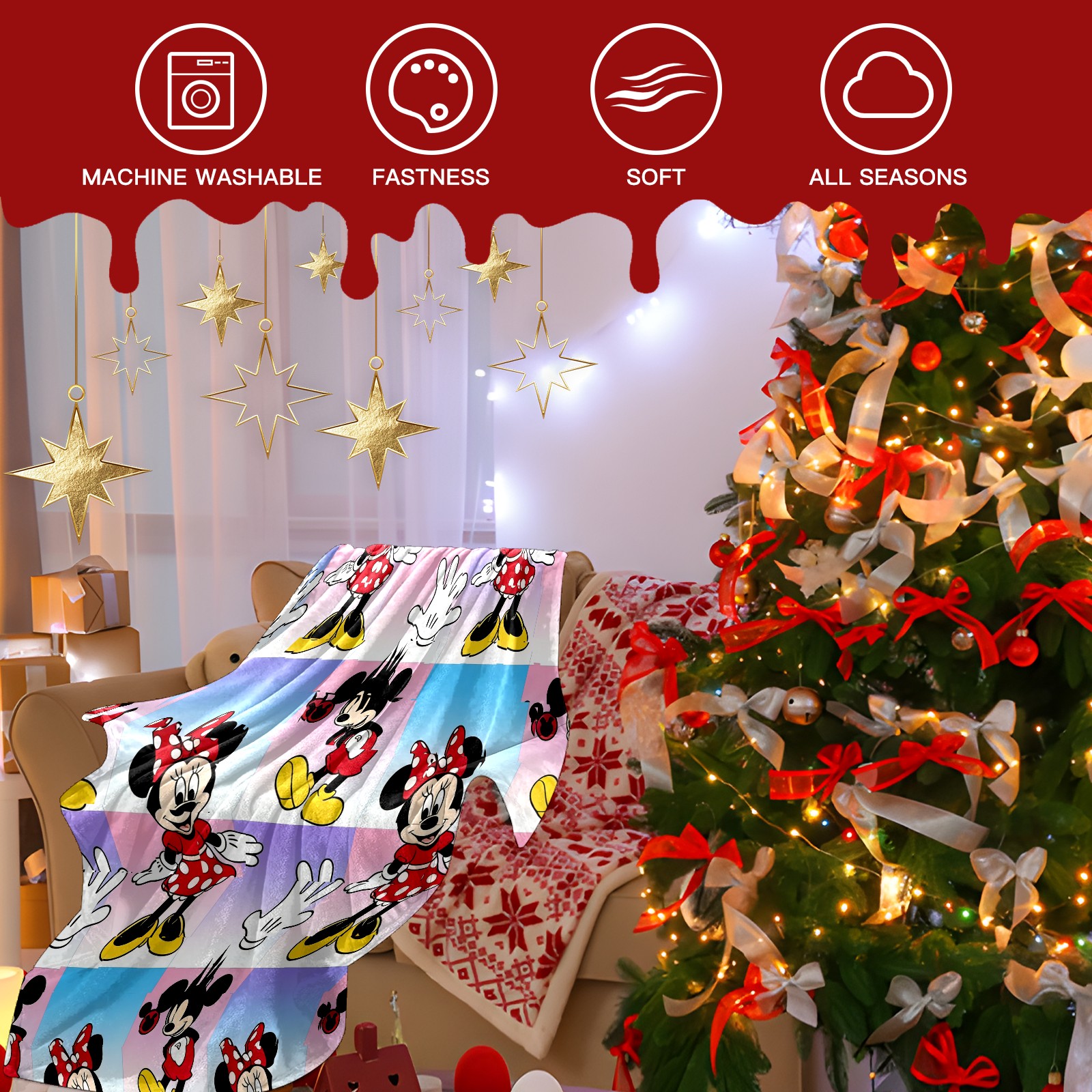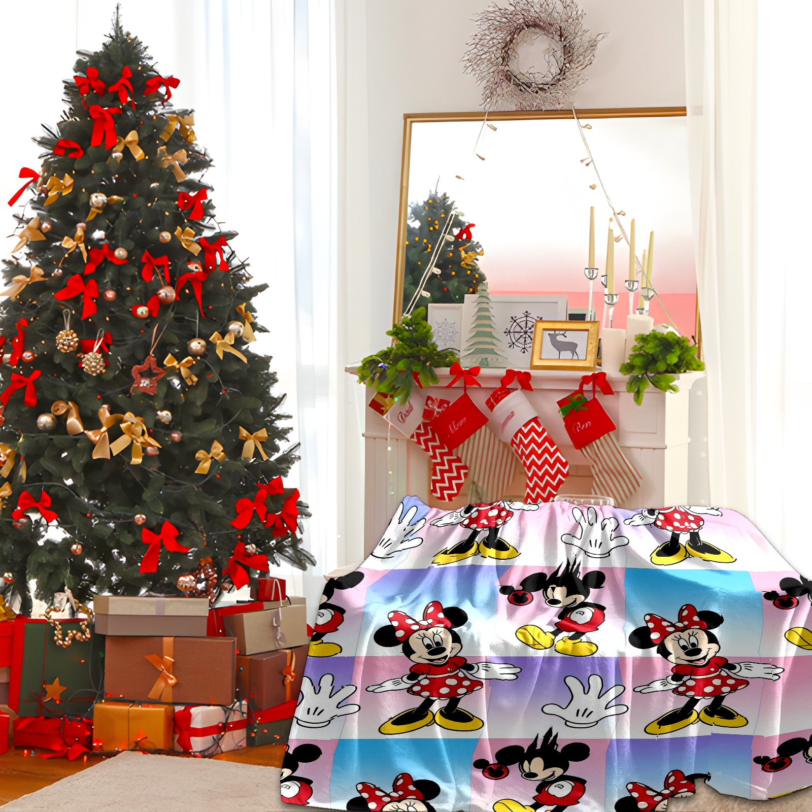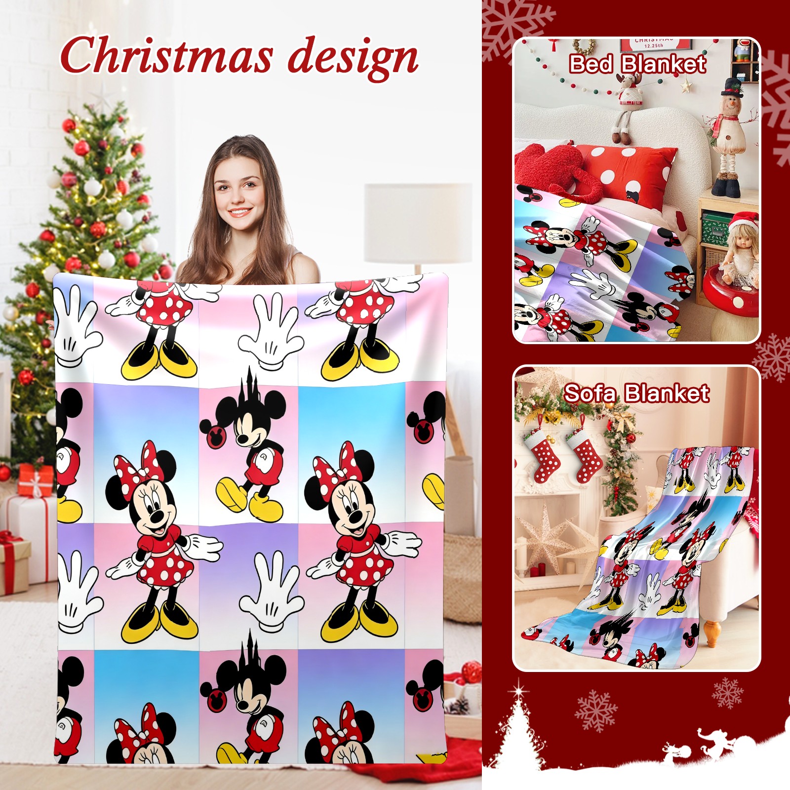 Премиальная фланелевая одеяло Mouse Red-Black