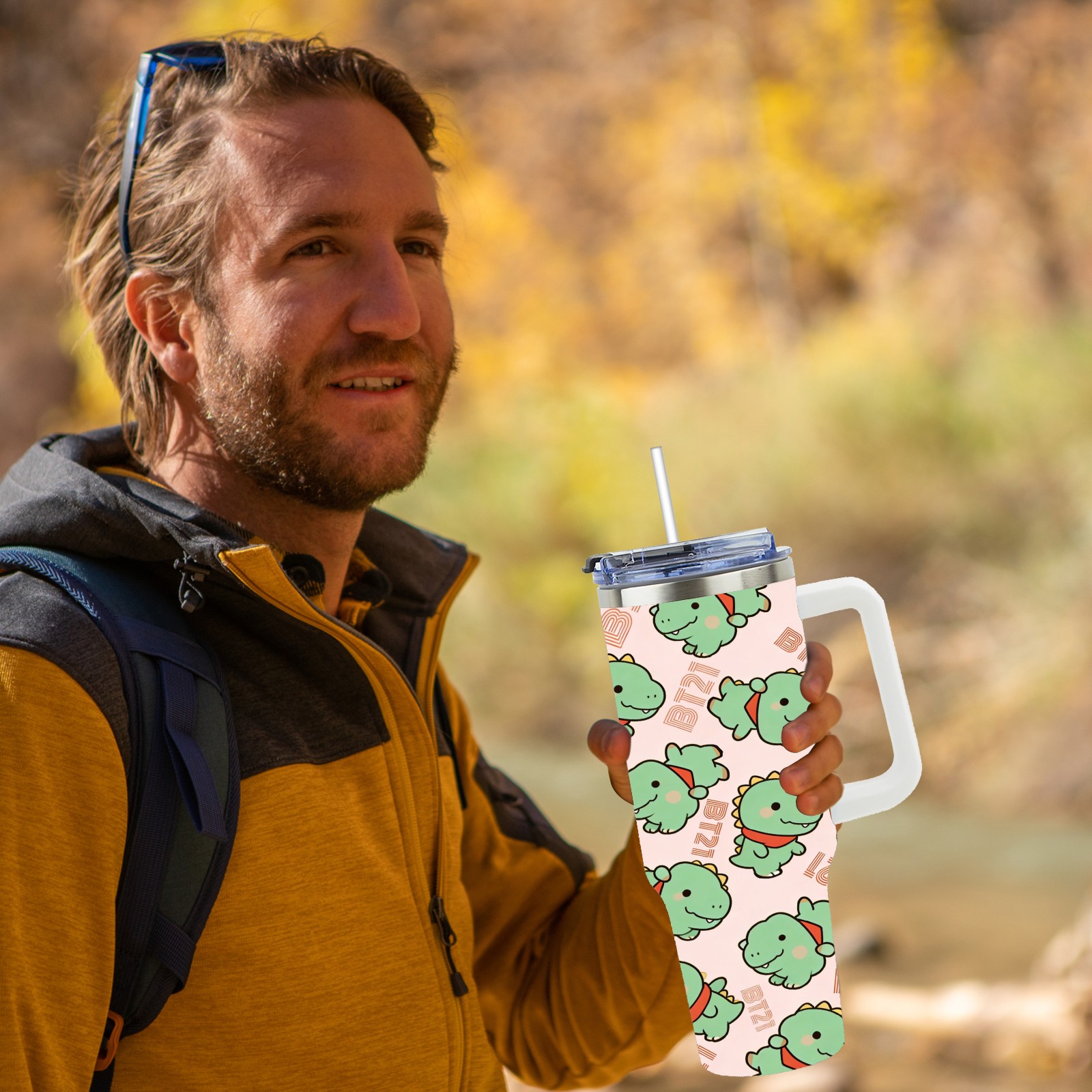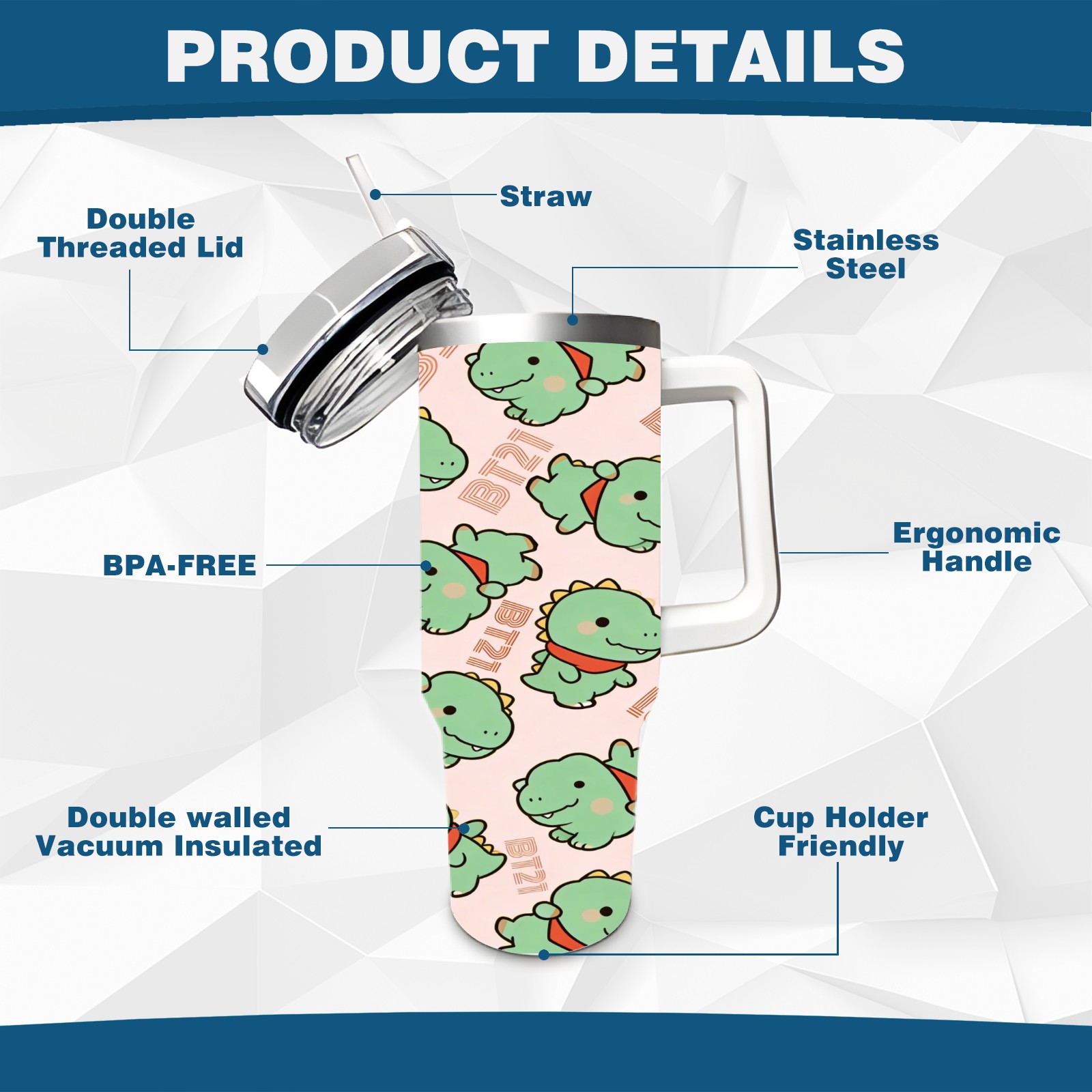 40 унций полностью напечатанный автомобильный стакан Green Dinos