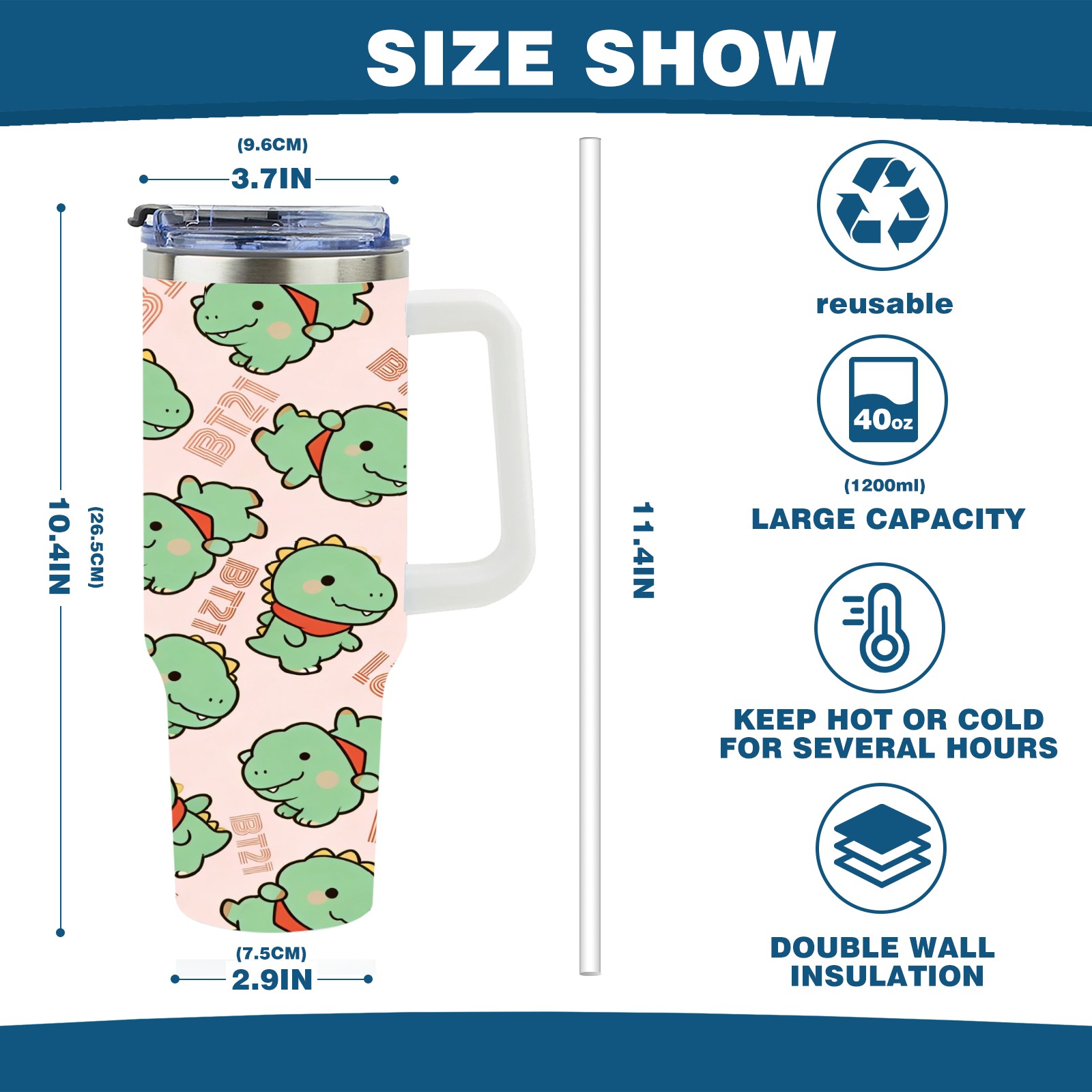 • С большой емкостью 40 унций, он обеспечивает вас гидратацией в течение всего дня, идеально подходит для воды, кофе, сока или других напитков. Эргономичный дизайн идеально вписывается в автомобильные держатели для бутылок, а прочный, герметичный колпачок предотвращает утечки во время передвижения. Путешествие. Антискользящее основание обеспечивает устойчивость, а гладкие поверхности делают уборку легкой — просто мойте вручную или кладите в посудомоечную машину (рекомендуется верхний поддон).