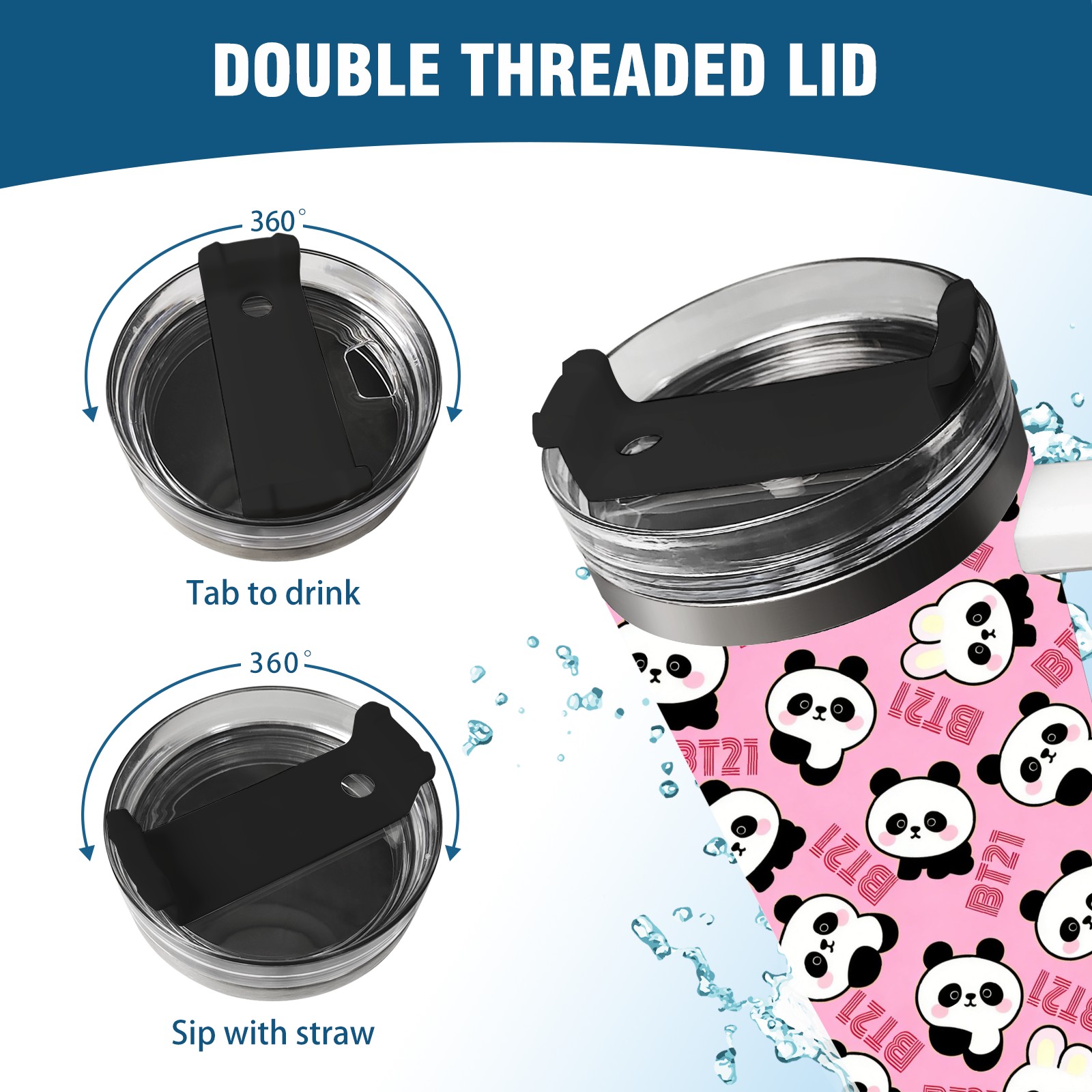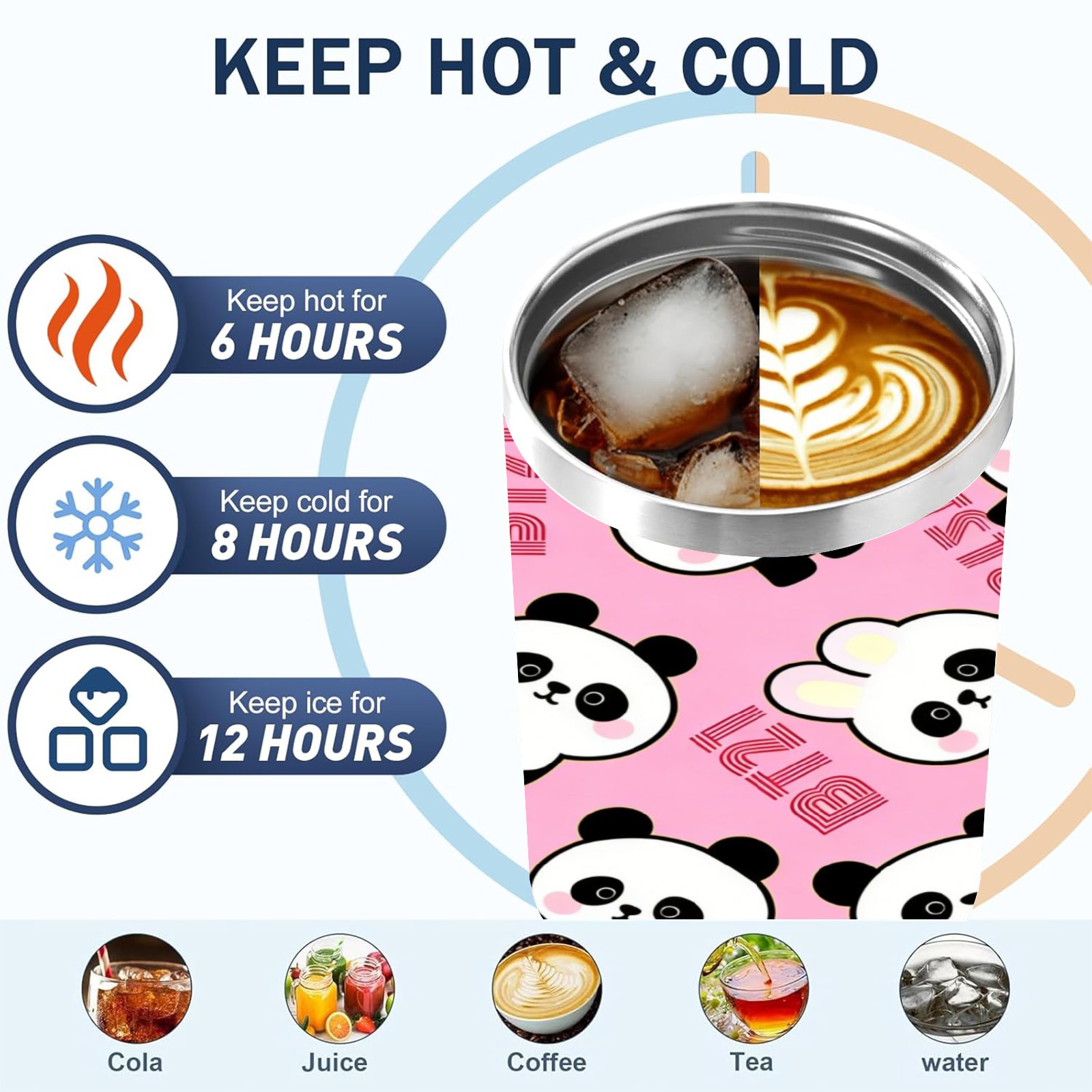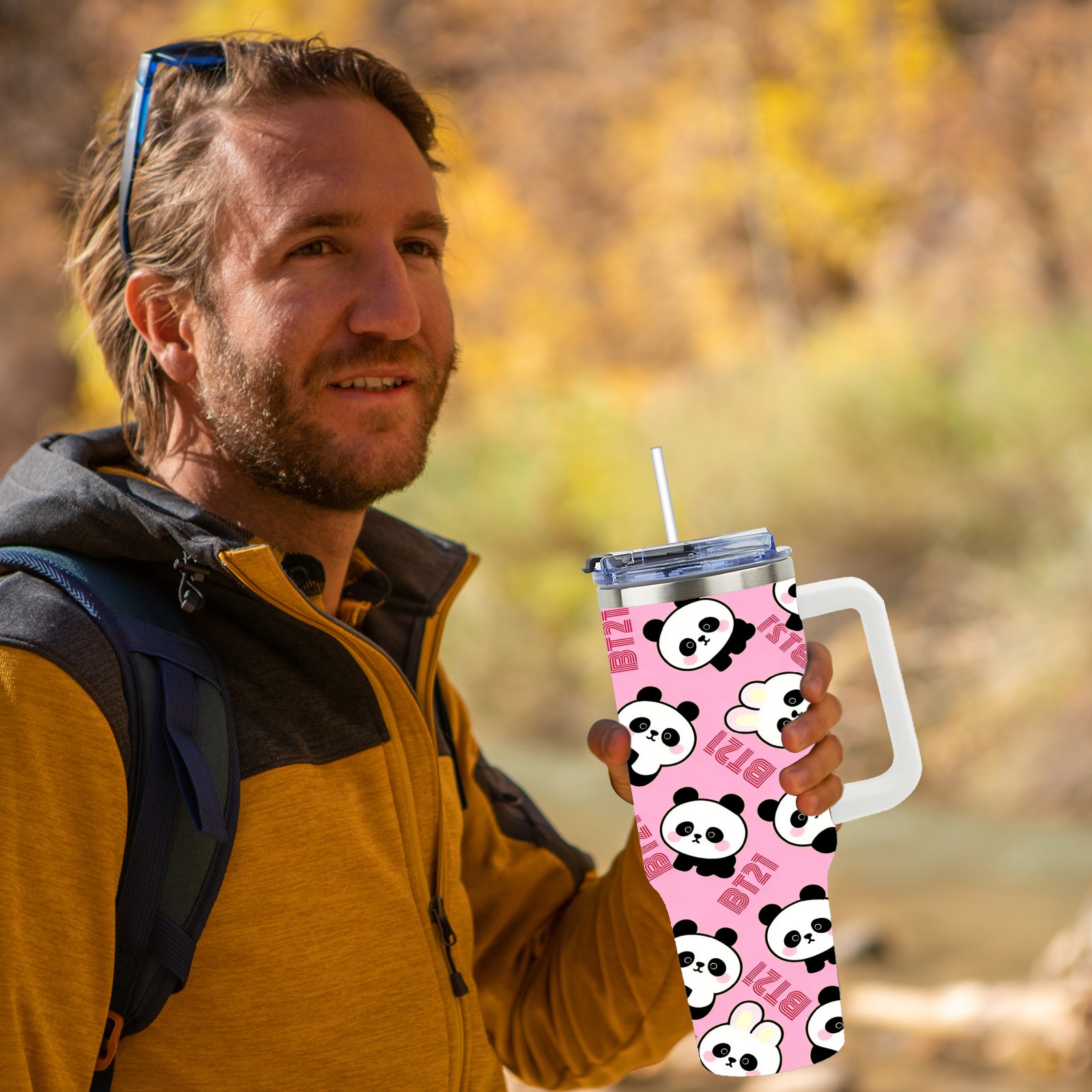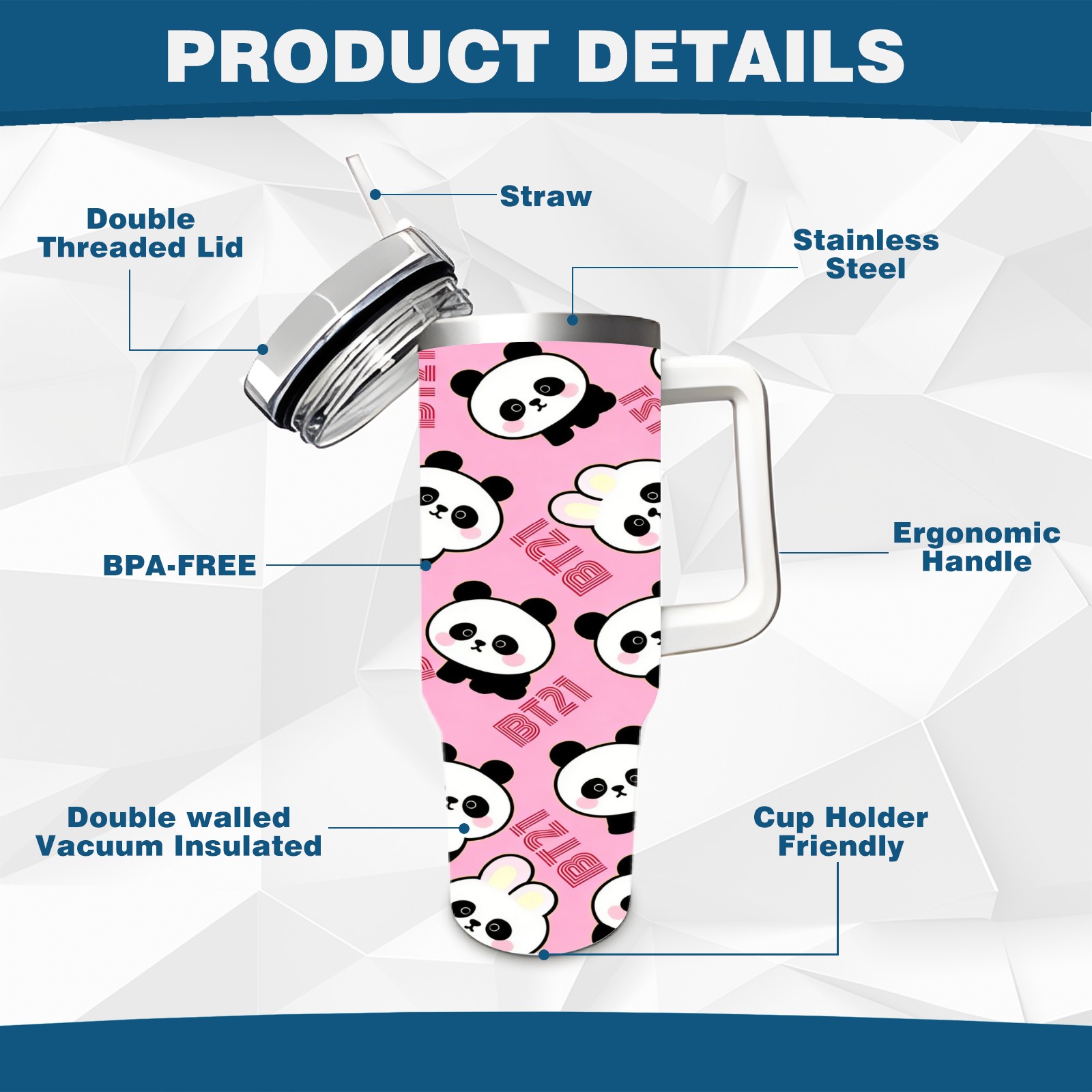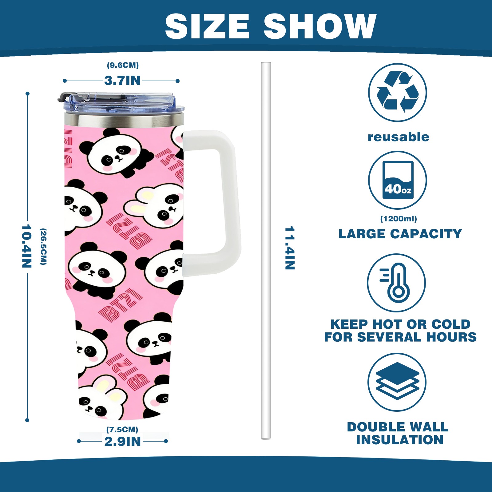 40 унций полностью напечатанный автомобильный стакан Cute Pandas