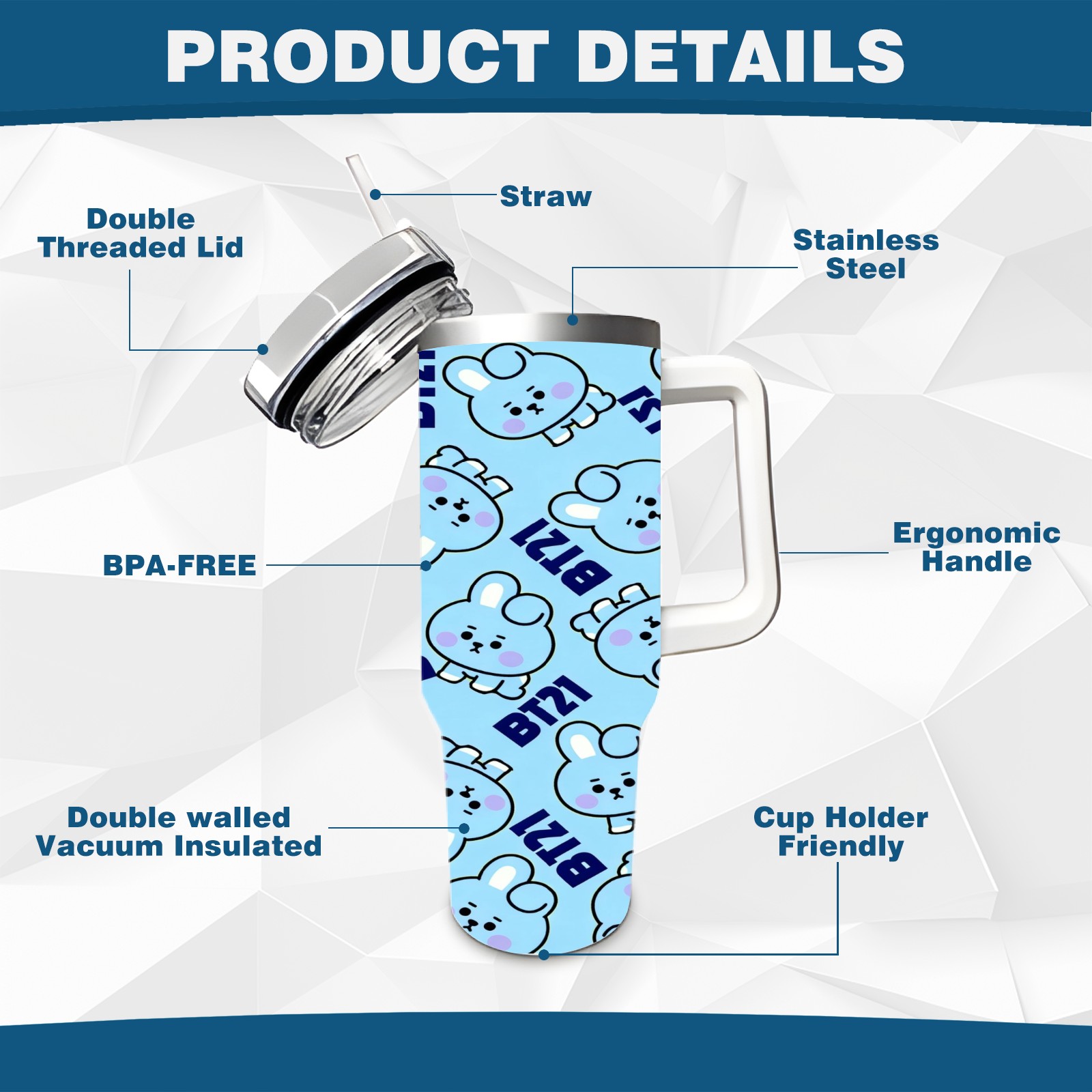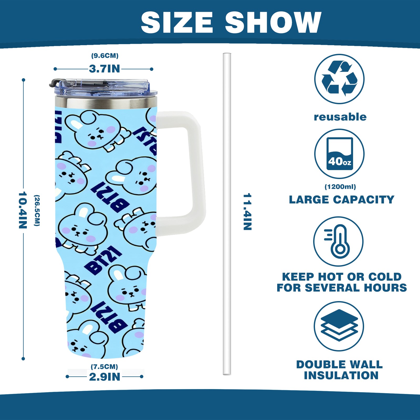 • С большой емкостью 40 унций, он обеспечивает вас гидратацией в течение всего дня, идеально подходит для воды, кофе, сока или других напитков. Эргономичный дизайн идеально вписывается в автомобильные держатели для бутылок, а прочный, герметичный колпачок предотвращает утечки во время передвижения. Путешествие. Антискользящее основание обеспечивает устойчивость, а гладкие поверхности делают уборку легкой — просто мойте вручную или кладите в посудомоечную машину (рекомендуется верхний поддон).