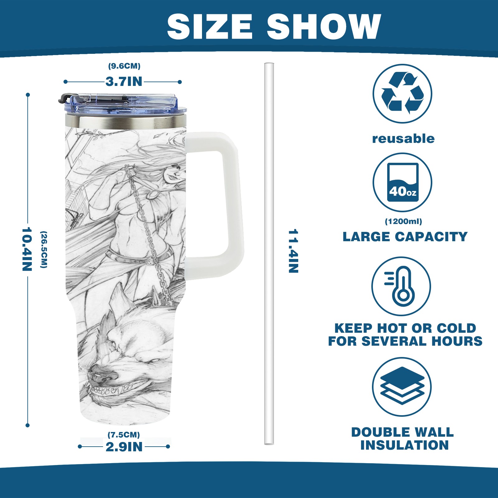 • С большой емкостью 40 унций, он обеспечивает вас гидратацией в течение всего дня, идеально подходит для воды, кофе, сока или других напитков. Эргономичный дизайн идеально вписывается в автомобильные держатели для бутылок, а прочный, герметичный колпачок предотвращает утечки во время передвижения. Путешествие. Антискользящее основание обеспечивает устойчивость, а гладкие поверхности делают уборку легкой — просто мойте вручную или кладите в посудомоечную машину (рекомендуется верхний поддон).