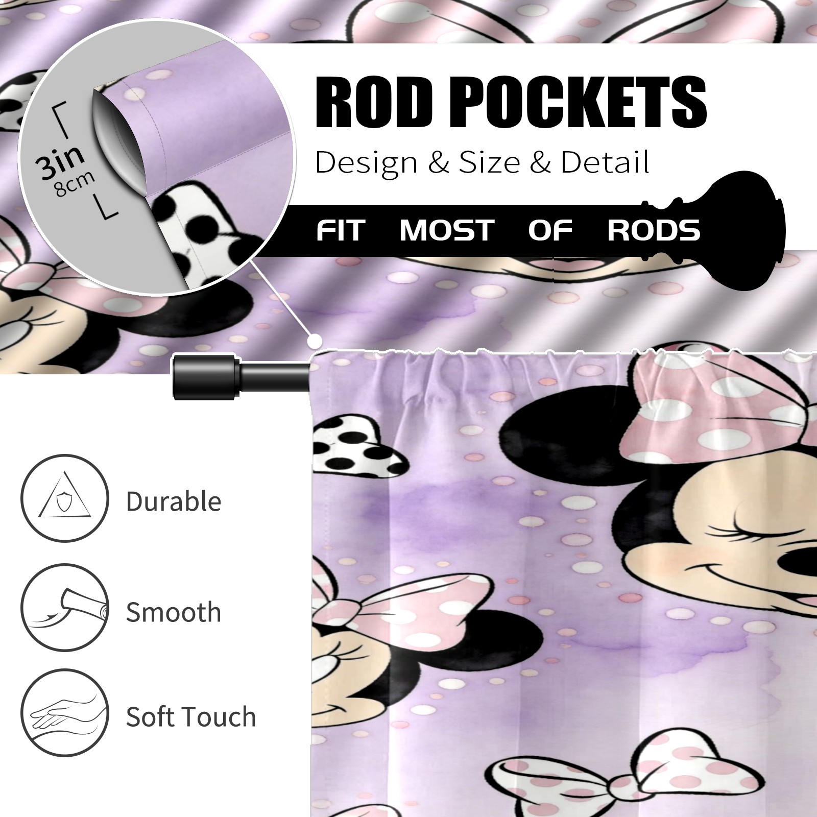 Шторы-панно для дома, декоративные драпировки для гостиной и спальни, легкие и прочные, Mickey Purple