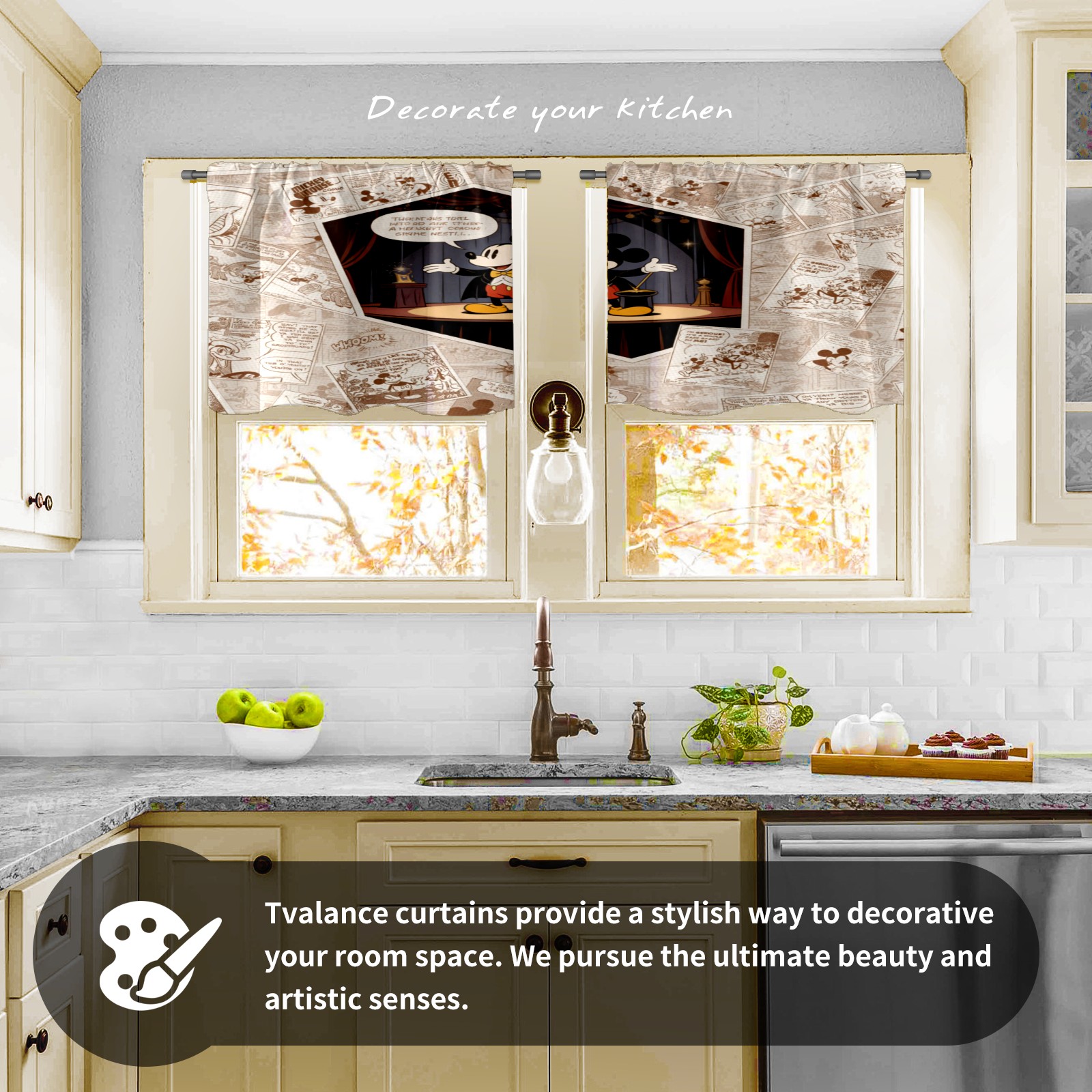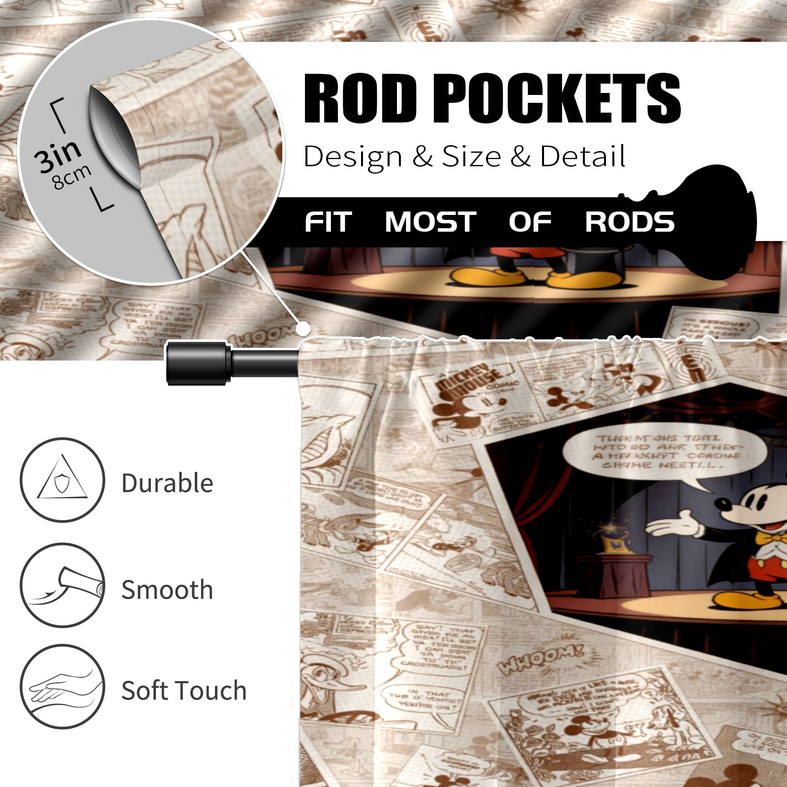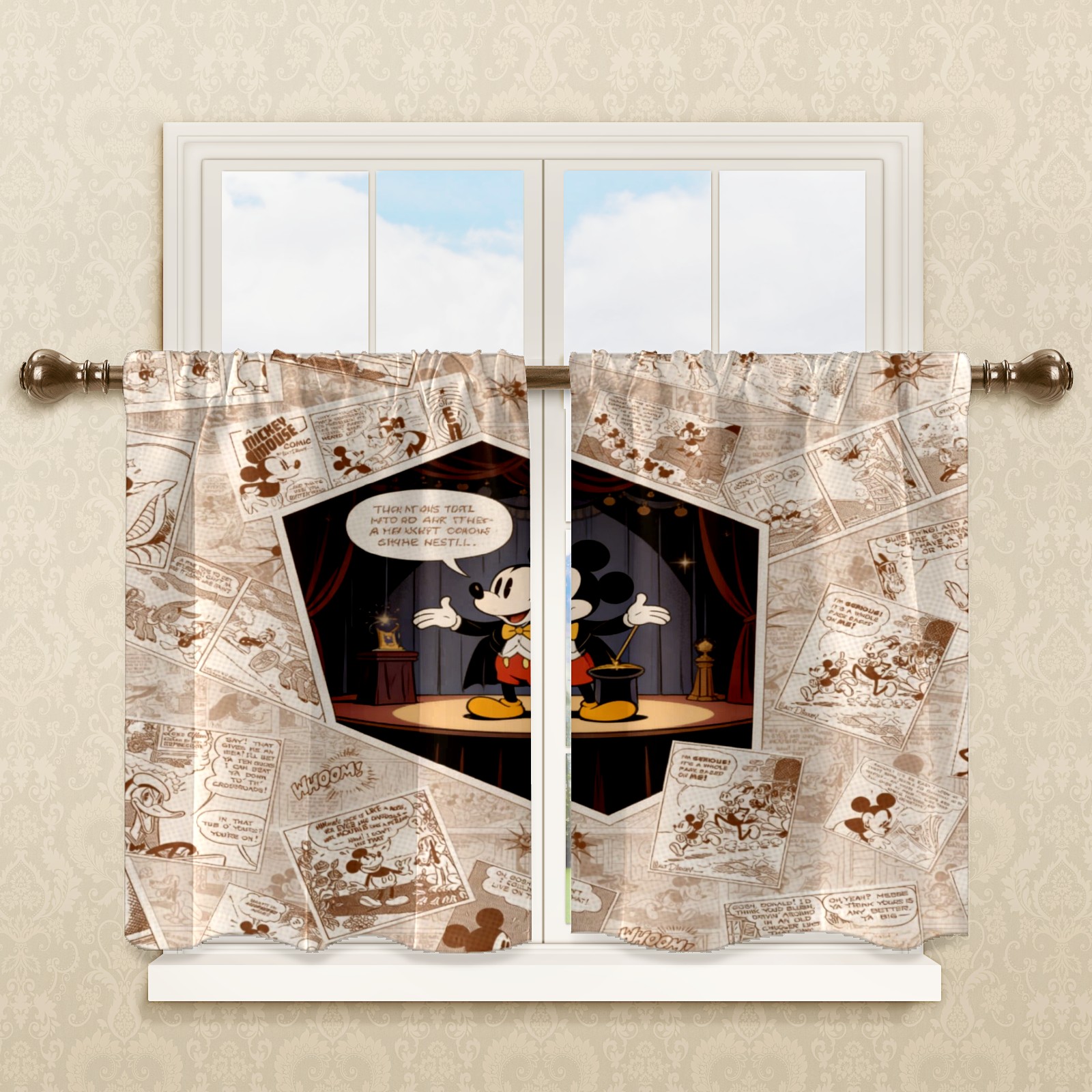 Шторы-панно для дома, декоративные драпировки для гостиной и спальни, легкие и прочные, Mickey Vintage Paper