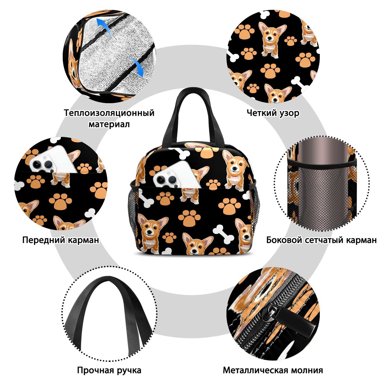 Lunch Bag,Lunch Box for Women Men,狗3 Reusable Insulated Lunch Tote,Small Leakproof Cute Lunch Cooler with High Capacity for Work,Picnic,Camping