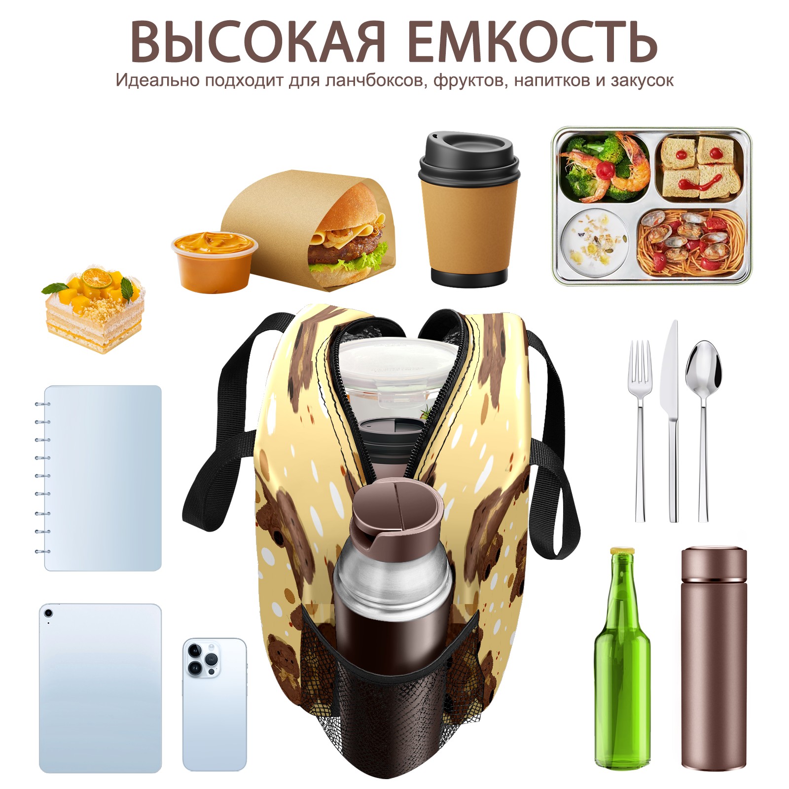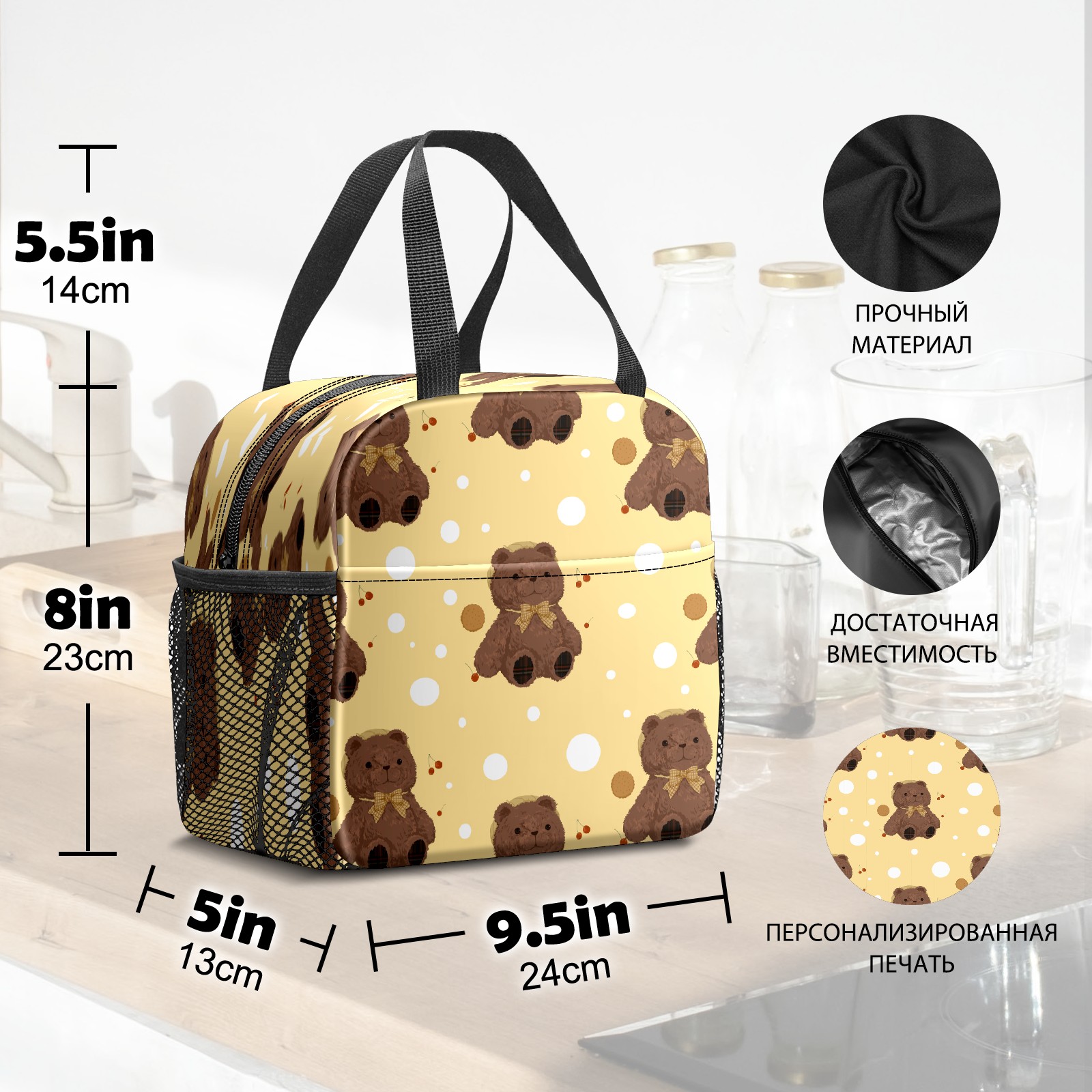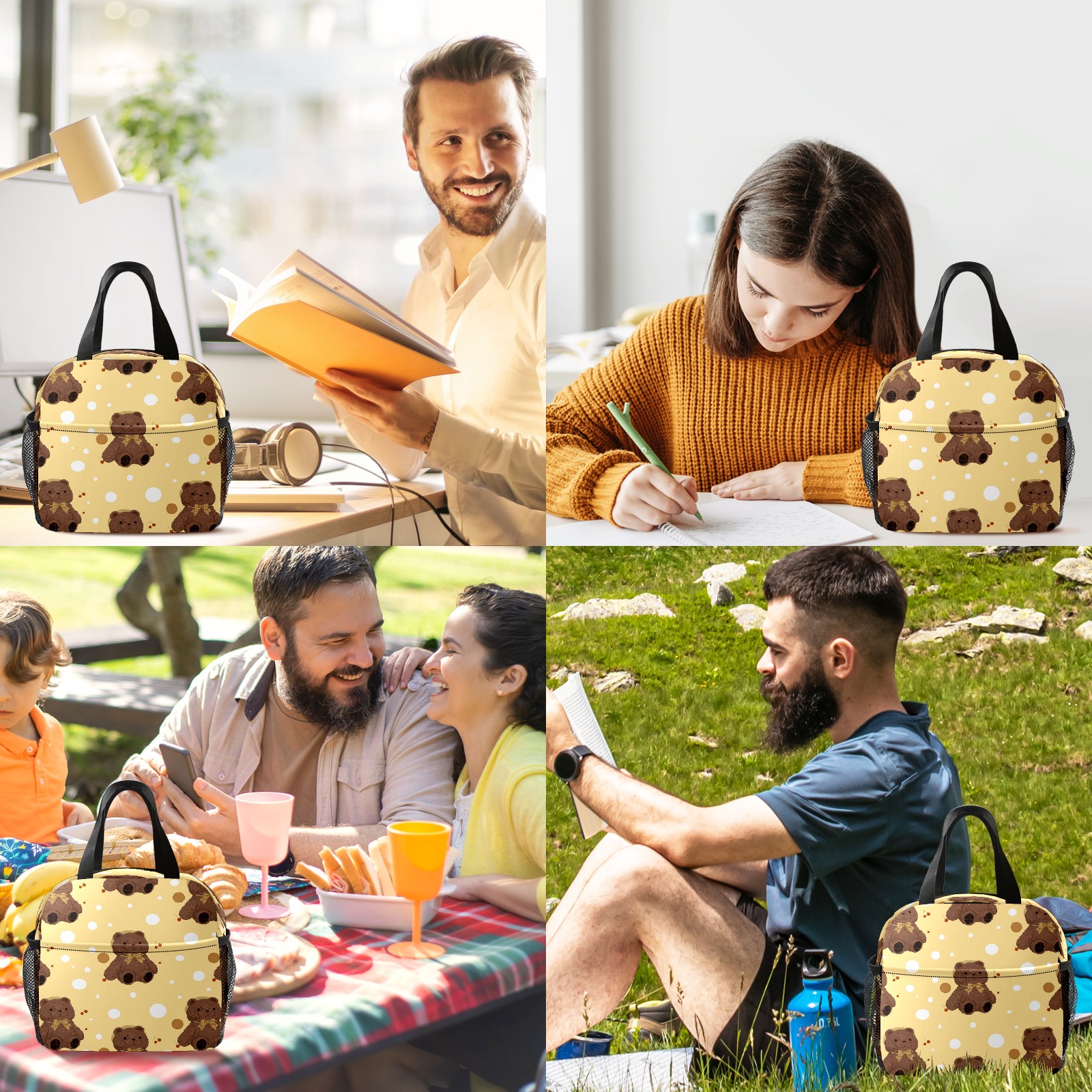 Lunch Bag,Lunch Box for Women Men,小熊 Reusable Insulated Lunch Tote,Small Leakproof Cute Lunch Cooler with High Capacity for Work,Picnic,Camping