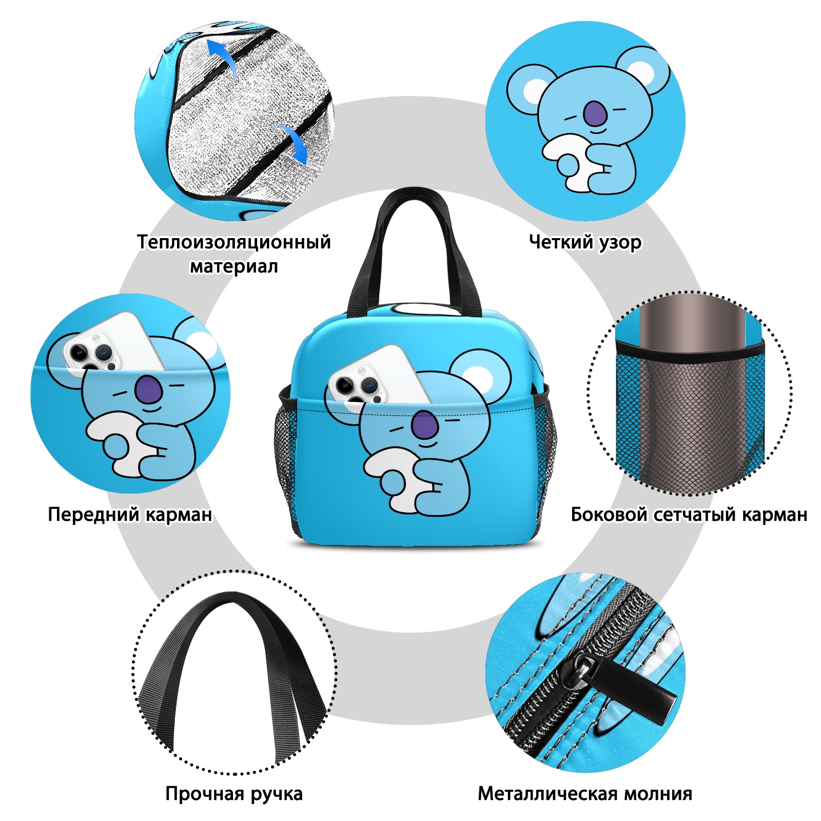 Lunch Bag,Lunch Box for Women Men,Bt21 KOYA Bts Reusable Insulated Lunch Tote,Small Leakproof Cute Lunch Cooler with High Capacity for Work,Picnic,Camping
